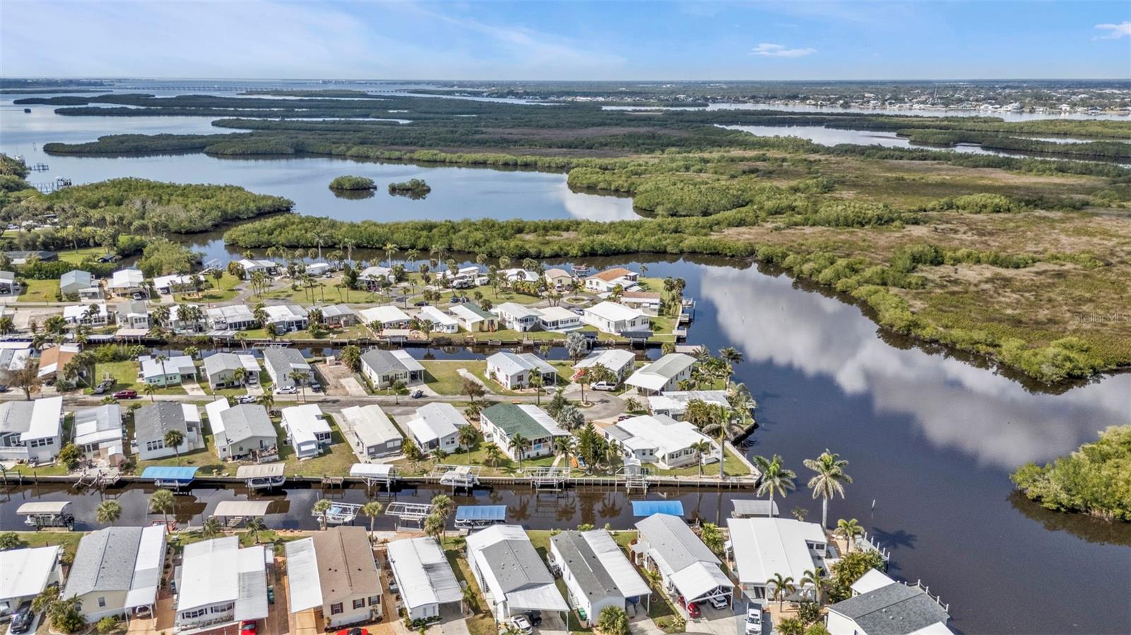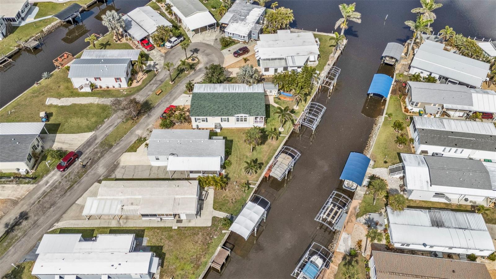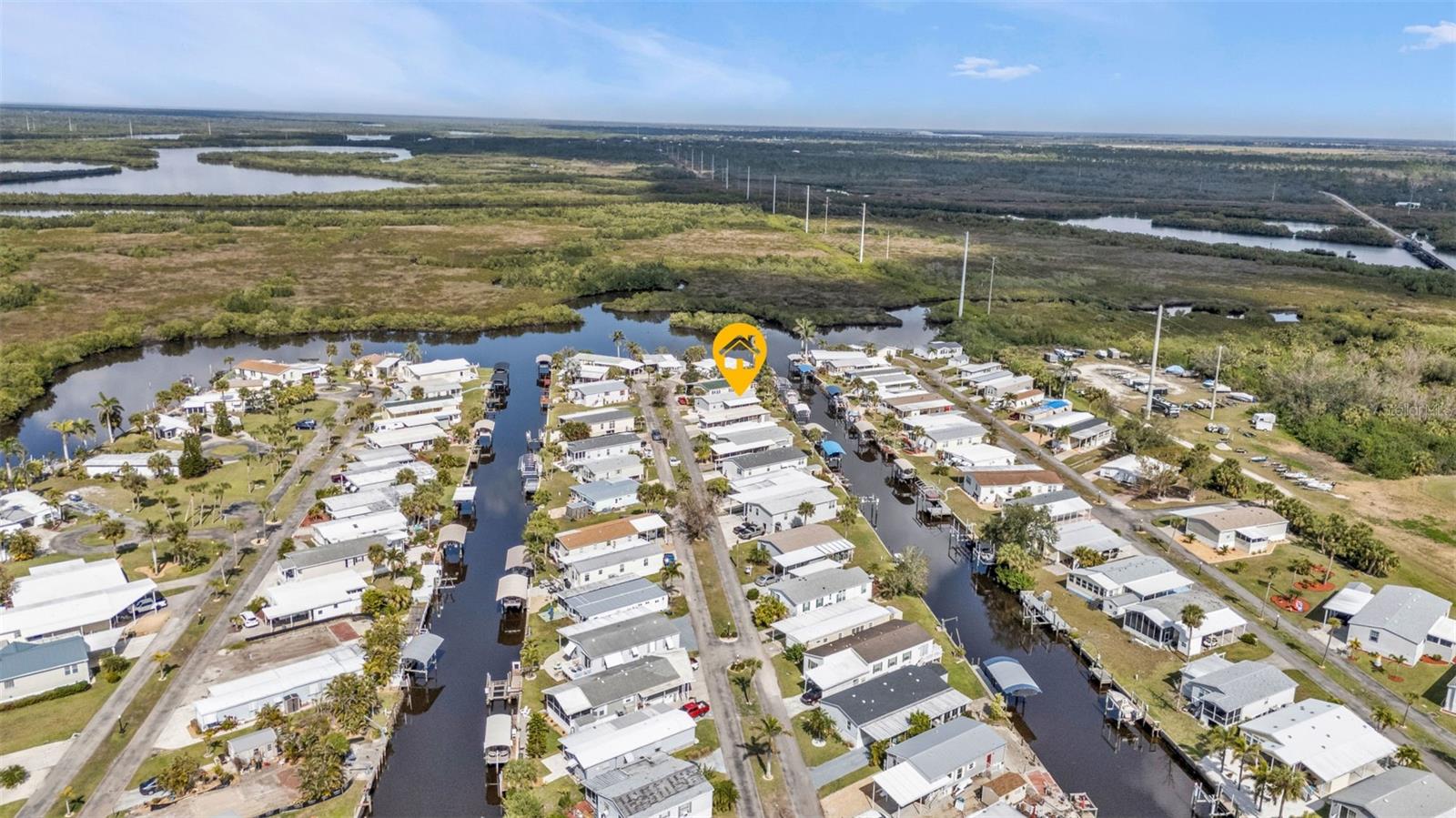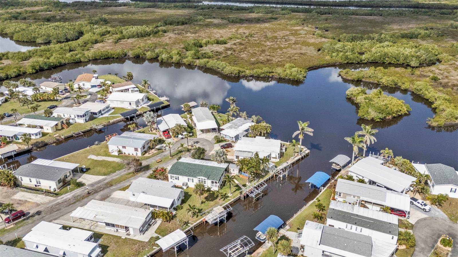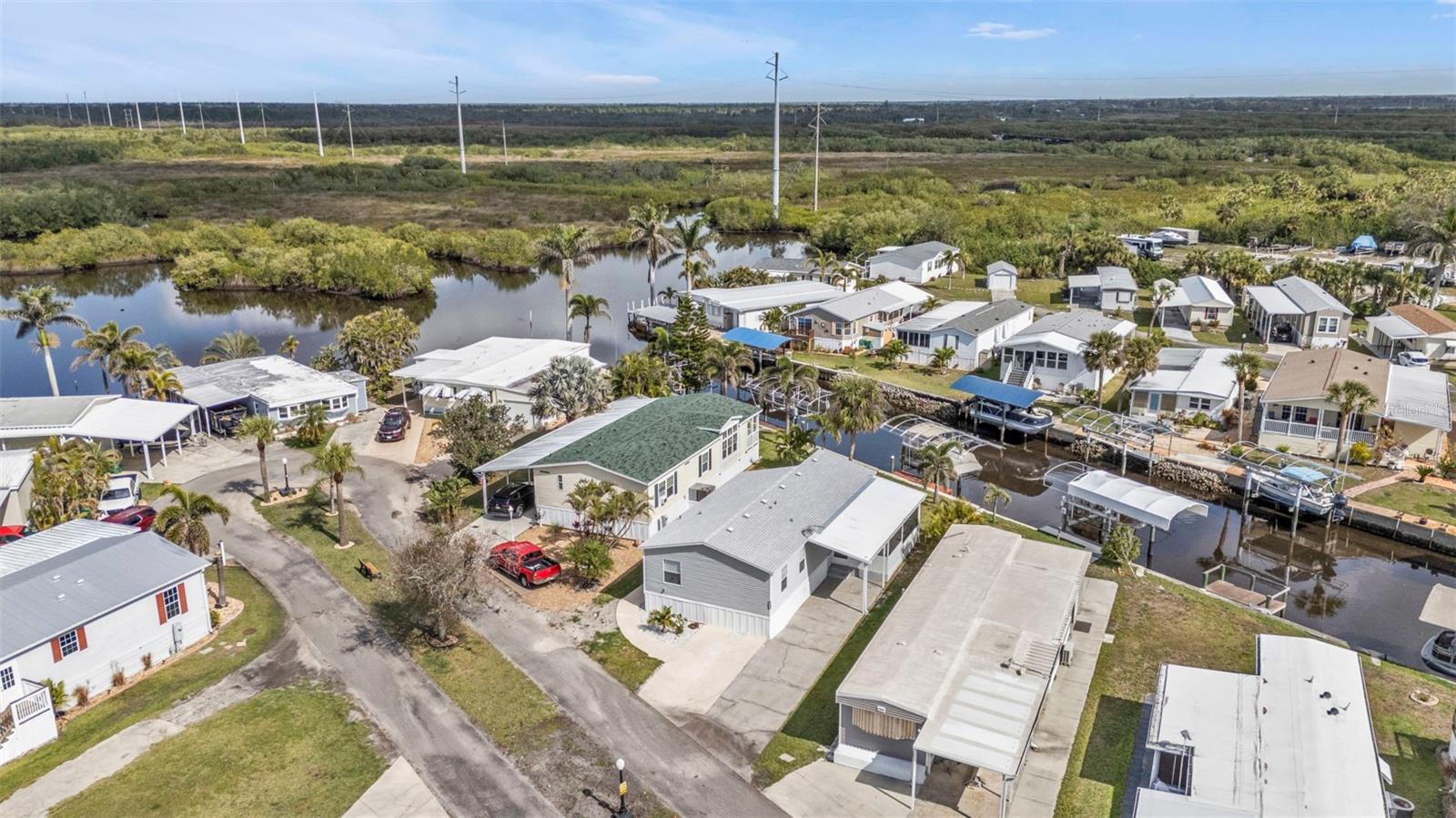 One or more photo(s) has been virtually staged. Welcome to your waterfront retreat in Pelican Harbor Mobile Home Estates, a 55+ community offering a boating lifestyle with fantastic amenities. This 2005 Fleetwood manufactured home sits on 50 feet of direct waterfrontage along the widest canal in the community (60 feet across!), providing immediate access to Charlotte Harbor and out to the Gulf of Mexico--a true boater's paradise.Enjoy your own private dock with electric, a brand-new covered boat lift (2024) with updated breakers, and a concrete seawall replaced in 2017 for lasting waterfront security. Inside, the home offers 2 bedrooms and 2 bathrooms with luxury vinyl plank flooring throughout for a modern, low-maintenance feel. The bright kitchen features white cabinetry, granite countertops, a range, dishwasher, and center island perfect for casual dining. Overlooking the open-concept living space, this layout is ideal for entertaining. A large bonus room with expansive windows showcases stunning backyard and waterfront views--perfect as a sunroom, dining area, or home office. Step outside to your spacious screened-in and covered patio/Florida room to relax in the peaceful waterfront setting. Major upgrades include a new roof and HVAC system (2023), new exterior skirting with hurricane tie-downs, updated foam insulation and vapor barrier, and a new 10x10 storage shed (2024). The home also offers a large driveway and covered carport for plenty of parking.Pelican Harbor Mobile Home Estates features top-notch 55+ amenities: a boat trailer/RV storage yard, heated pool, community clubhouse, and tool shop for borrowing tools. The low $175/month HOA fee includes water and sewer. Close to local marinas, shops, dining, and outdoor recreation--this is an exceptional opportunity to enjoy the Florida waterfront lifestyle with direct boating access to the Gulf! Enjoy one year of HOA dues paid by the seller.