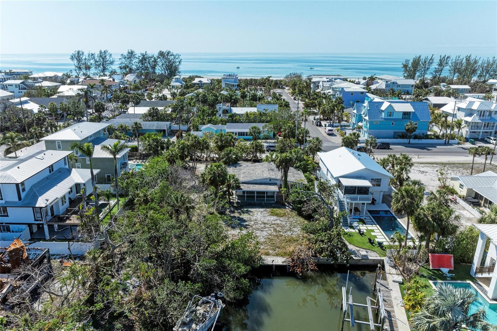 Estate sized waterfront property at Anna Maria's much desired north end. Located just a block from the quiet Gulf Beach at the end of Mangrove, this property embodies privacy and beautiful long views of the canal. Location, Vision and Size combine to create an opportunity to build your own sanctuary and embrace the Island Life Style. Home has been flood damaged by Hurricane Helene.