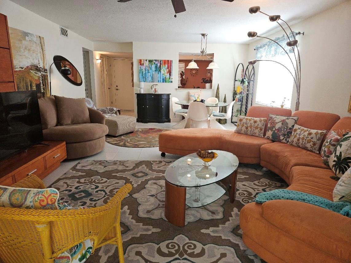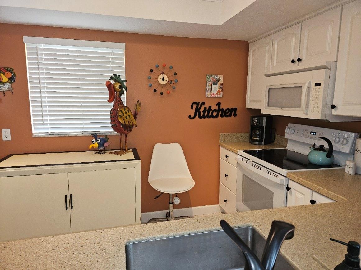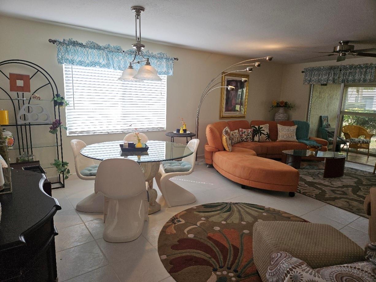 Don't miss this colorful and cozy first floor condo in 55+ Village Plaza; turnkey furnished and available for a quick close. The location can't be beat - just around the corner from groceries, banking, medical facilities, shopping, restaurants and public transit, 3 miles from I75 and 15 minutes to downtown Sarasota. The floor plan is designed for easy living - a generous sized living / dining area opens to a comfortable screened lanai that is also glassed in so you can make the most of every Florida season. The primary bedroom is quite large, has a walk in closet and a pocket door that opens to the bathroom, with double vanity and walk in shower. The guest room is set up both for sleeping and as a home office. The property is available turnkey furnished as a convenience to those who appreciate the eclectic style of the furnishings! The condo is just a few short steps to one of two nearby laundry rooms and just a few more steps to the clubhouse where there is always something happening: fitness classes, billiards, card games, weekly happy hour, community BBQ area, shuffleboard, pickleball, movie nights, parties, Bingo ... and more!!