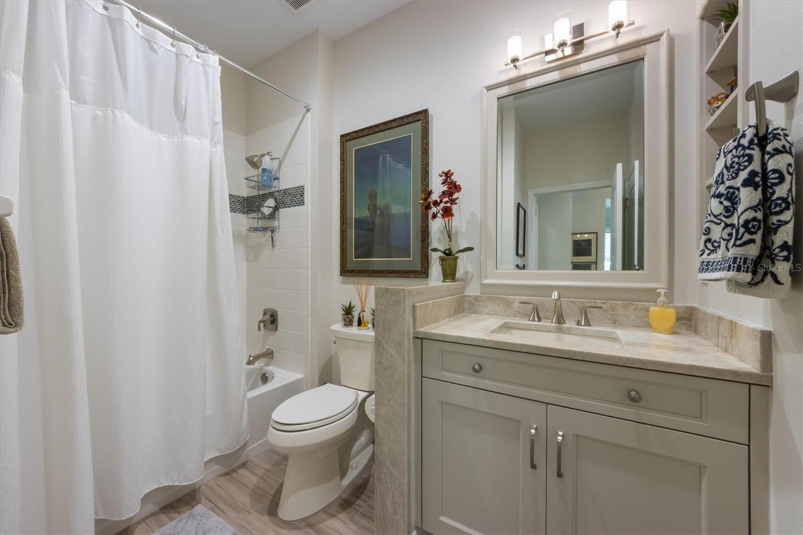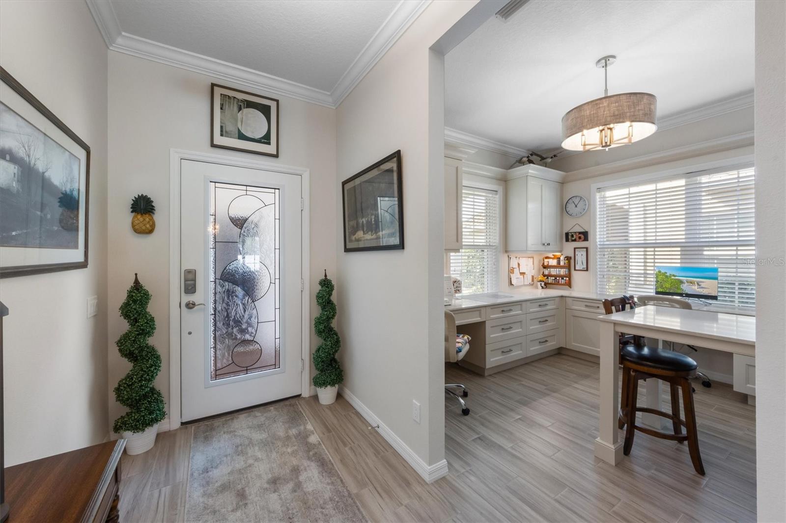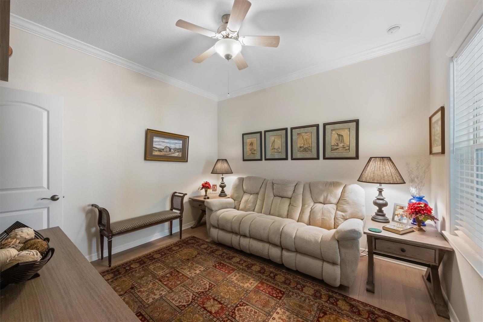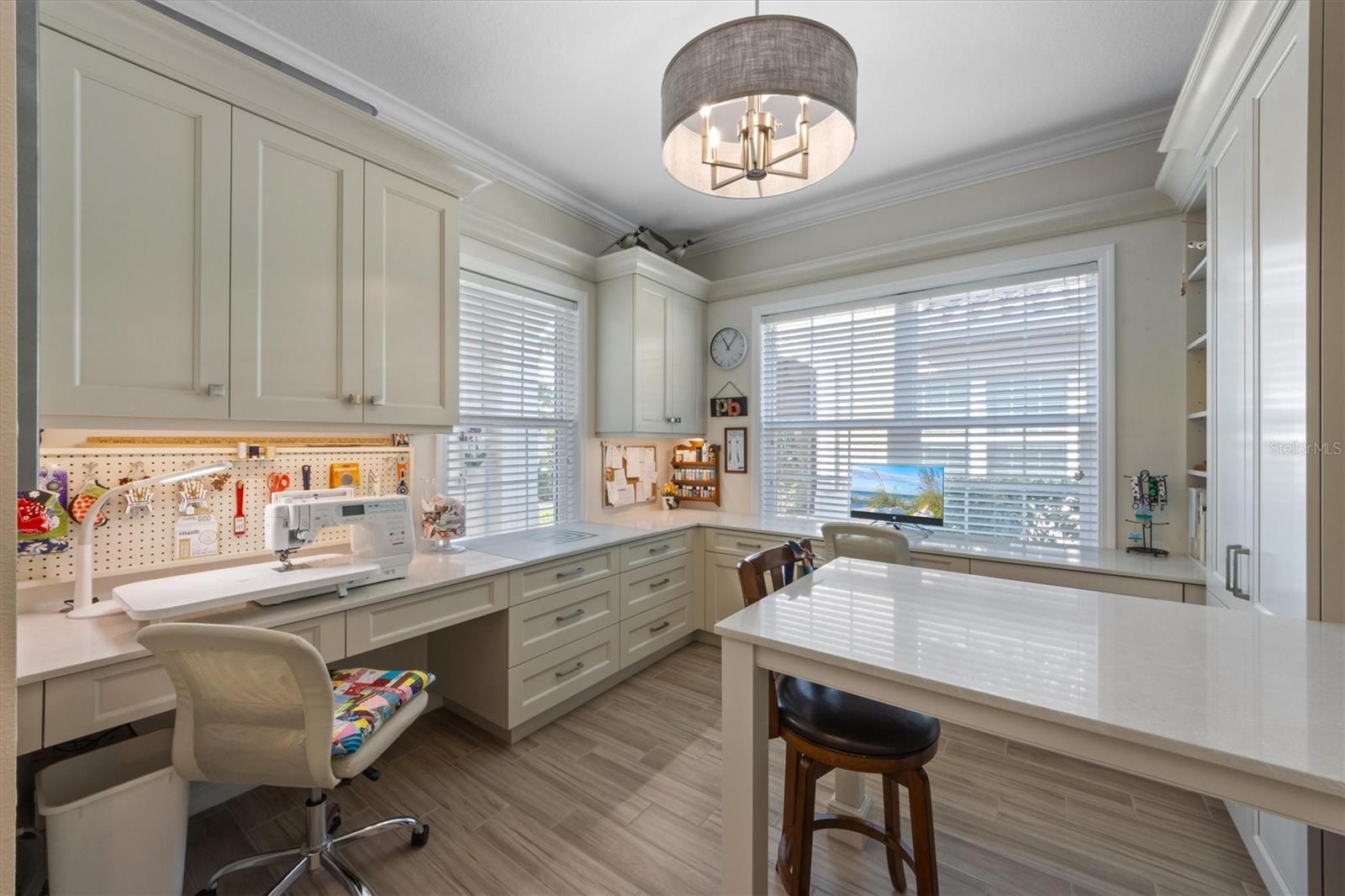 Above and beyond: That's what you'll find in this Mirabella home: Construction that meets the most stringent requirements in this fantastic 55 plus community, this LEED Platinum community is located in NW Bradenton. This home has meticulously been upgraded with new custom kitchen cabinets, Caesarstone quartz counter tops and LED lighting package. Impact hurricane windows and pocket slider. The den/office also has custom cabinets and quartz counter tops, set up as both craft room and office. Mirabelle is more than just a home; it's a lifestyle. Nestled in a serene, beautifully maintained neighborhood with access to exclusive amenities such as a community pool, clubhouse, gym and pickleball courts. A very short drive takes you to kayaking at Robinson Preserve or swimming and sunning on Island beaches. Mirabelle is absolutely unscathed by stormy weather but within reach of so much. The 2200 sq ft 2-bedroom, 2-bath home, plus a den, offers an effortlessly flowing floor plan. It moves seamlessly from the entry foyer, through a spacious living/dining room with high tray ceilings to an extended screened patio. This home has a coastal flair for you. The bedrooms feature new luxury vinyl flooring, and the study has been upgraded with porcelain tile. All the major rooms have new ceiling fans. Enjoy proximity to fine dining and shopping in this highly sought-after NW Bradenton community. A community dog park provides a place to meet neighbors and walk your four-foot fur babies, also at your fingertips, are the clubhouse, pool, and pickleball.Please note all bushes are being replaced in the back yard along the fence.