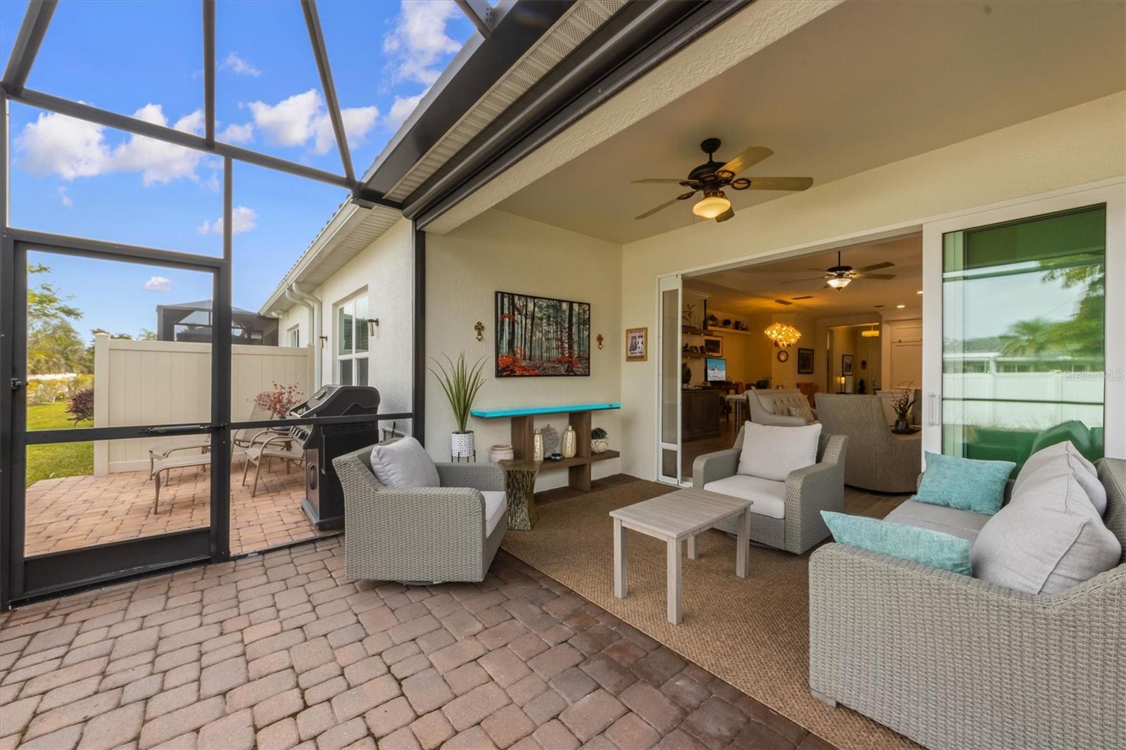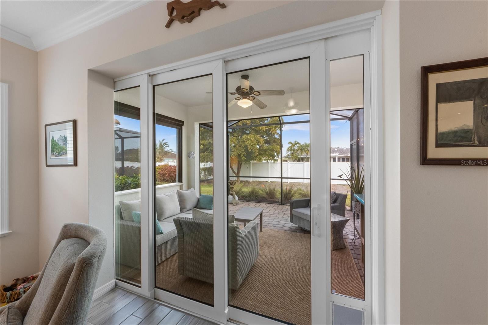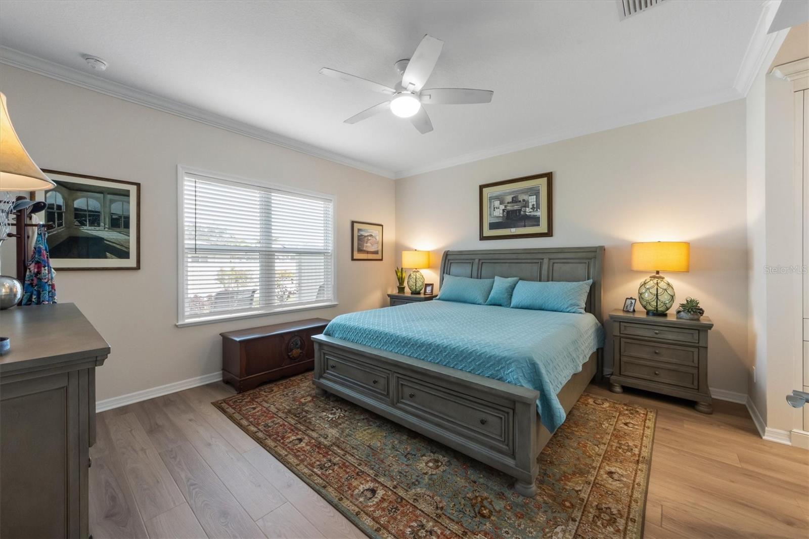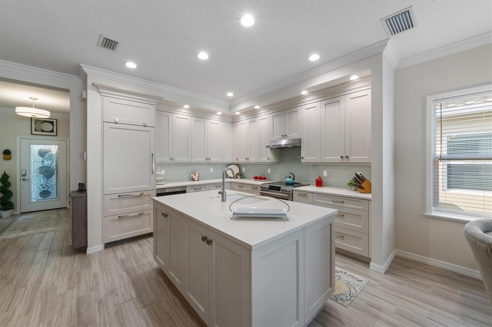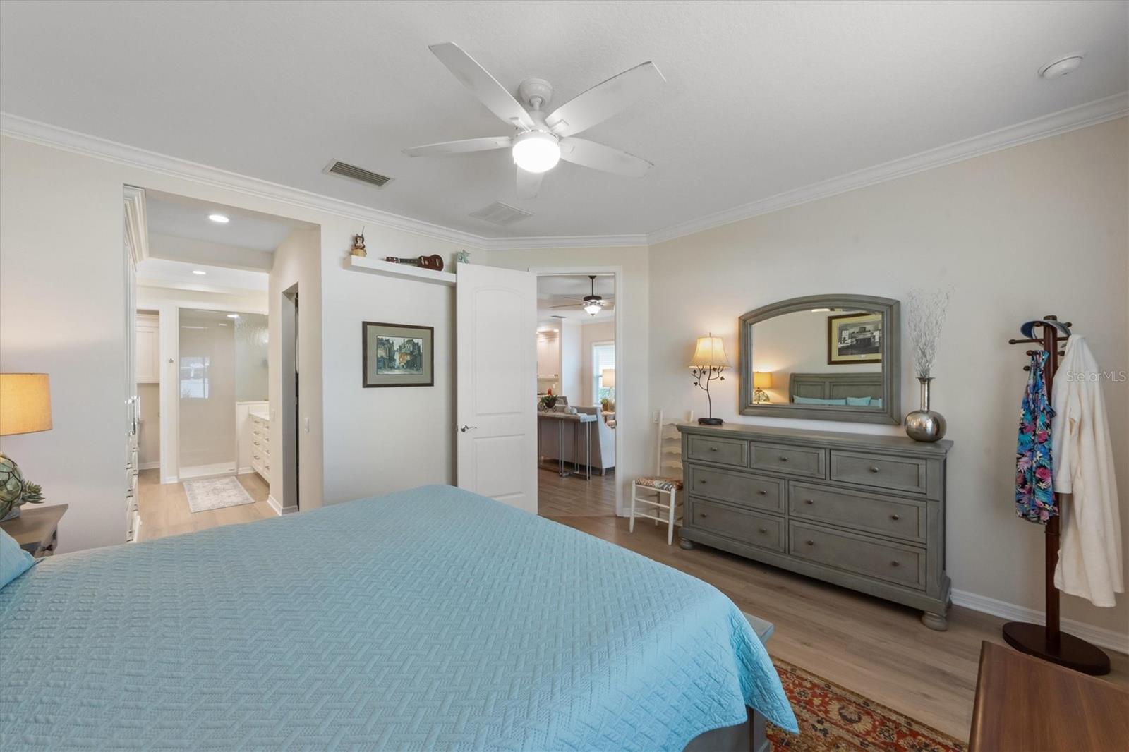 Above and beyond: That's what you'll find in this Mirabella home: Construction that meets the most stringent requirements in this fantastic 55 plus community, this LEED Platinum community is located in NW Bradenton. This home has meticulously been upgraded with new custom kitchen cabinets, Caesarstone quartz counter tops and LED lighting package. Impact hurricane windows and pocket slider. The den/office also has custom cabinets and quartz counter tops, set up as both craft room and office. Mirabelle is more than just a home; it's a lifestyle. Nestled in a serene, beautifully maintained neighborhood with access to exclusive amenities such as a community pool, clubhouse, gym and pickleball courts. A very short drive takes you to kayaking at Robinson Preserve or swimming and sunning on Island beaches. Mirabelle is absolutely unscathed by stormy weather but within reach of so much. The 2200 sq ft 2-bedroom, 2-bath home, plus a den, offers an effortlessly flowing floor plan. It moves seamlessly from the entry foyer, through a spacious living/dining room with high tray ceilings to an extended screened patio. This home has a coastal flair for you. The bedrooms feature new luxury vinyl flooring, and the study has been upgraded with porcelain tile. All the major rooms have new ceiling fans. Enjoy proximity to fine dining and shopping in this highly sought-after NW Bradenton community. A community dog park provides a place to meet neighbors and walk your four-foot fur babies, also at your fingertips, are the clubhouse, pool, and pickleball.Please note all bushes are being replaced in the back yard along the fence.