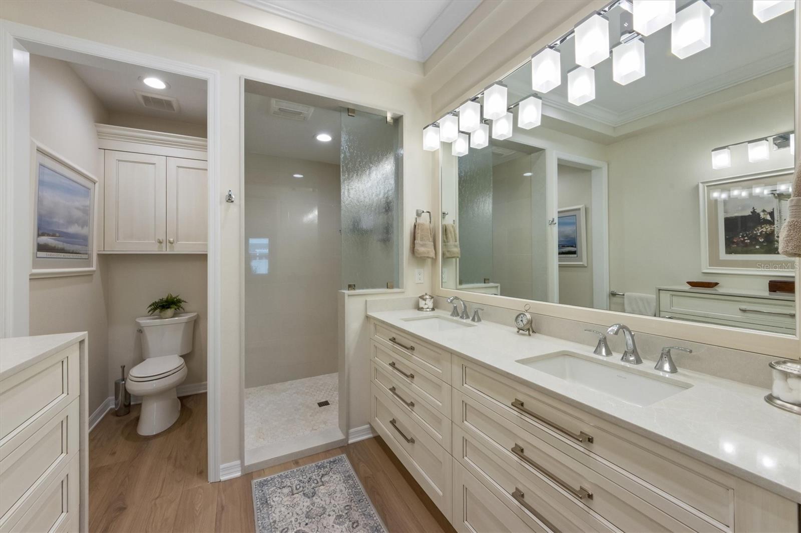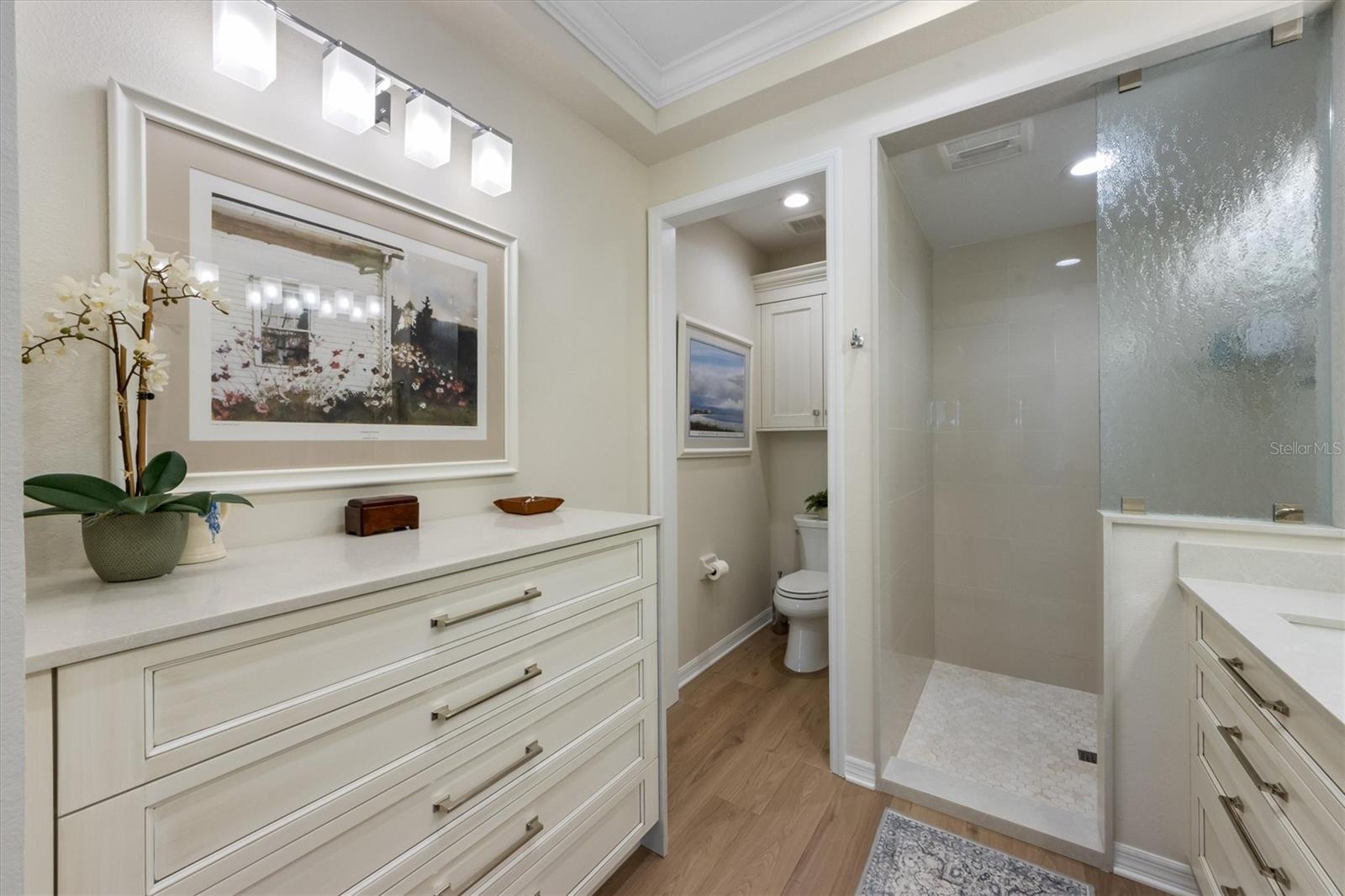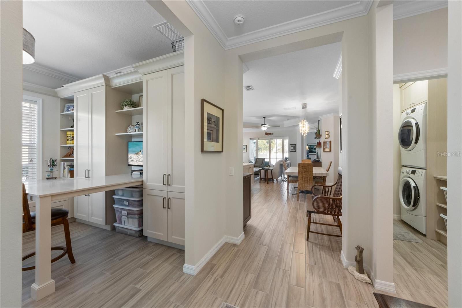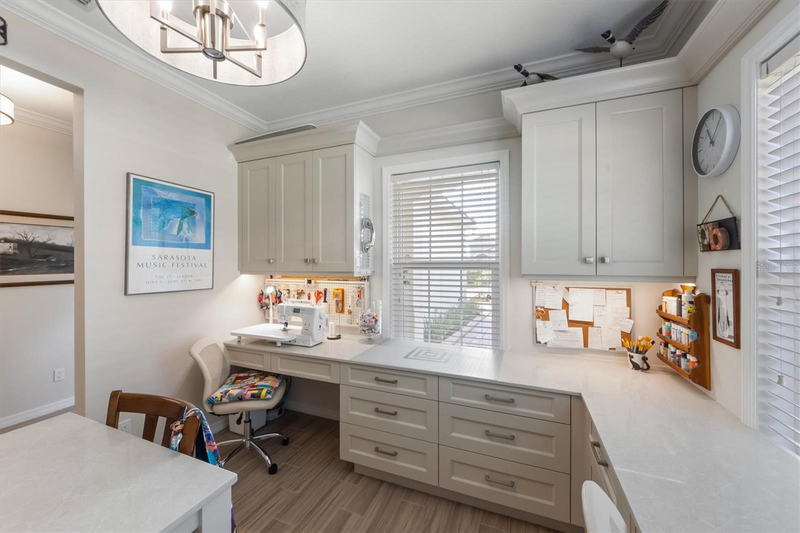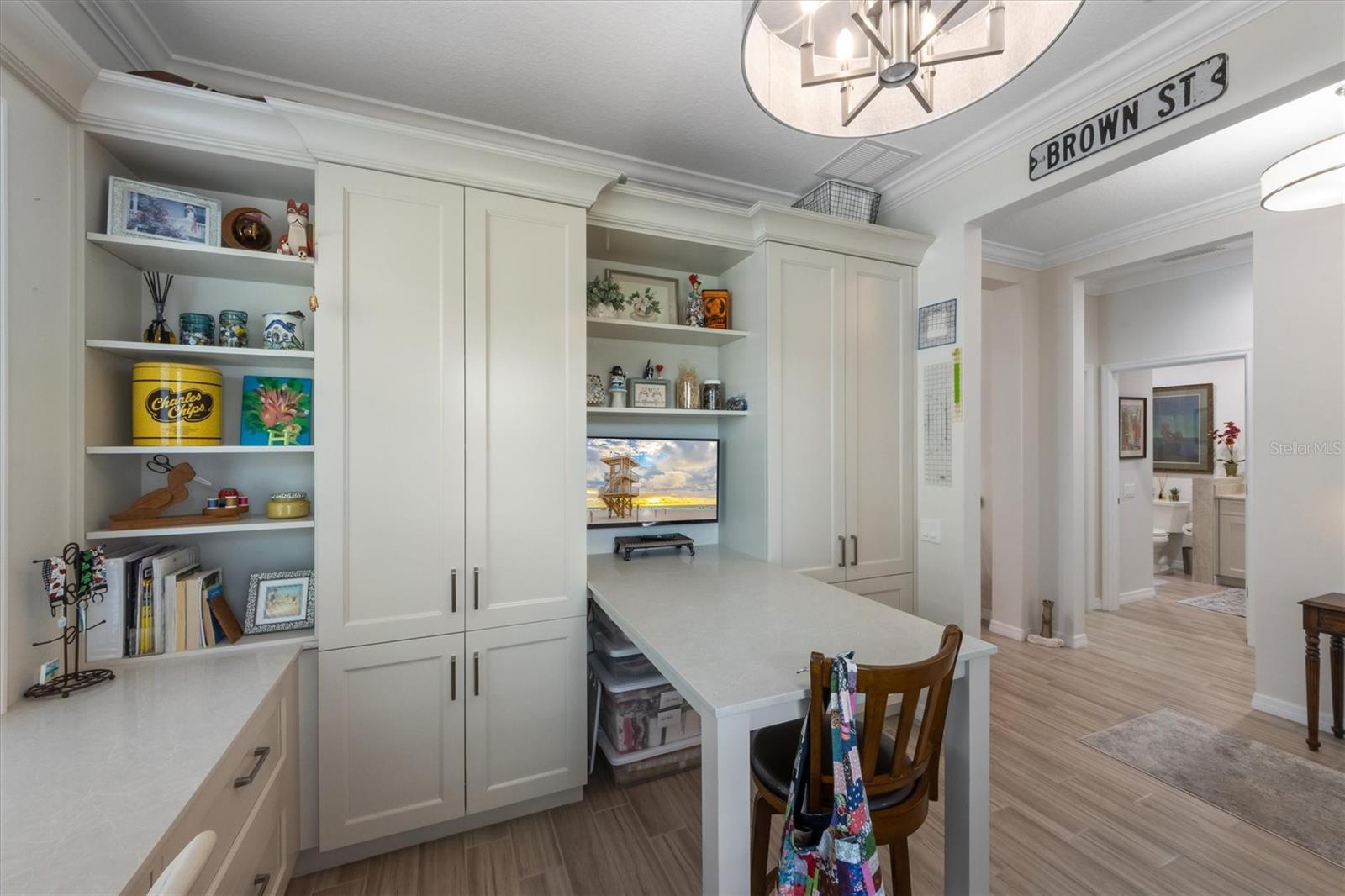 Above and beyond: That's what you'll find in this Mirabella home: Construction that meets the most stringent requirements in this fantastic 55 plus community, this LEED Platinum community is located in NW Bradenton. This home has meticulously been upgraded with new custom kitchen cabinets, Caesarstone quartz counter tops and LED lighting package. Impact hurricane windows and pocket slider. The den/office also has custom cabinets and quartz counter tops, set up as both craft room and office. Mirabelle is more than just a home; it's a lifestyle. Nestled in a serene, beautifully maintained neighborhood with access to exclusive amenities such as a community pool, clubhouse, gym and pickleball courts. A very short drive takes you to kayaking at Robinson Preserve or swimming and sunning on Island beaches. Mirabelle is absolutely unscathed by stormy weather but within reach of so much. The 2200 sq ft 2-bedroom, 2-bath home, plus a den, offers an effortlessly flowing floor plan. It moves seamlessly from the entry foyer, through a spacious living/dining room with high tray ceilings to an extended screened patio. This home has a coastal flair for you. The bedrooms feature new luxury vinyl flooring, and the study has been upgraded with porcelain tile. All the major rooms have new ceiling fans. Enjoy proximity to fine dining and shopping in this highly sought-after NW Bradenton community. A community dog park provides a place to meet neighbors and walk your four-foot fur babies, also at your fingertips, are the clubhouse, pool, and pickleball.Please note all bushes are being replaced in the back yard along the fence.