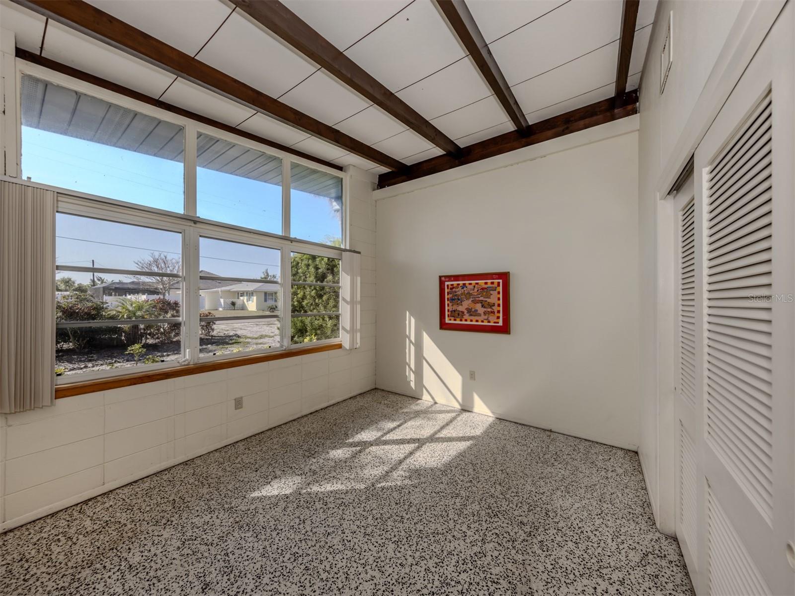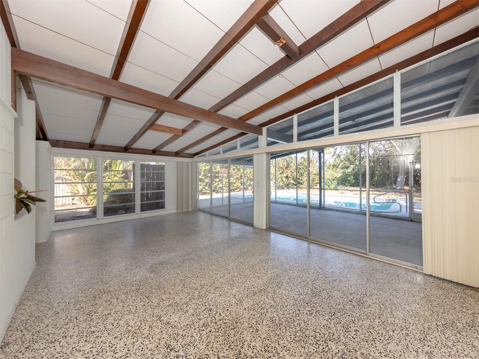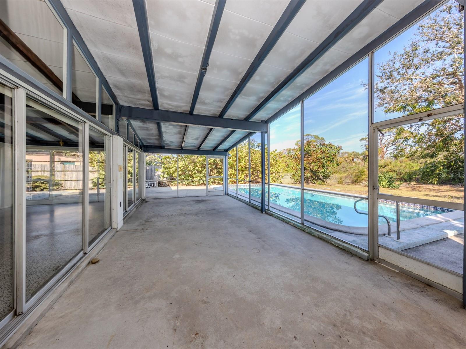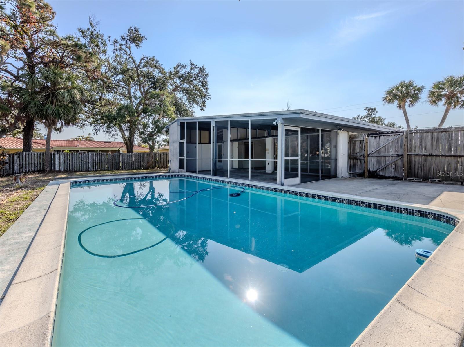 This original, one-owner Mid-Century Modern home was built in 1956 on the charming island of Venice, and just a short walk to Gulf beaches. The property is NOT in a flood zone. The house is a fixer-upper, with good bones that include terrazzo floors, spacious 25-foot living room, 16-foot dining room and 30-foot covered lanai, a sparkling 16-by-35-foot pool. The lot is almost 15,000 square feet and includes two deeded beach easements on the Gulf Coast. Venice Island, designed by John Nolen in 1926, is an amenity-rich community with numerous parks, Venice Community Center, library, arts center and history center. There are first-rate restaurants, weekly farmers markets, bakeries, boutiques and shops downtown, and kids can walk to A-rated schools. Location is a big factor for this property with outdoor activities that include concerts, art exhibits, water parks, walking and biking and the Legacy Trail, which runs from Venice to Sarasota, winding through parks and preserves, including Oscar Scherer State Park. There is bird watching, tennis, pickleball, beachfront recreation and even a special dog beach! The Gulf Shores neighborhood beach access combines beachfront fun with social activities for families. Just wait until you visit the huge Caspersen beach. Whether you restore or renovate this three-bedroom, two-bath home or build your new dream home, all this could be yours. See it today.