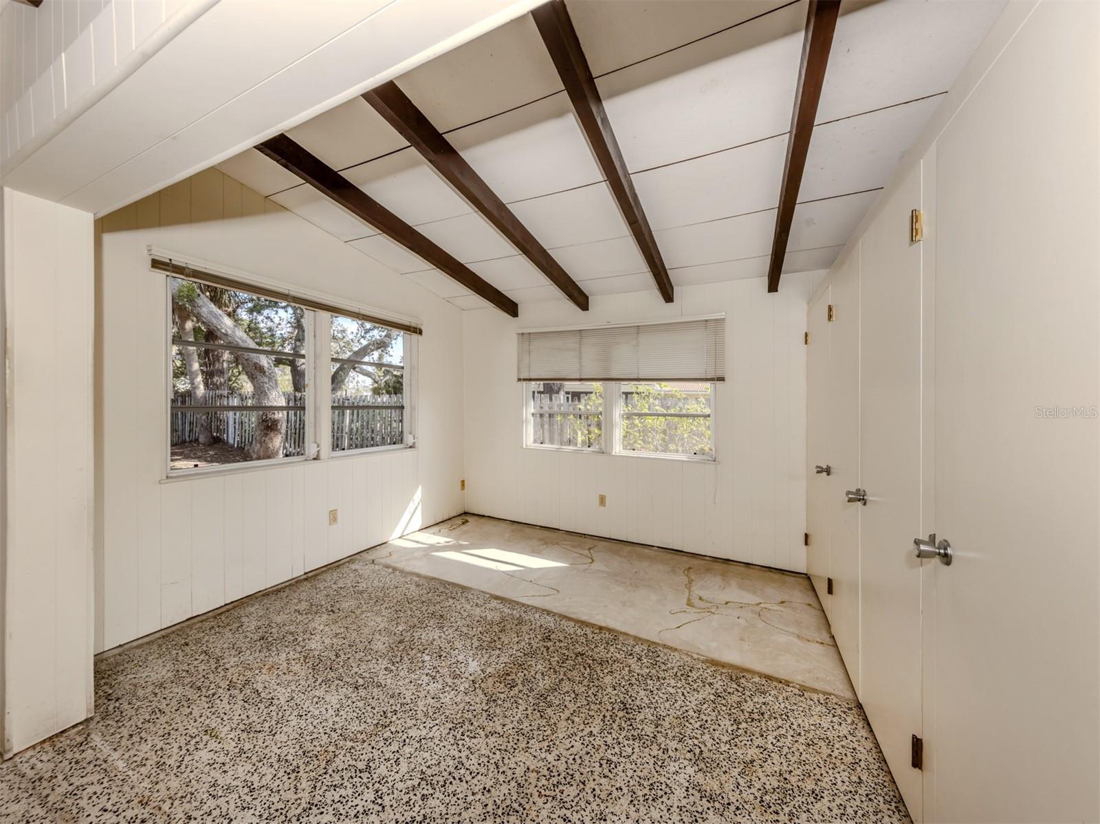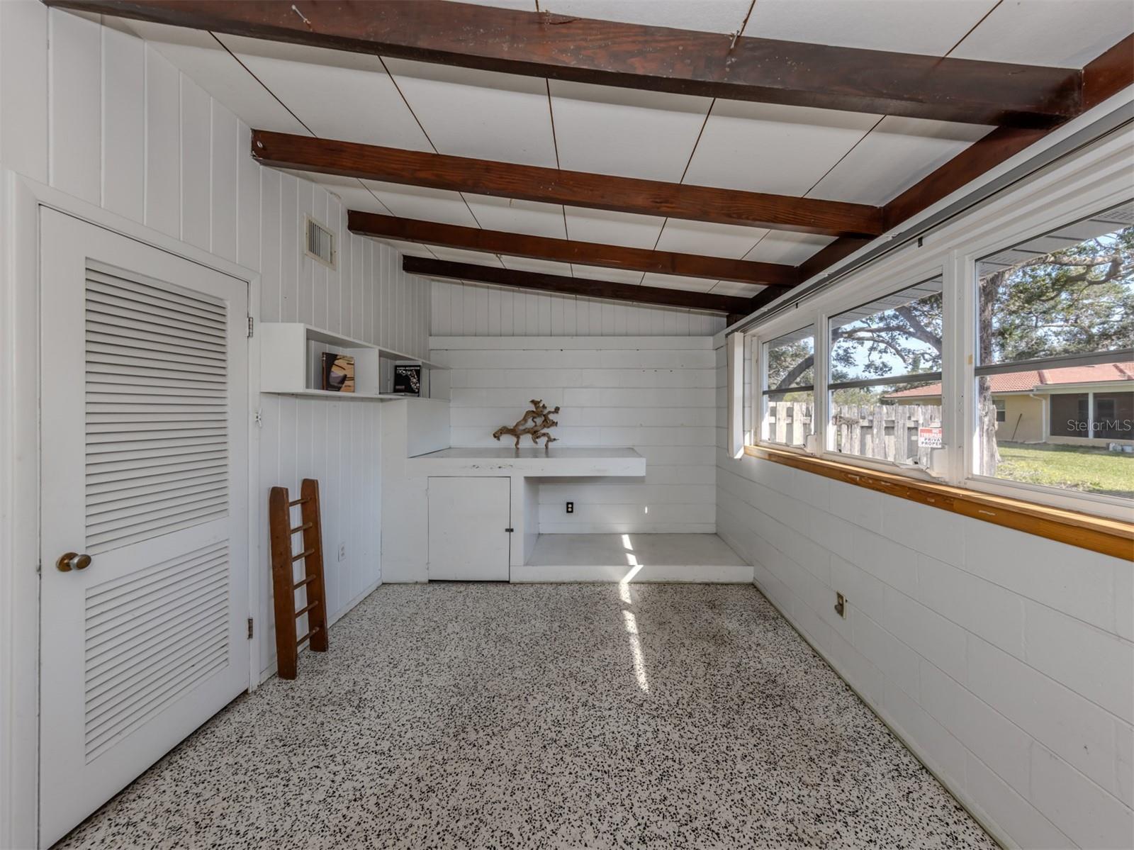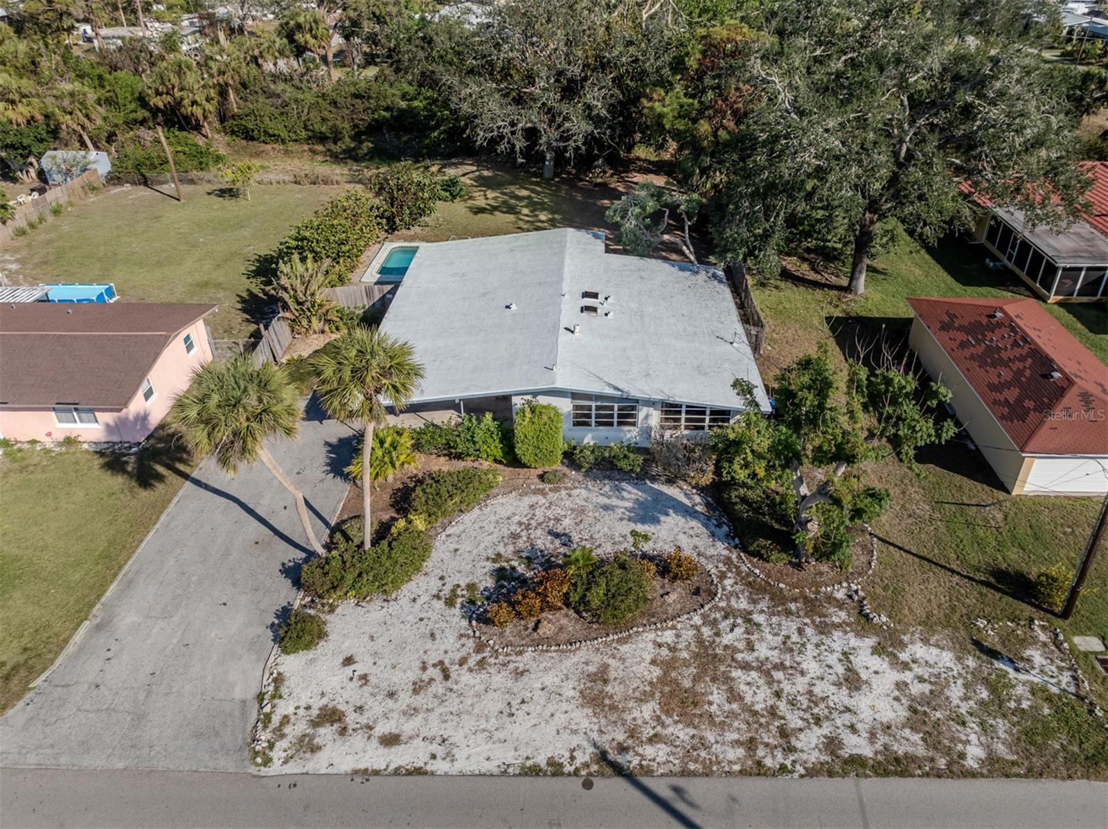 This original, one-owner Mid-Century Modern home was built in 1956 on the charming island of Venice, and just a short walk to Gulf beaches. The property is NOT in a flood zone. The house is a fixer-upper, with good bones that include terrazzo floors, spacious 25-foot living room, 16-foot dining room and 30-foot covered lanai, a sparkling 16-by-35-foot pool. The lot is almost 15,000 square feet and includes two deeded beach easements on the Gulf Coast. Venice Island, designed by John Nolen in 1926, is an amenity-rich community with numerous parks, Venice Community Center, library, arts center and history center. There are first-rate restaurants, weekly farmers markets, bakeries, boutiques and shops downtown, and kids can walk to A-rated schools. Location is a big factor for this property with outdoor activities that include concerts, art exhibits, water parks, walking and biking and the Legacy Trail, which runs from Venice to Sarasota, winding through parks and preserves, including Oscar Scherer State Park. There is bird watching, tennis, pickleball, beachfront recreation and even a special dog beach! The Gulf Shores neighborhood beach access combines beachfront fun with social activities for families. Just wait until you visit the huge Caspersen beach. Whether you restore or renovate this three-bedroom, two-bath home or build your new dream home, all this could be yours. See it today.