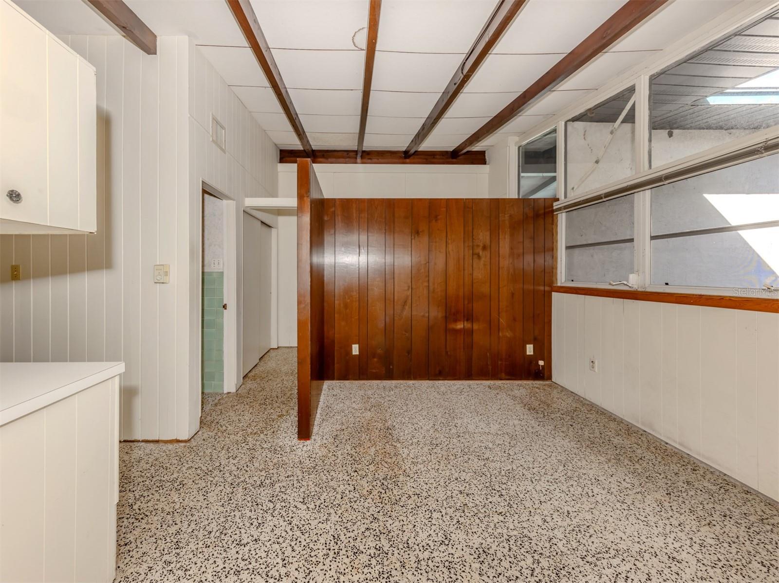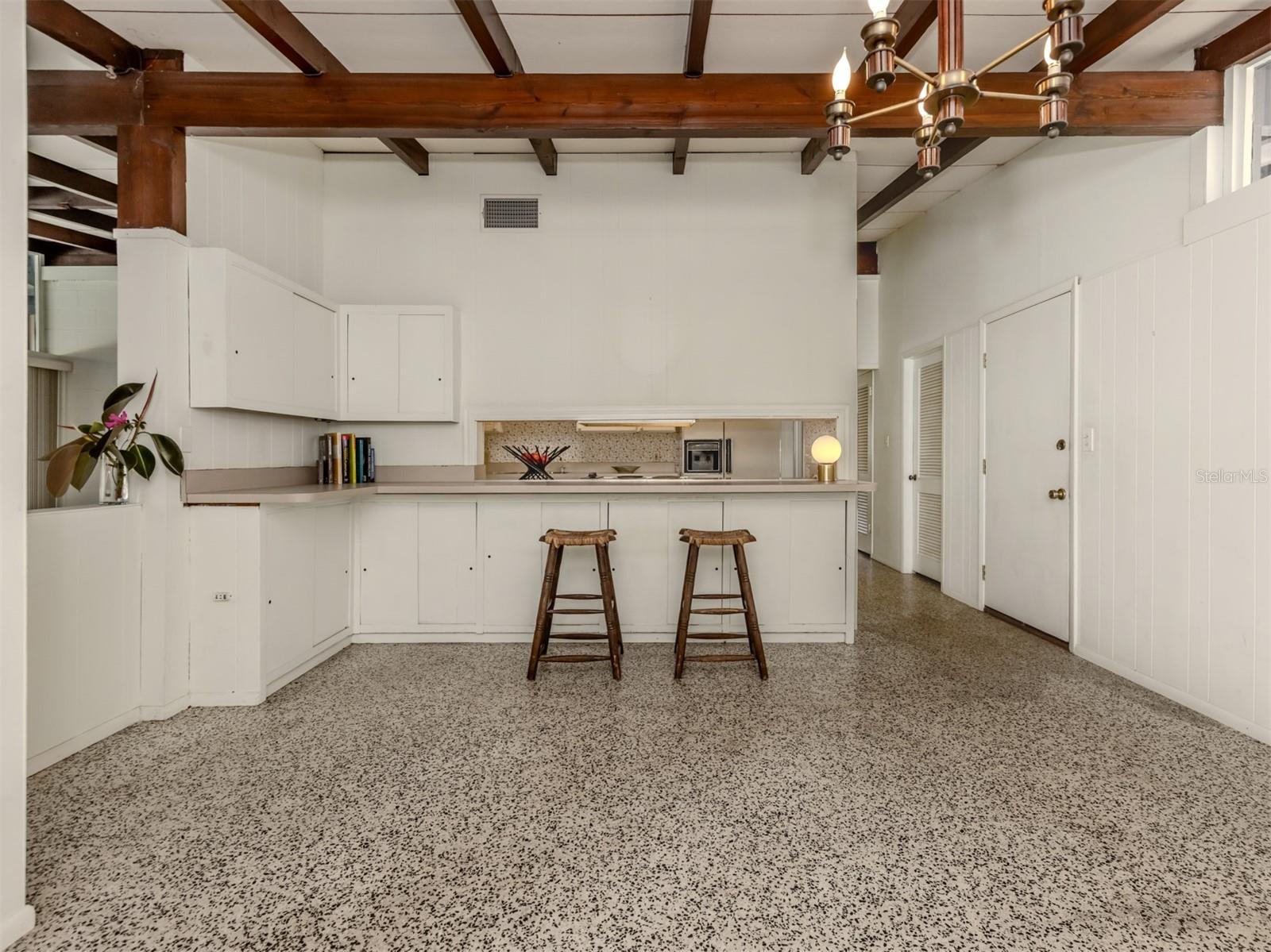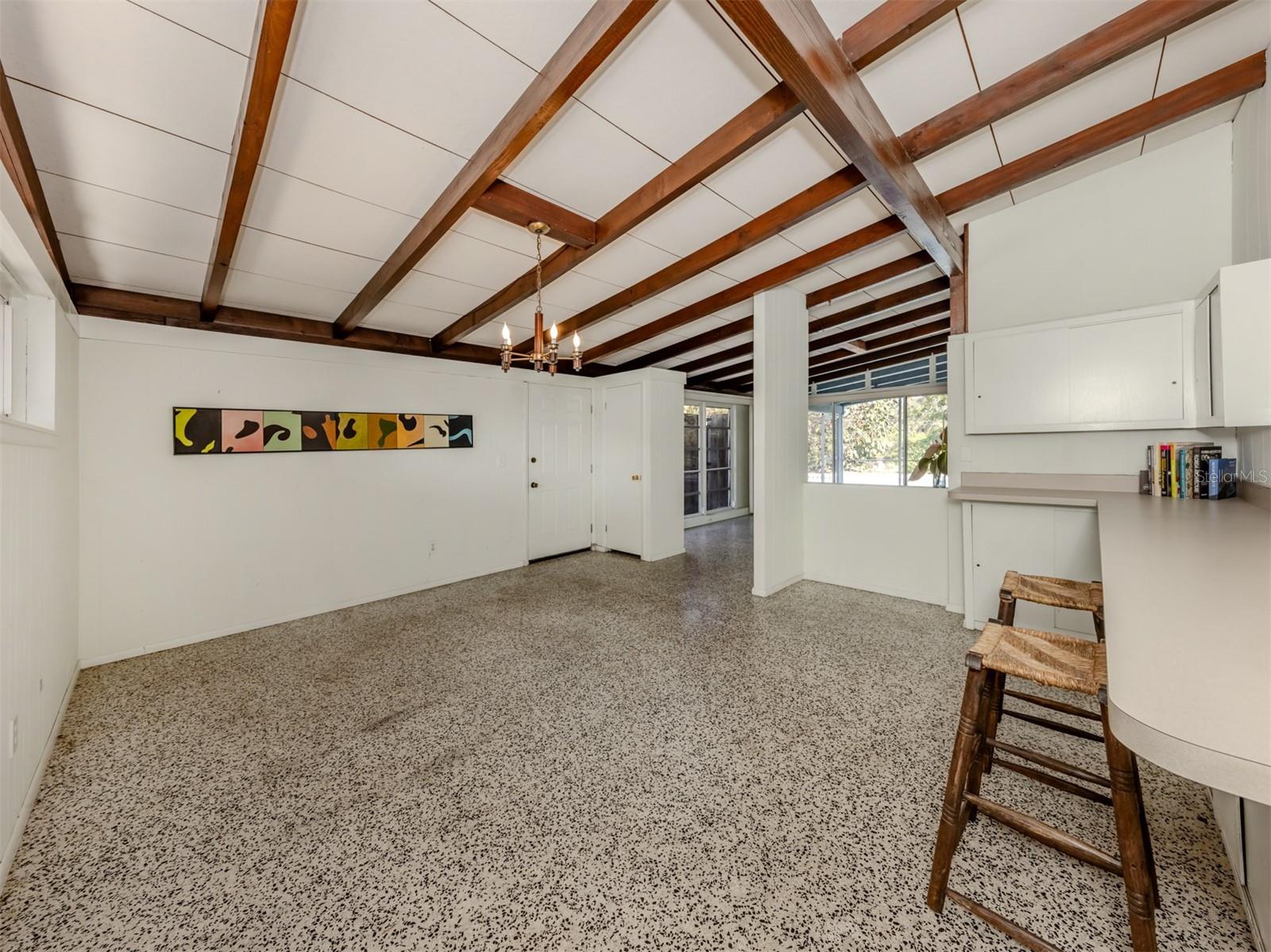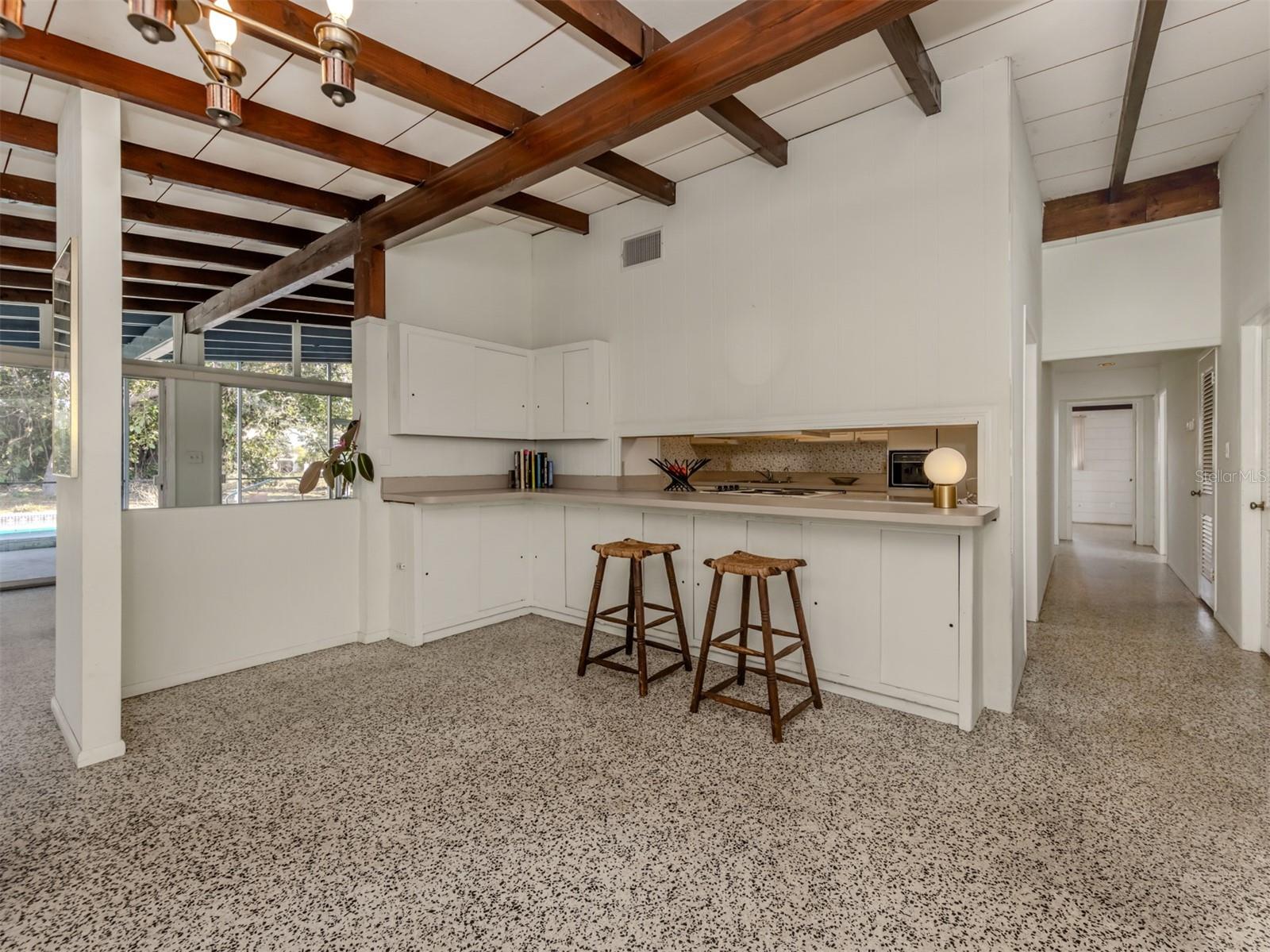 This original, one-owner Mid-Century Modern home was built in 1956 on the charming island of Venice, and just a short walk to Gulf beaches. The property is NOT in a flood zone. The house is a fixer-upper, with good bones that include terrazzo floors, spacious 25-foot living room, 16-foot dining room and 30-foot covered lanai, a sparkling 16-by-35-foot pool. The lot is almost 15,000 square feet and includes two deeded beach easements on the Gulf Coast. Venice Island, designed by John Nolen in 1926, is an amenity-rich community with numerous parks, Venice Community Center, library, arts center and history center. There are first-rate restaurants, weekly farmers markets, bakeries, boutiques and shops downtown, and kids can walk to A-rated schools. Location is a big factor for this property with outdoor activities that include concerts, art exhibits, water parks, walking and biking and the Legacy Trail, which runs from Venice to Sarasota, winding through parks and preserves, including Oscar Scherer State Park. There is bird watching, tennis, pickleball, beachfront recreation and even a special dog beach! The Gulf Shores neighborhood beach access combines beachfront fun with social activities for families. Just wait until you visit the huge Caspersen beach. Whether you restore or renovate this three-bedroom, two-bath home or build your new dream home, all this could be yours. See it today.