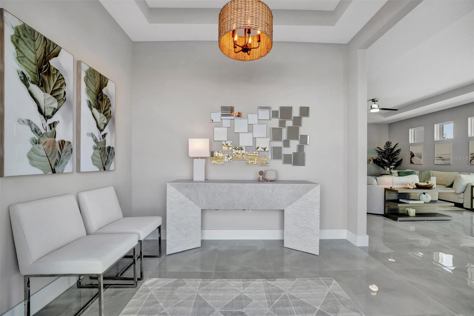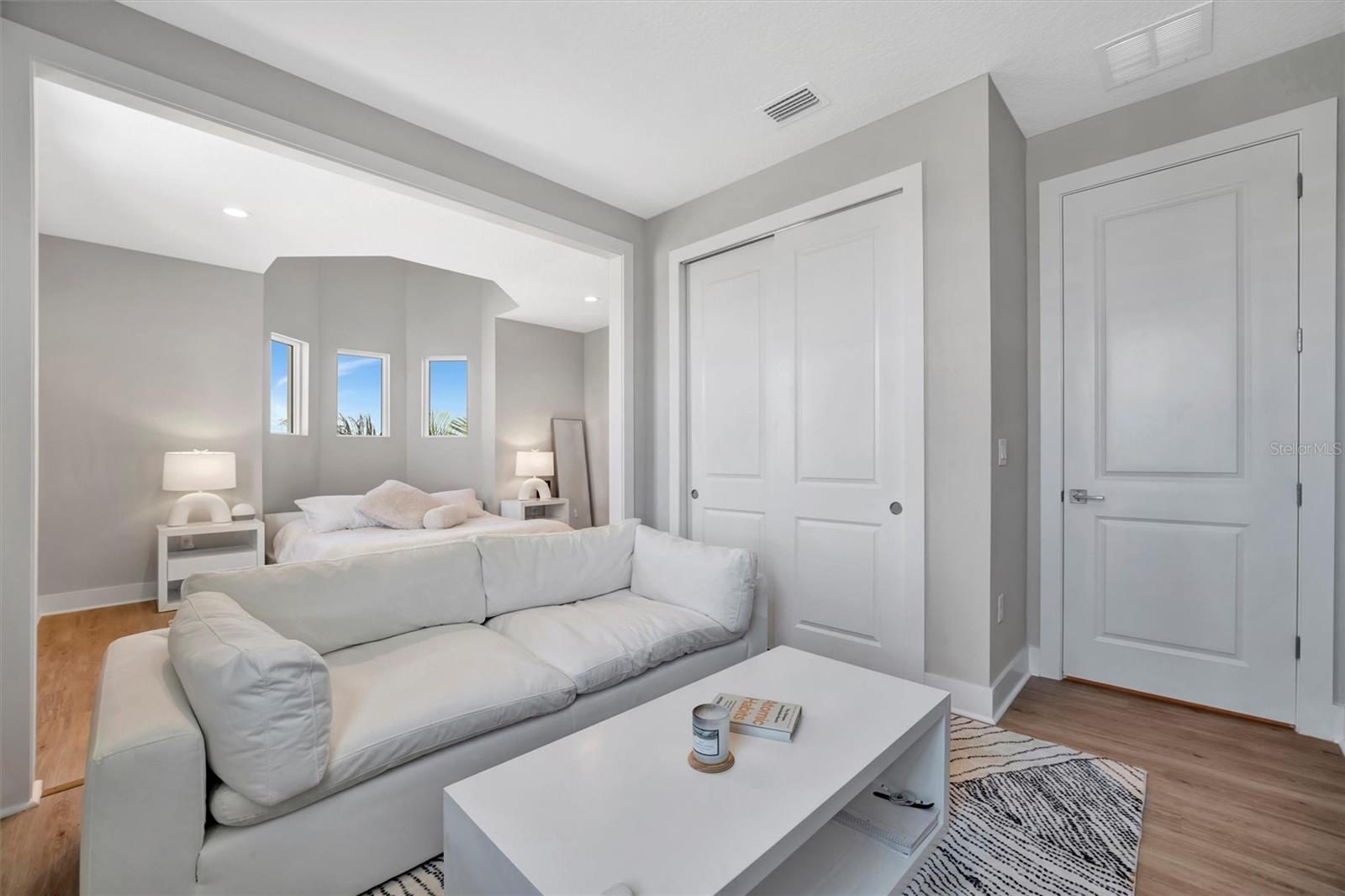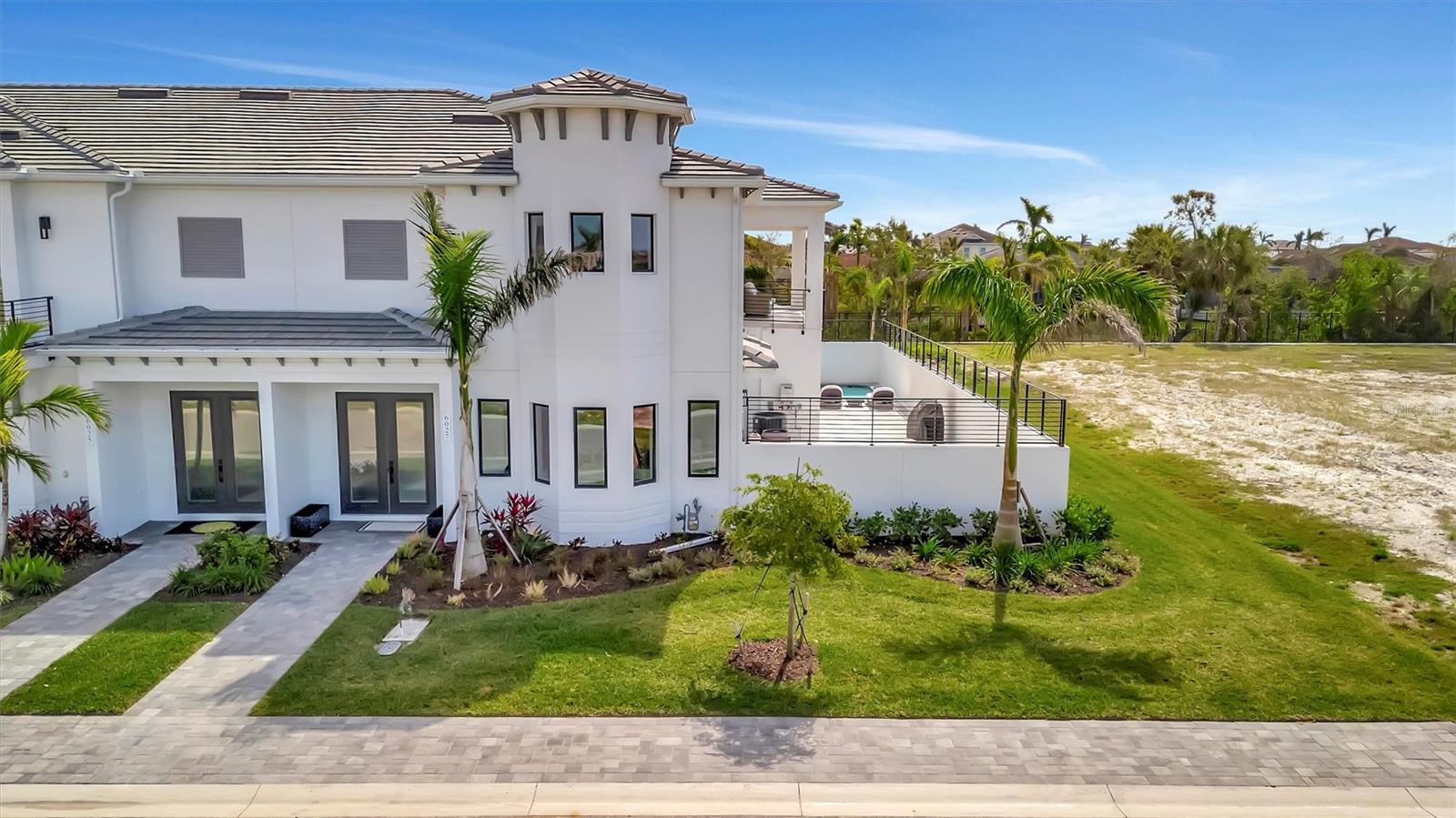 Spanning 3,149 sq. ft., this stunning and meticulously designed residence features 4 bedrooms, 5 bathrooms, loft, 2nd floor balcony overlooking the Sarasota Bay, and an extended courtyard highlighted by a private pool. This rare and high demand Coconut Palm model creates the ideal setting for both relaxation and entertaining from the comforts of your own home. Ideally situated in the exclusive gated Aqua Lagoon community, boasting an incredible 4-acre private translucent, blue lagoon and beach, and currently featured in the Parade of Homes. As you enter through the foyer you will immediately be greeted with the open-concept layout that seamlessly connects the living, dining, and kitchen areas. Off the formal dining room is direct access to your private outdoor courtyard creating the ideal space for the indoor/outdoor dining experience of your choice. The kitchen is highlighted by a free-standing island that opens up into the living room. Equipped with modern finishes, a gas cooktop, built-in microwave and oven, beverage fridge, and pantry, it's a chef's dream offering both functionality and style. Whether you're preparing meals or enjoying casual dining, the kitchen provides a welcoming space to entertain or unwind. Down the hallway from the main living sits the spacious master suite providing a serene experience, complete with a luxurious en-suite bathroom with a walk-in closet. The master suite provides direct views and sliding door access to the outdoor patio and pool area. An additional full bathroom is conveniently located just off the other patio entrance and next to the garage entrance. Take the stairway or step into your private elevator to the second-floor retreat. Upstairs, you'll enter the open loft area that can be utilized to meet your needs for the space. A second-floor master suite has been created with an additional seating space that can also be easily converted back to a 5th bedroom. There is an en-suite bathroom with an oversized walk-in shower. Just off the second-floor master are two additional bedrooms and bathrooms. Setting the stage for your indoor-outdoor living is a full private 2nd story balcony offering views of the Sarasota Bay as well as the Aqua Lagoon. Enjoy your morning coffee, a late-night cocktail or watch the sunset as this outdoor retreat provides a peaceful escape with an added sense of privacy and tranquility. Additional amenities include a walk-in laundry room and two car garage with an alley way entrance. Whether you are looking for a home to call yours, a Florida retreat, or an annual rental investment this property checks all the boxes with the modern amenities, flexibility, and privacy, it's truly a place to live in tropical luxury. Aqua lagoon is conveniently located near world renowned IMG Academy, IMG Golf & CC, Anna Maria Island, Cortez Village, and SRQ airport, while remaining a short drive away from shopping and entertainment districts such as UTC and St Armand's Circle. Beat the wait for a new build and schedule your private showing of this FL gem!!!