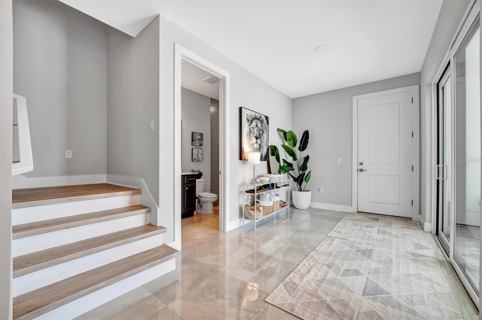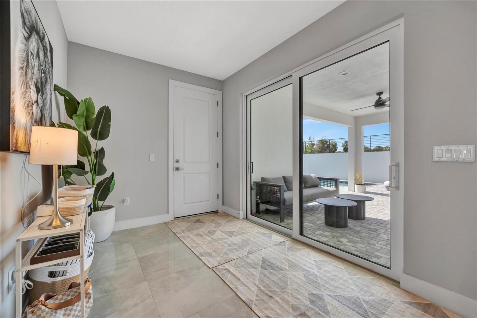 Exterior: Balcony, Courtyard, Lighting, Outdoor Grill, Sidewalk, Sliding Doors
