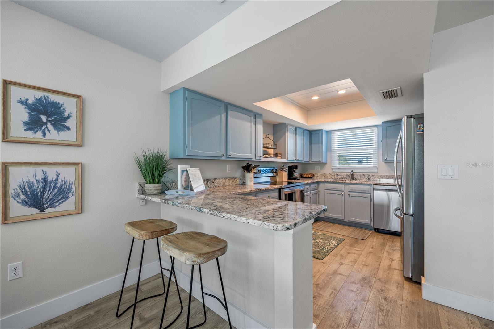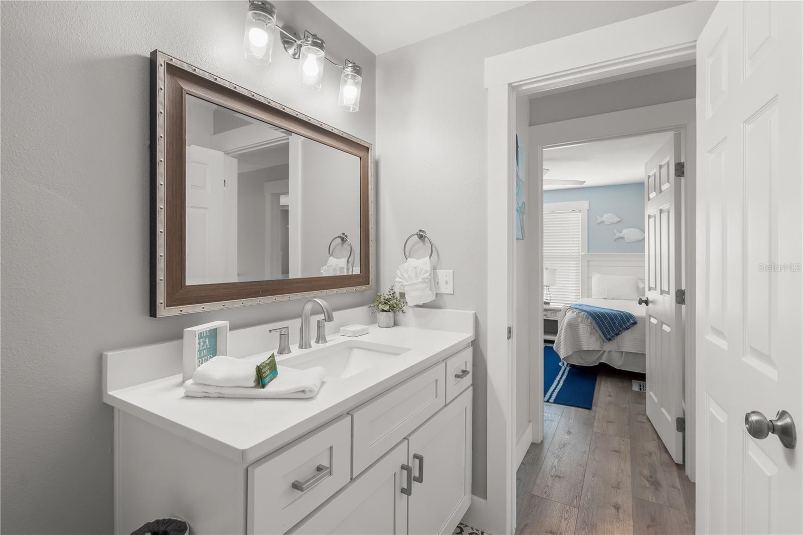 OHHHH THE UPDATES!! BRAND NEW KITCHEN and flooring...and updates galore! There is so to enjoy about this great investment home! This is the perfect beach haven, just a hop, skip & a jump to the Gulf beach! Just steps to Bean Point, this elevated 3 bed/2.5 bath pool home is a great income property! Updated with beautiful coastal style, this home is designed for relaxing. Start the day sipping coffee on your screened porch or enjoy the space around your open dining table! Stretch out in the family room where the coastal comfort welcomes you with shiplap walls, large updated windows, new lighting, fresh paint and furnishings. Upstairs you will find your large bedroom with its private porch, walk in closet, updated en suite and peeks of the Gulf! Both guest rooms also enjoy an updated (2024) bathroom and the gorgeous coastal dcor! Whether you're lounging at the poolside bar, relishing the breeze on the screened porches, relishing the comfort of your cozy bed, or using your back gate to pop over to the sugar sand beach, you will love the island life from every spot of this updated home! From all the UPDATED appliances, the metal roof, the luxury vinyl plank flooring, the NEW doors & door frames, the NEW paint (inside & out), the NEW lighting and the NEW fans, to all the UPDATED dcor - this beach house is picture perfect! And outside you will relish the added landscaping and palm trees, lighted stair way, privacy wall, covered bar and your heated pool and spa! Enjoy a cocktail and the game while floating in the pool, and easy access to your beach toy storage space! Inside and out this island home welcomes relaxation and enjoyment! AND you will REALLY enjoy the short term rental income! It's time for your island life to begin...