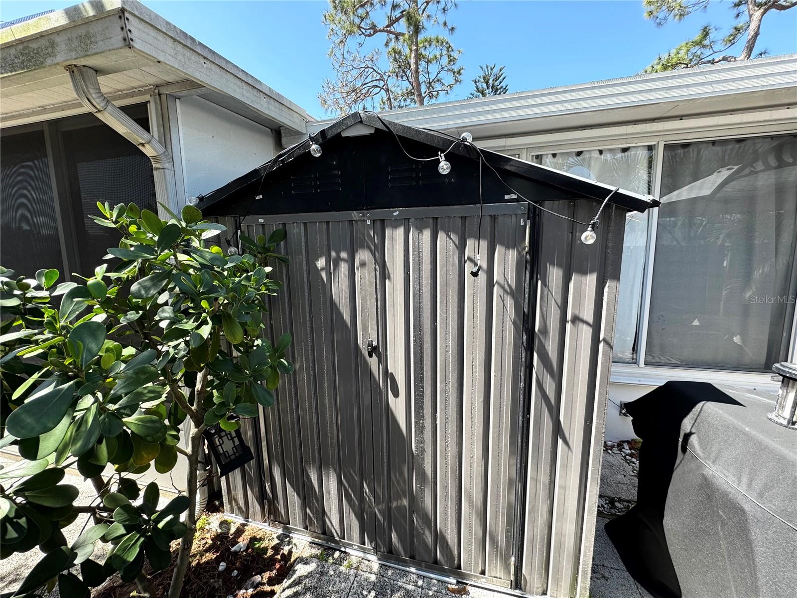 Exterior: Lighting, Sidewalk, Sliding Doors, Storage