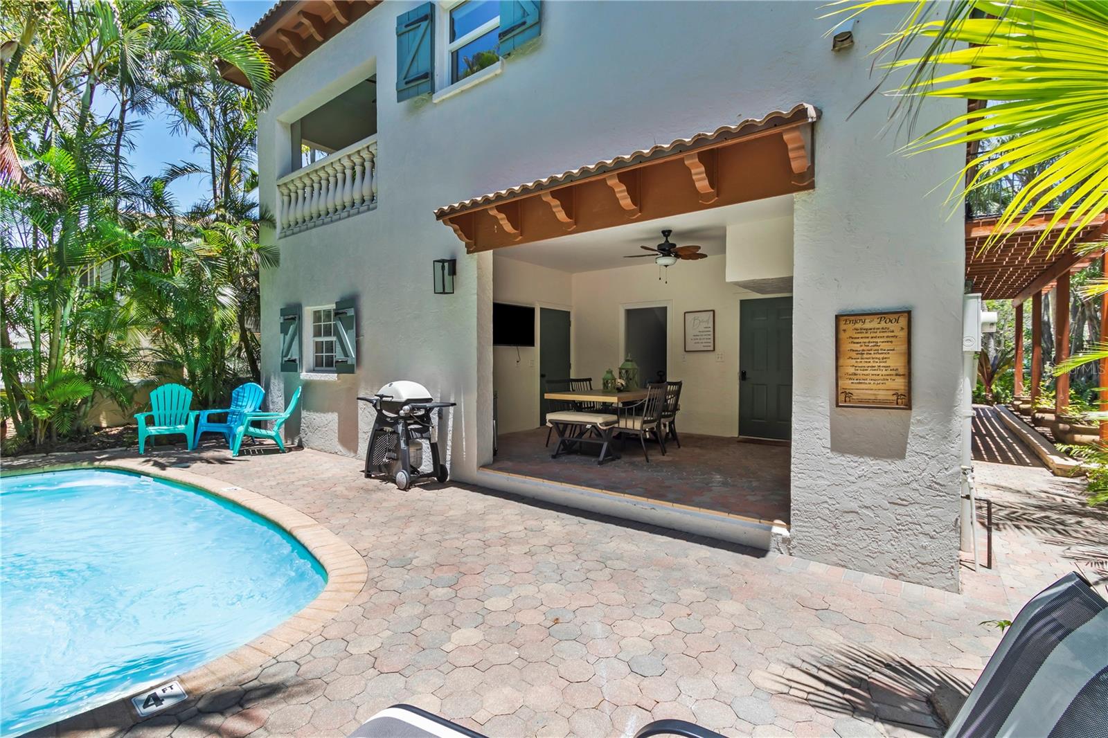 Discover your slice of paradise on Anna Maria Island! This meticulously maintained, ELEVATED, turnkey furnished, home offers the quintessential Gulf Beach lifestyle, located just ONE BLOCK from the pristine gulf beaches, you can effortlessly walk to sun, sand, and surf. Featuring 3 bedrooms & 3 bathrooms, this elevated home provides ample space for relaxation and entertaining. Step into a world of comfort and style with new flooring throughout, creating a fresh and inviting open atmosphere. The remodeled kitchen, boasting gorgeous quartz countertops and stainless steel appliances, is perfect for entertaining. Relax and unwind in your private, heated pool, surrounded by lush, tropical landscaping that ensures complete privacy. Enjoy your morning coffee or evening cocktails on one of the multiple lanais, designed for ultimate relaxation. The outdoor dining area is perfect for al fresco meals with family and friends. Leave the car behind and stroll to the charming shops, delectable dining, and convenient grocery store that Anna Maria Island offers. This prime location offers unparalleled convenience. The spacious garage provides a fantastic opportunity for a game room or convenient golf cart parking.Impact windows/sliding doors and newer tile roof provide peace of mind and enhanced energy efficiency. Importantly, the elevated design ensured this property remained untouched by recent storm damage to the living space. This home is a PROVEN VACATION RENTAL, generating consistent income - 2023 - 129K, 2024 - 124K, 2025 - 100K+ so far, and 2026 - 37K so far and is ready for its next fortunate owner. Don't miss this chance to own a piece of paradise on Anna Maria Island, where every day feels like a vacation. Schedule your showing today!"
