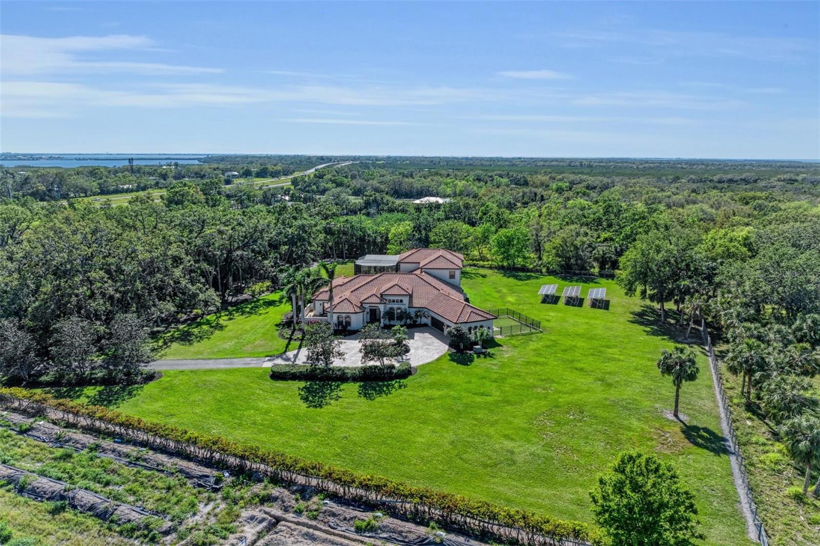 Welcome to this extraordinary custom-built John Cannon estate, where seclusion, luxury, and modern convenience merge flawlessly. Located just minutes from I-75 and I-275, and five minutes from the rapidly growing North River Ranch with brand-new schools, medical facilities, restaurants, and more, this lovely 5 acre masterpiece is sure to impress with 4 bedrooms, 4.5 bathrooms! The perfect blend of elegance and practicality with the freedom that comes from NO HOA or CDD. Freshly painted interior and exterior, along with energy-efficient features like a modern tankless water heater and ground-mounted solar panels, ensure comfort and sustainability. The open floor plan is perfect for both relaxing and entertaining. The gourmet kitchen with sub-zero and induction stove flows seamlessly into the expansive great room and dinette, perfect for hosting guests. Enjoy added luxury with a soundproof theater room, a library with built-in bookcases, and BONUS ROOM or a possible 5th bedroom. Outdoors, the tropical entertainment area with salt water pool and spa, offers the ultimate in privacy and relaxation. Fenced dog yard with synthetic grass, lush landscaping including majestic oaks and a statue garden are just a few extras. Nature lovers will delight in the adjacent 2,000-acre Terra Ceia State Preserve, perfect for birding, fishing, and hiking, while horse lovers will enjoy the world-class equestrian facility offering programs for riders of all ages within walking distance. The easy access to St. Petersburg, Tampa, Orlando and Sarasota makes this the ideal location on the gulf coast. This is more than just a home - it's a lifestyle, where every day feels like a vacation. With OWNER FINANCING available, don't miss your chance to own a piece of Florida's finest real estate. Live the dream today!
