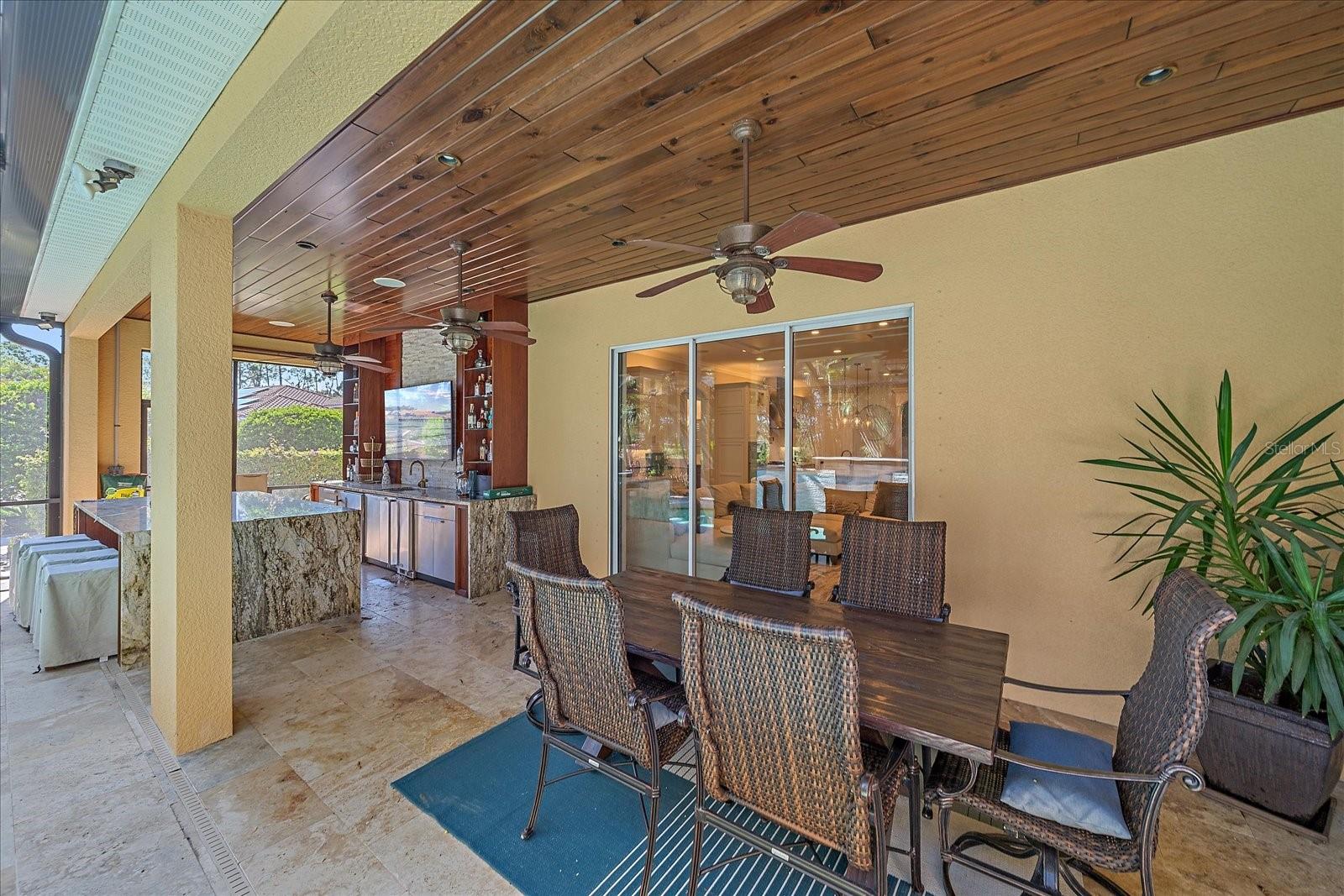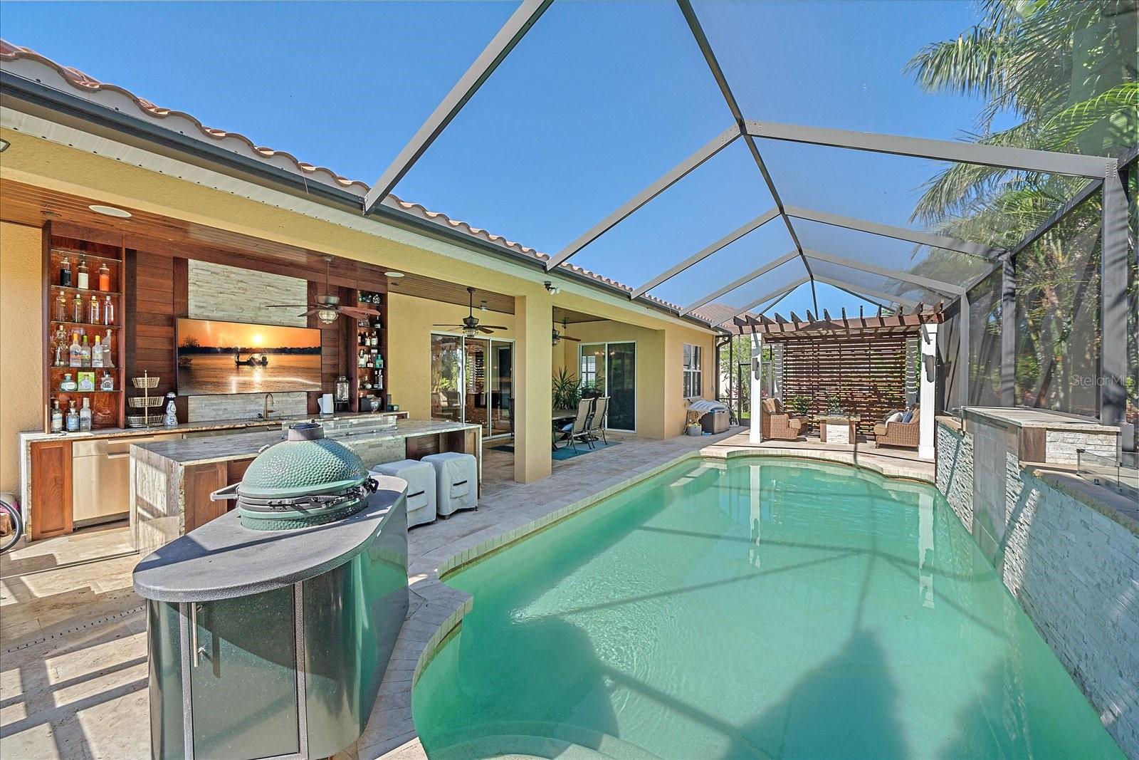 Exterior: Dog Run, Hurricane Shutters, Lighting, Outdoor Kitchen, Rain Gutters, Sliding Doors