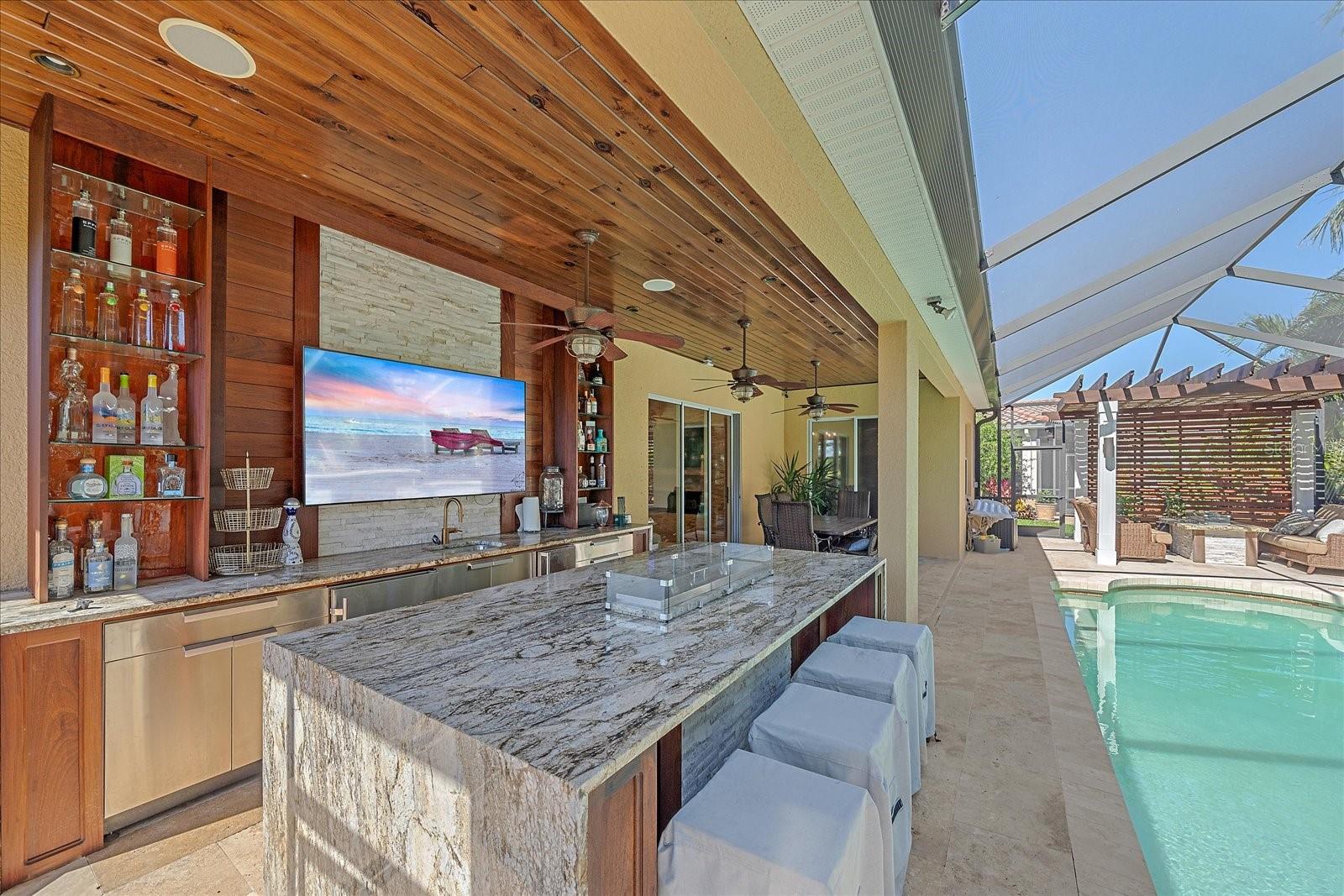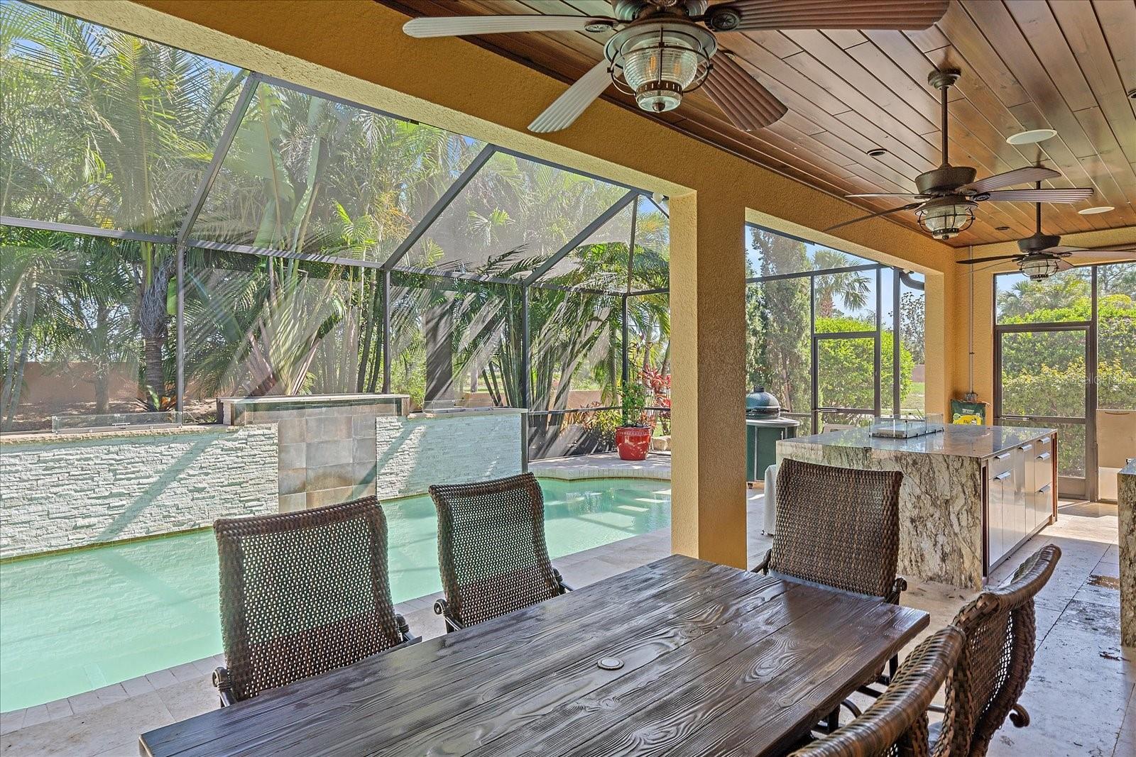Unmatched Luxury Living in Sarasota!This fully remodeled pool home is everything you've dreamed of and more! With exquisite finishes from top to bottom, this property boasts solid walnut beams, custom Fieldstone cabinetry, and Italian porcelain floors. The chef's kitchen includes GE Cafe appliances, a handmade range hood, gas cooktop, and a wine & coffee bar.Entertaining is effortless with a spacious open layout that flows seamlessly to the outdoor oasis. Enjoy 5 fire pits, an Ipe pergola/bar, a 75" outdoor TV, Marvel ice maker, beverage fridge, and Sonos surround sound--perfect for any gathering.The primary suite is a retreat, featuring a steam shower, jacuzzi tub, teak accents, and his & her vanities. The custom office with Crate & Barrel furniture, a walnut coffered ceiling, and built-in shelving offers the perfect workspace. The oversized 3-car garage is complete with A/C, custom shelving, and climate-controlled storage.Top-of-the-line features include a whole-home Generac generator, LED lighting throughout, a Vivint security system, Rainsoft water softener, and a Wi-Fi-controlled irrigation system. Plus, a new two-stage HVAC system (2024) ensures year-round comfort.Located just minutes from Siesta Key beaches, world-class shopping, and dining, in the gated Red Hawk Reserve community, this home offers luxury with low HOA fees and no CDD fees. Schedule your private showing today--this stunning property won't last long!