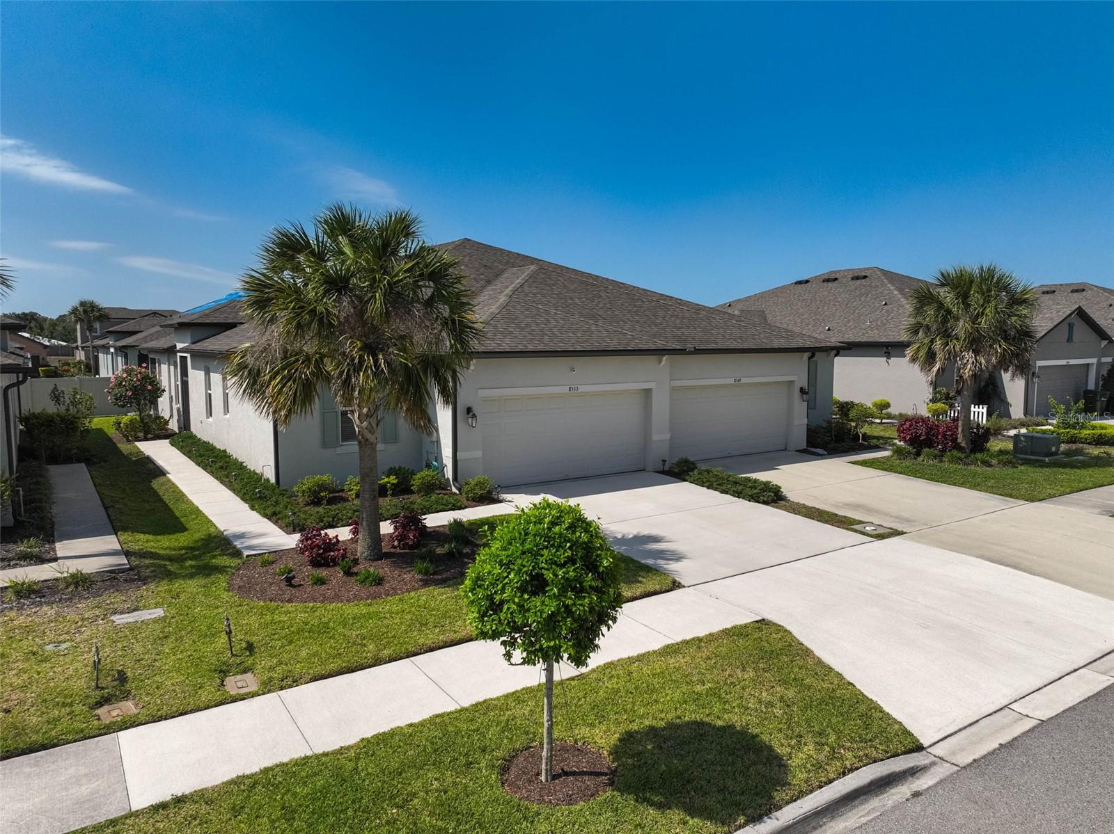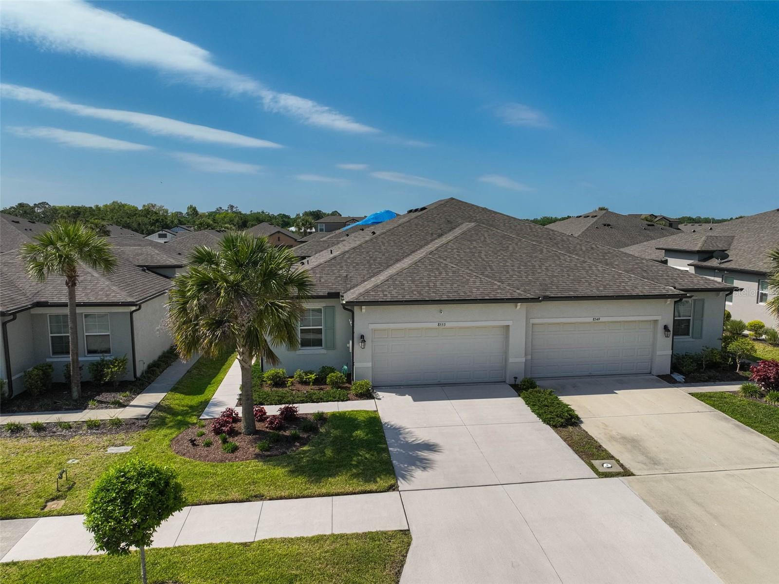 Beautifully appointed 3 bedroom, 2 bath villa with a 2 car garage, low HOA dues, no CDD fees, 15-year structural warranty, and is super energy-efficient.This home enjoys a peaceful view of a protected preserve, so you will have beautiful greenery for your front view and located on a serene street in a quiet community. This is the Pearl floorplan that boasts 1619 sqft. of open living space. The plan features tile flooring throughout the main living areas and carpeting in all three bedrooms with 2 panel doors welcoming you into each room. The owners' suite features dual sinks with quartz countertops, white shaker cabinets with upgraded pulls, a frameless, spacious glass-enclosed shower, luxury-grade mirrors, and spacious walk-in closet. The kitchen has stainless steel appliances, with quartz countertops, upgraded cabinet pulls on all of the white shaker cabinets, under-cabinet lighting, new garbage disposal, and spacious island. The adjoining dining area flows seamlessly into the living space, leading to glass sliding doors that open onto a screened-in lanai, ideal for relaxation or grilling. The laundry room is equipped with smart LG appliances that can also be controlled with the LG app, shelves, and a closet for additional storage. Custom Kevlar hurricane shutters are stored in the 2-car garage. Community amenities include a covered pavilion with grills, 2 granite prep islands, and ample seating. The playground and large soccer/activity field provide recreational opportunities for all ages. The mailbox station is also conveniently located at the amenity center. In addition to the community features listed, the HOA fees also include Roof Replacement, Irrigation, and Exterior Painting of your Villa! Located just minutes from Waterside, grocery stores, restaurants, UTC Mall, downtown Sarasota, Siesta Key & Lido Key beaches, this villa offers the best of Florida living. It has been REMOVED from the flood map, an expense the seller provided as an added benefit and piece of mind for the new owner. FEMA Letter of Removal and Elevation Certificate are available upon request. MOVE-IN READY with the flexibility for a fast closing. It's a fantastic value!