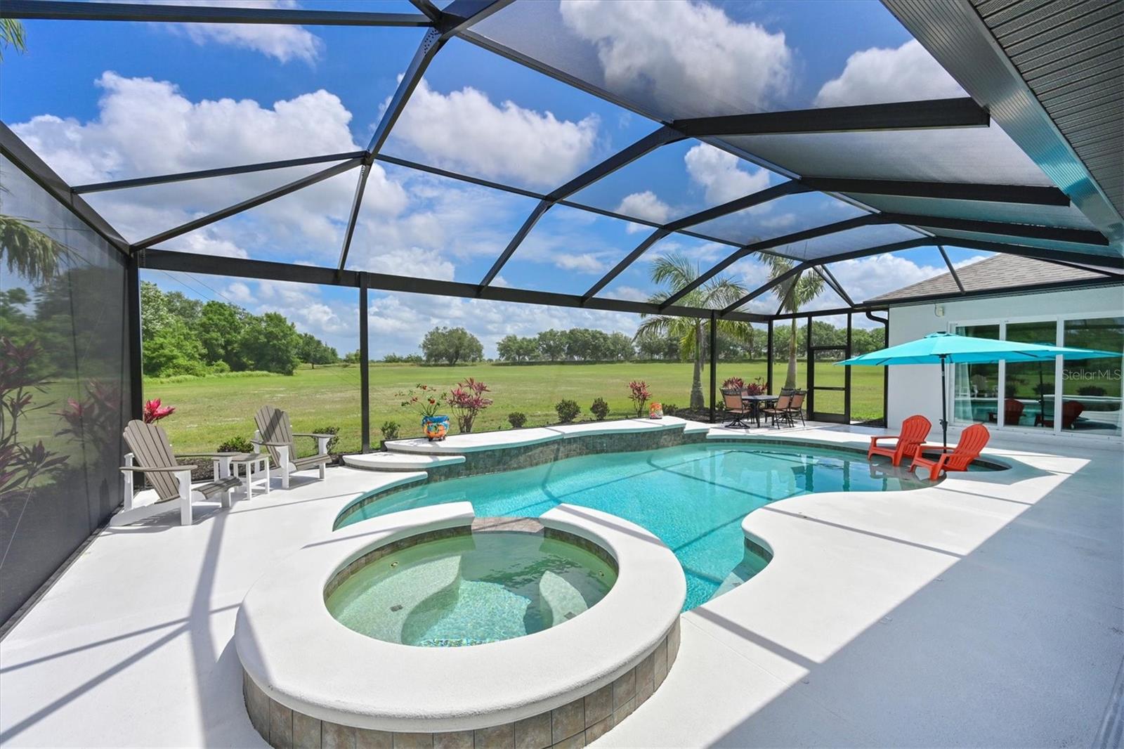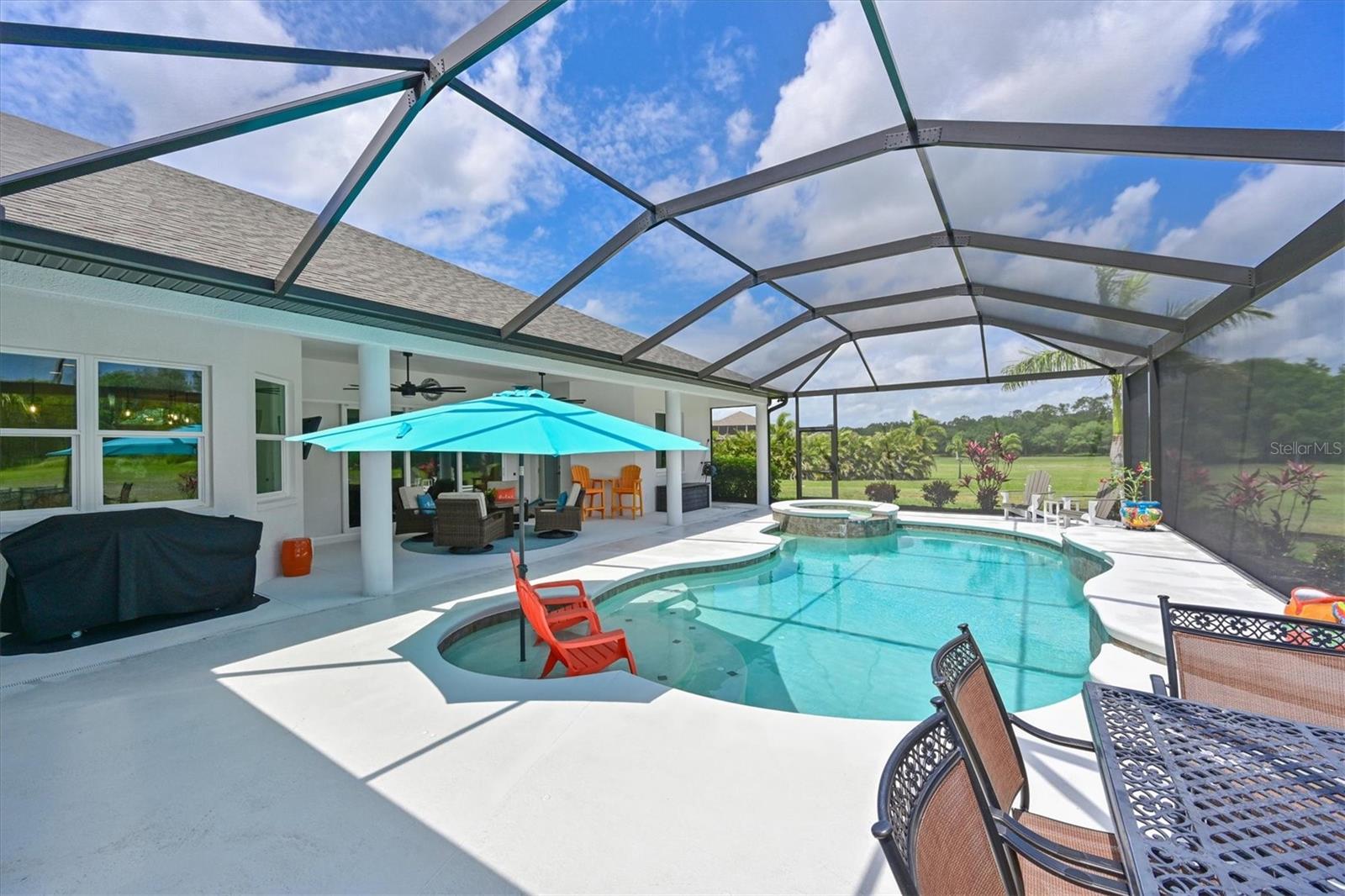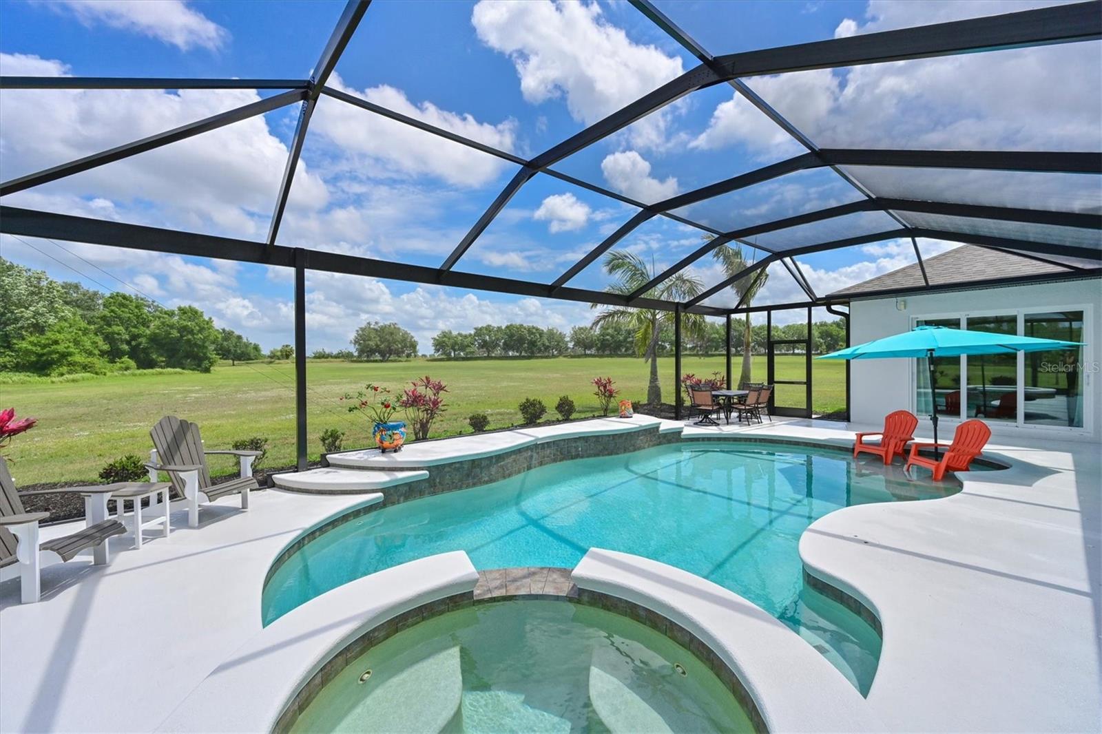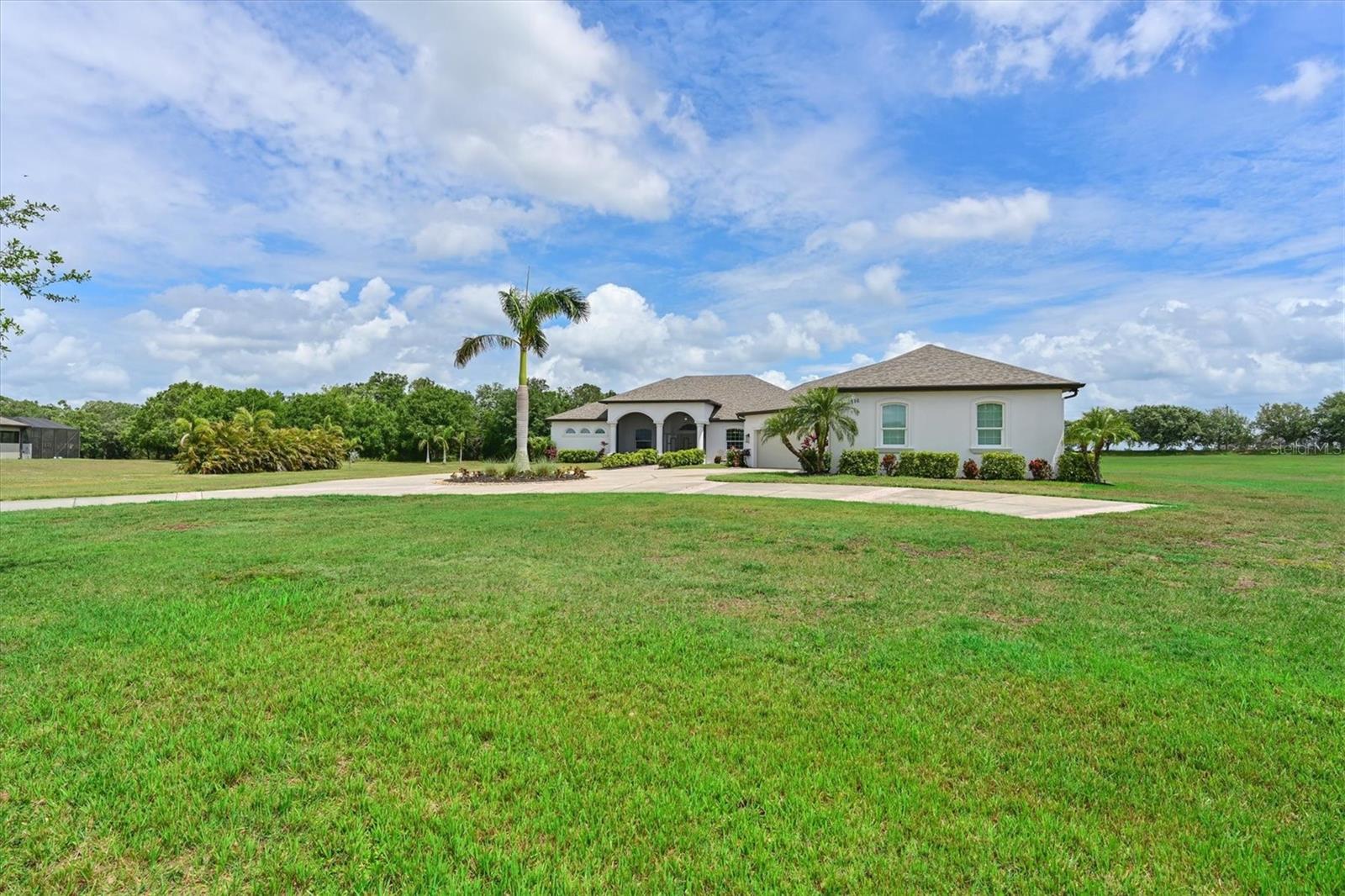 Welcome to your dream home in the prestigious Foxbrook Community of Parrish! Nestled on over 5 acres of serene, picturesque land, this stunning estate offers the perfect blend of luxury, comfort, and privacy. With 3,472 square feet of elegant living space, this home is a true retreat, thoughtfully designed for relaxation and entertaining, featuring a greatroom, 4 spacious bedrooms, 4 beautifully appointed bathrooms, a dedicated office, and a versatile bonus room. The heart of the home is made for both gathering and retreat. The greatroom living space flows seamlessly with the open kitchen, and the 8ft. pocketing glass doors create a wide uninterrupted opening, bridging the indoor and outdoor spaces! This design offers abundant natural light and tranquil views of the pool and lanai. Culinary enthusiasts will appreciate this kitchen which was designed with Holidays in mind! The large island with multiple ovens for creating all your family recipes and multiple prep surfaces make this the perfect place to create and congregate! The upgraded kitchen features an induction range with air fryer capability, Advantium microwave and a Bosch dishwasher, extensive storage and full pantry! The master suite is a private sanctuary, complete with an ensuite bathroom featuring dual vanities, a spa-like oversized shower, and a serene garden soaking tub. The thoughtful split-bedroom floor plan ensures privacy for all, with three distinct bedroom areas, and ensuite baths-- ideal for guests or family members. The caged pool area features a clear view screen enclosure ('24) and a relaxing spa, creating the ultimate space for leisure and entertaining. The expansive 4+ car garage includes a large storage room and has space ideal for a deluxe man cave or workshop setup. This home has been meticulously constructed and updated with comfort and convenience in mind. Thoughtfully chosen energy-efficient upgrades include impact-rated windows and doors that enhance storm protection and reduce energy costs, along with Icynene spray foam insulation, which delivers superior indoor air quality and consistent temperature control throughout the home. Dual HVAC units ensure personalized climate zones and a new Roof ('24). Additional features include: a state-of-the-art water softener and filtration system with Reverse Osmosis drinking water, and a modern hot water recirculating system ('24). Located in the Foxbrook Community, this property is perfect for equestrian enthusiasts, as the community is horse-friendly and offers equestrian use. Enjoy the beauty of nature and the freedom of horseback riding right at your doorstep, making this home not only a luxurious retreat but also a haven for horse lovers. Experience the perfect blend of privacy and comfort in this remarkable community! Don't miss the opportunity to make this luxurious, private retreat your forever home--where functionality, elegance, and lifestyle meet!