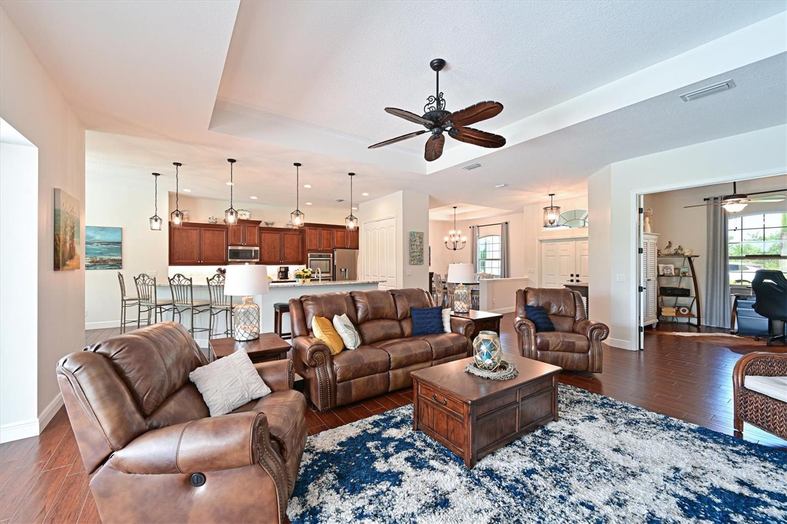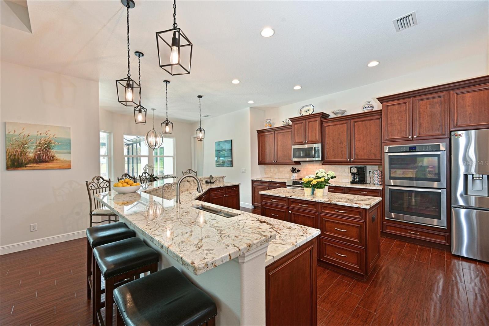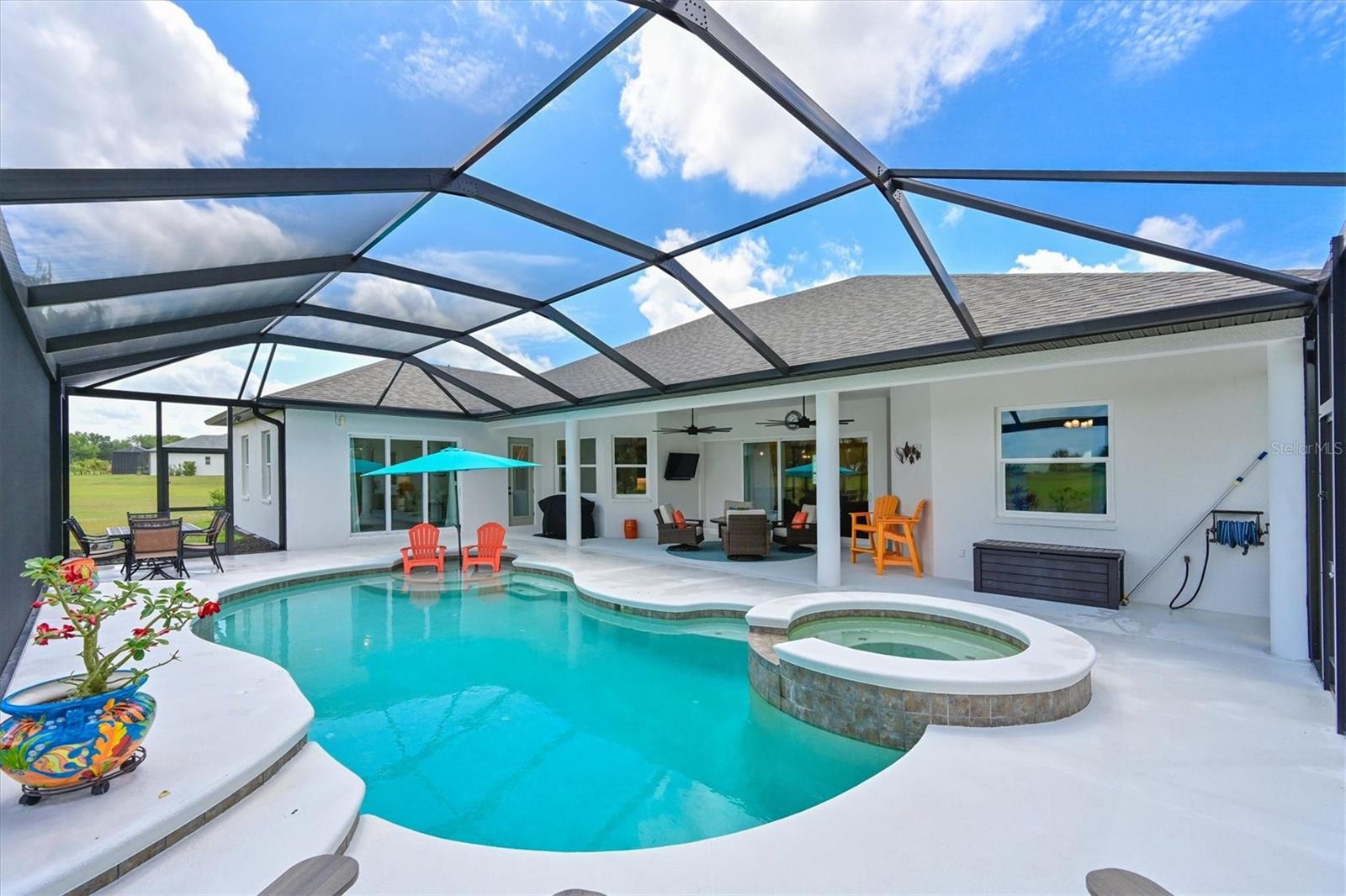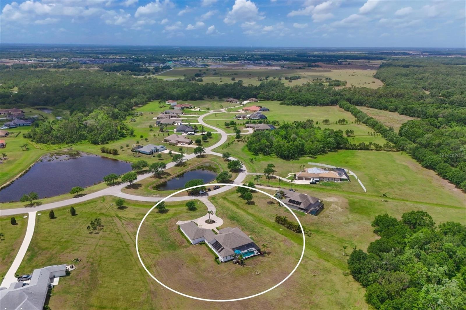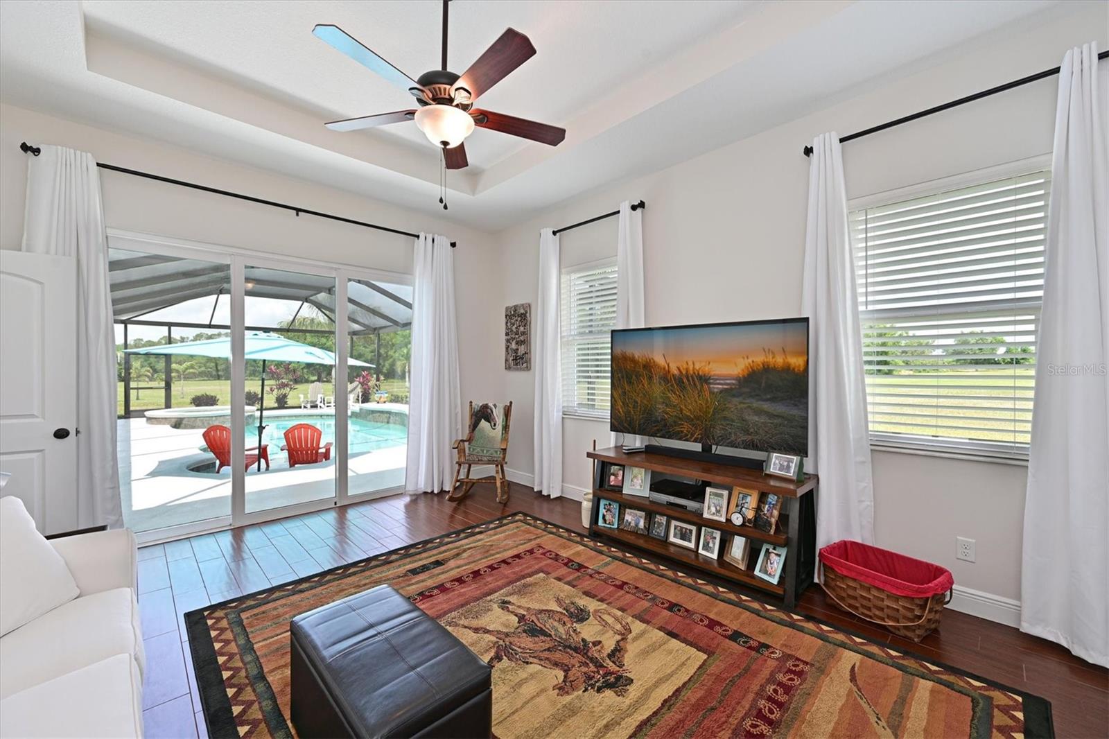 Welcome to your dream home in the prestigious Foxbrook Community of Parrish! Nestled on over 5 acres of serene, picturesque land, this stunning estate offers the perfect blend of luxury, comfort, and privacy. With 3,472 square feet of elegant living space, this home is a true retreat, thoughtfully designed for relaxation and entertaining, featuring a greatroom, 4 spacious bedrooms, 4 beautifully appointed bathrooms, a dedicated office, and a versatile bonus room. The heart of the home is made for both gathering and retreat. The greatroom living space flows seamlessly with the open kitchen, and the 8ft. pocketing glass doors create a wide uninterrupted opening, bridging the indoor and outdoor spaces! This design offers abundant natural light and tranquil views of the pool and lanai. Culinary enthusiasts will appreciate this kitchen which was designed with Holidays in mind! The large island with multiple ovens for creating all your family recipes and multiple prep surfaces make this the perfect place to create and congregate! The upgraded kitchen features an induction range with air fryer capability, Advantium microwave and a Bosch dishwasher, extensive storage and full pantry! The master suite is a private sanctuary, complete with an ensuite bathroom featuring dual vanities, a spa-like oversized shower, and a serene garden soaking tub. The thoughtful split-bedroom floor plan ensures privacy for all, with three distinct bedroom areas, and ensuite baths-- ideal for guests or family members. The caged pool area features a clear view screen enclosure ('24) and a relaxing spa, creating the ultimate space for leisure and entertaining. The expansive 4+ car garage includes a large storage room and has space ideal for a deluxe man cave or workshop setup. This home has been meticulously constructed and updated with comfort and convenience in mind. Thoughtfully chosen energy-efficient upgrades include impact-rated windows and doors that enhance storm protection and reduce energy costs, along with Icynene spray foam insulation, which delivers superior indoor air quality and consistent temperature control throughout the home. Dual HVAC units ensure personalized climate zones and a new Roof ('24). Additional features include: a state-of-the-art water softener and filtration system with Reverse Osmosis drinking water, and a modern hot water recirculating system ('24). Located in the Foxbrook Community, this property is perfect for equestrian enthusiasts, as the community is horse-friendly and offers equestrian use. Enjoy the beauty of nature and the freedom of horseback riding right at your doorstep, making this home not only a luxurious retreat but also a haven for horse lovers. Experience the perfect blend of privacy and comfort in this remarkable community! Don't miss the opportunity to make this luxurious, private retreat your forever home--where functionality, elegance, and lifestyle meet!