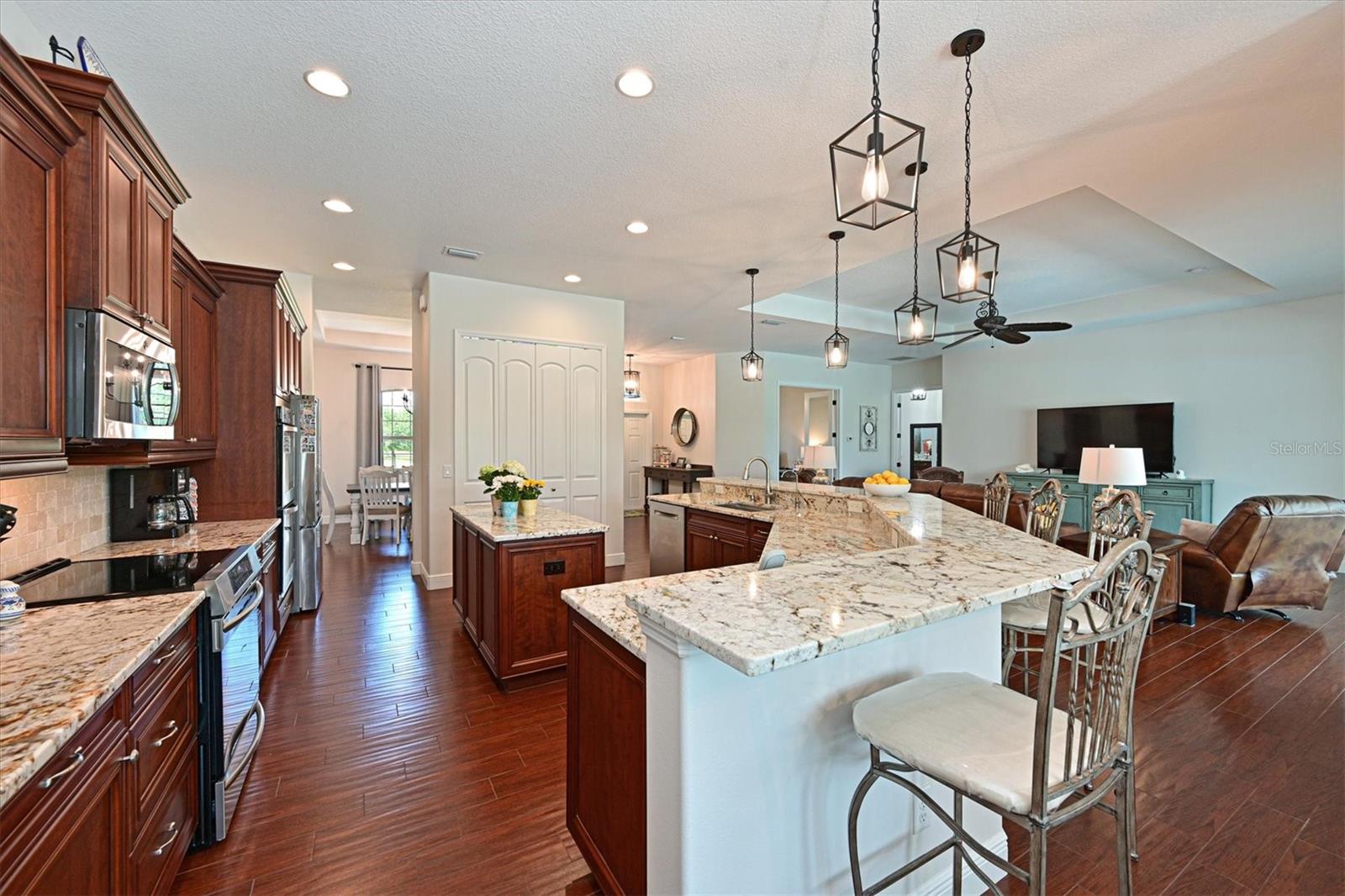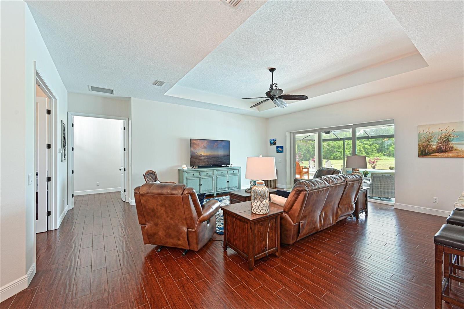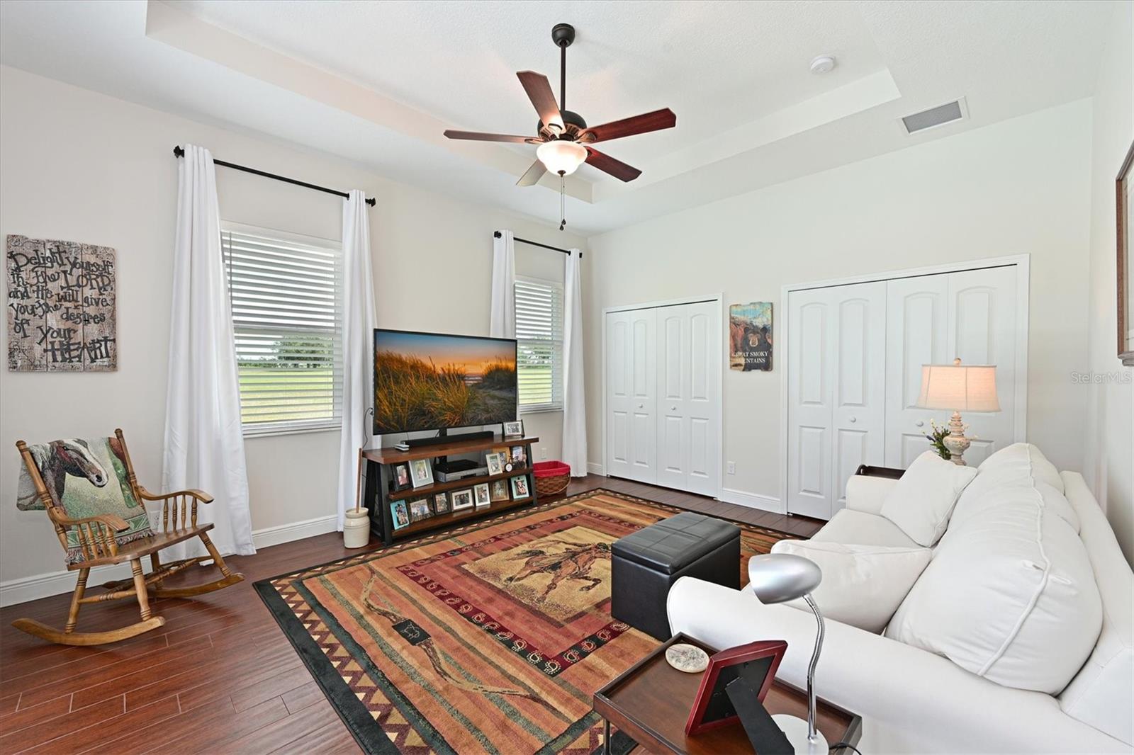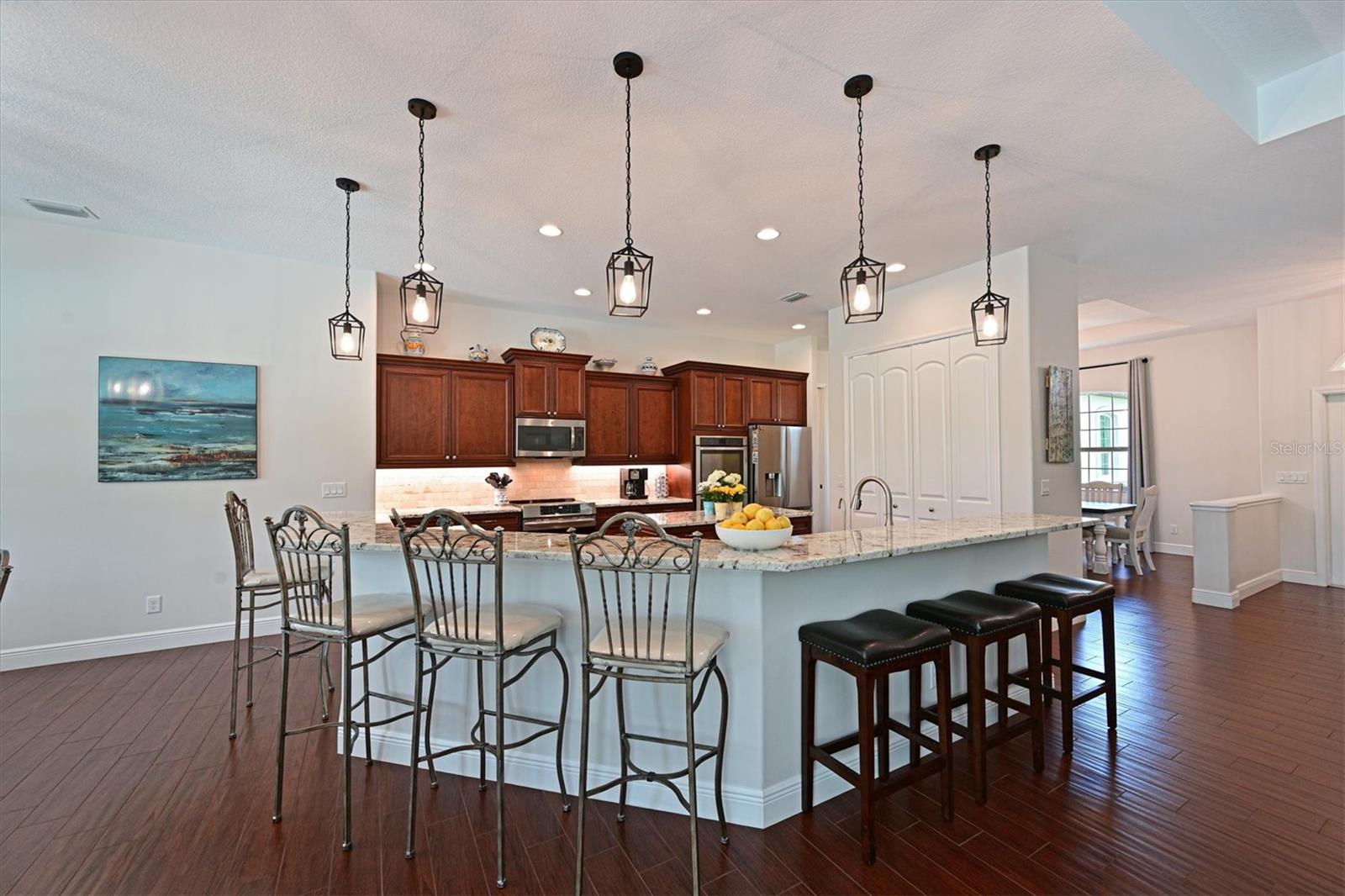Welcome to your dream home in the prestigious Foxbrook Community of Parrish! Nestled on over 5 acres of serene, picturesque land, this stunning estate offers the perfect blend of luxury, comfort, and privacy. With 3,472 square feet of elegant living space, this home is a true retreat, thoughtfully designed for relaxation and entertaining, featuring a greatroom, 4 spacious bedrooms, 4 beautifully appointed bathrooms, a dedicated office, and a versatile bonus room. The heart of the home is made for both gathering and retreat. The greatroom living space flows seamlessly with the open kitchen, and the 8ft. pocketing glass doors create a wide uninterrupted opening, bridging the indoor and outdoor spaces! This design offers abundant natural light and tranquil views of the pool and lanai. Culinary enthusiasts will appreciate this kitchen which was designed with Holidays in mind! The large island with multiple ovens for creating all your family recipes and multiple prep surfaces make this the perfect place to create and congregate! The upgraded kitchen features an induction range with air fryer capability, Advantium microwave and a Bosch dishwasher, extensive storage and full pantry! The master suite is a private sanctuary, complete with an ensuite bathroom featuring dual vanities, a spa-like oversized shower, and a serene garden soaking tub. The thoughtful split-bedroom floor plan ensures privacy for all, with three distinct bedroom areas, and ensuite baths-- ideal for guests or family members. The caged pool area features a clear view screen enclosure ('24) and a relaxing spa, creating the ultimate space for leisure and entertaining. The expansive 4+ car garage includes a large storage room and has space ideal for a deluxe man cave or workshop setup. This home has been meticulously constructed and updated with comfort and convenience in mind. Thoughtfully chosen energy-efficient upgrades include impact-rated windows and doors that enhance storm protection and reduce energy costs, along with Icynene spray foam insulation, which delivers superior indoor air quality and consistent temperature control throughout the home. Dual HVAC units ensure personalized climate zones and a new Roof ('24). Additional features include: a state-of-the-art water softener and filtration system with Reverse Osmosis drinking water, and a modern hot water recirculating system ('24). Located in the Foxbrook Community, this property is perfect for equestrian enthusiasts, as the community is horse-friendly and offers equestrian use. Enjoy the beauty of nature and the freedom of horseback riding right at your doorstep, making this home not only a luxurious retreat but also a haven for horse lovers. Experience the perfect blend of privacy and comfort in this remarkable community! Don't miss the opportunity to make this luxurious, private retreat your forever home--where functionality, elegance, and lifestyle meet!