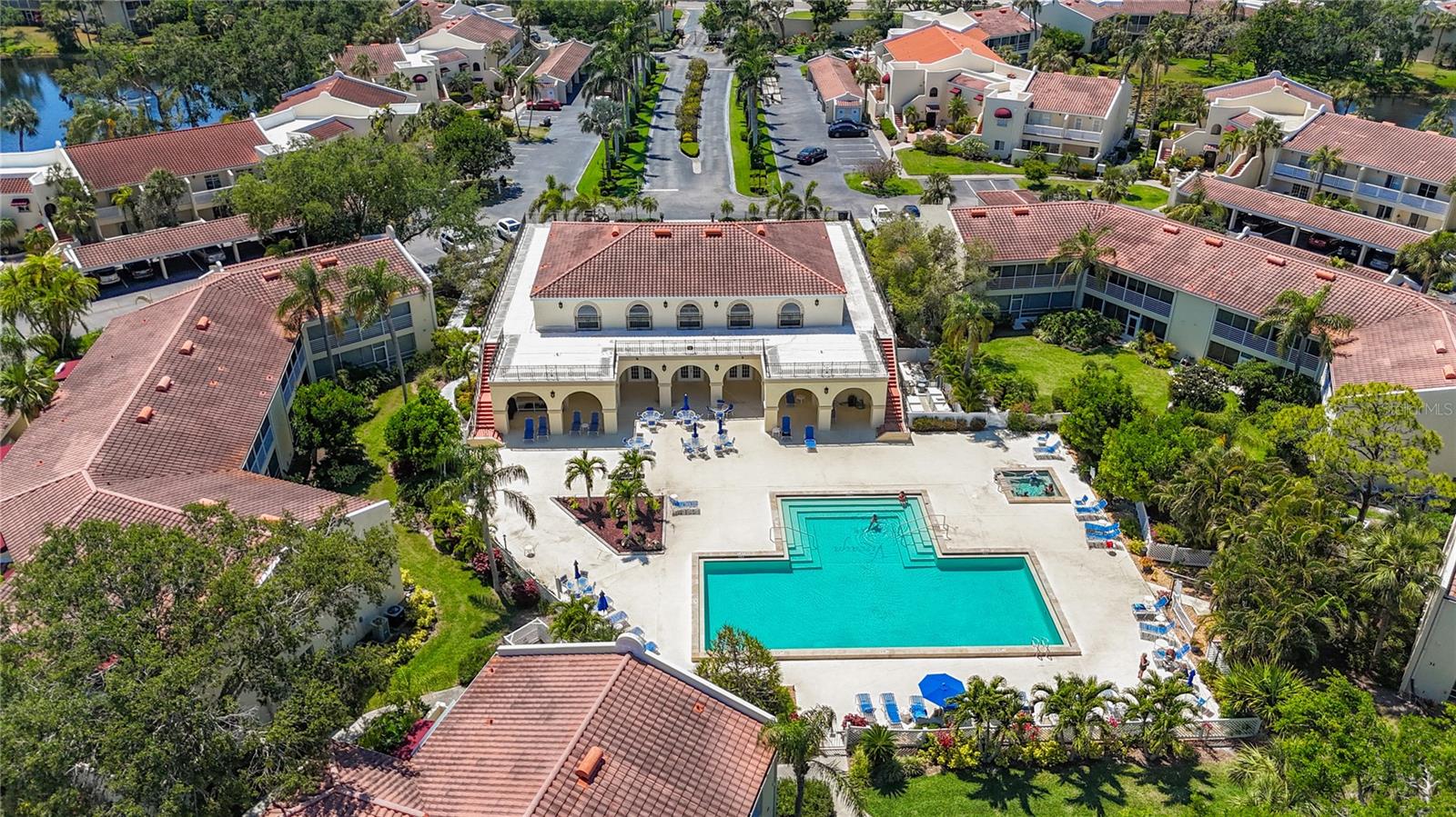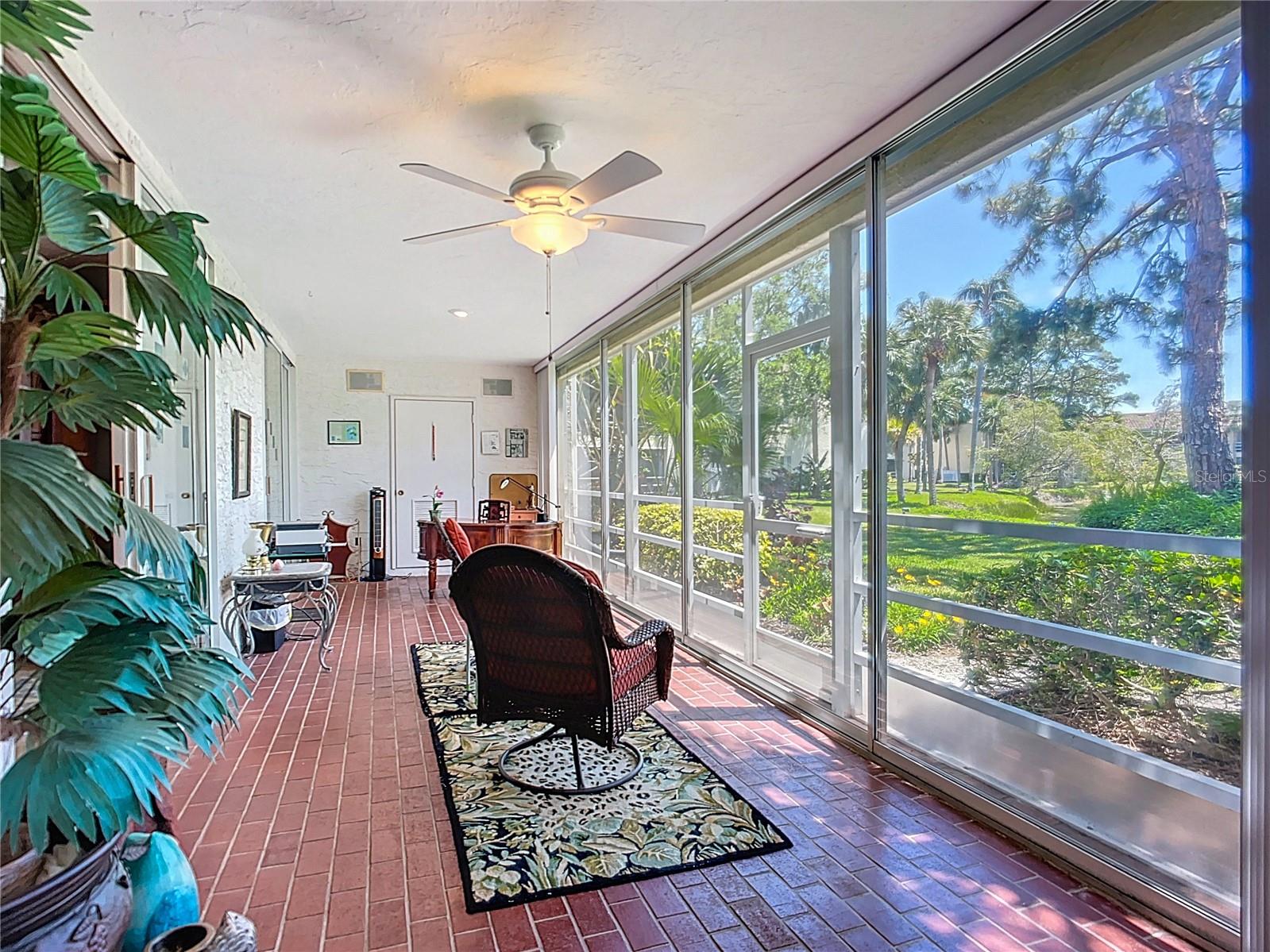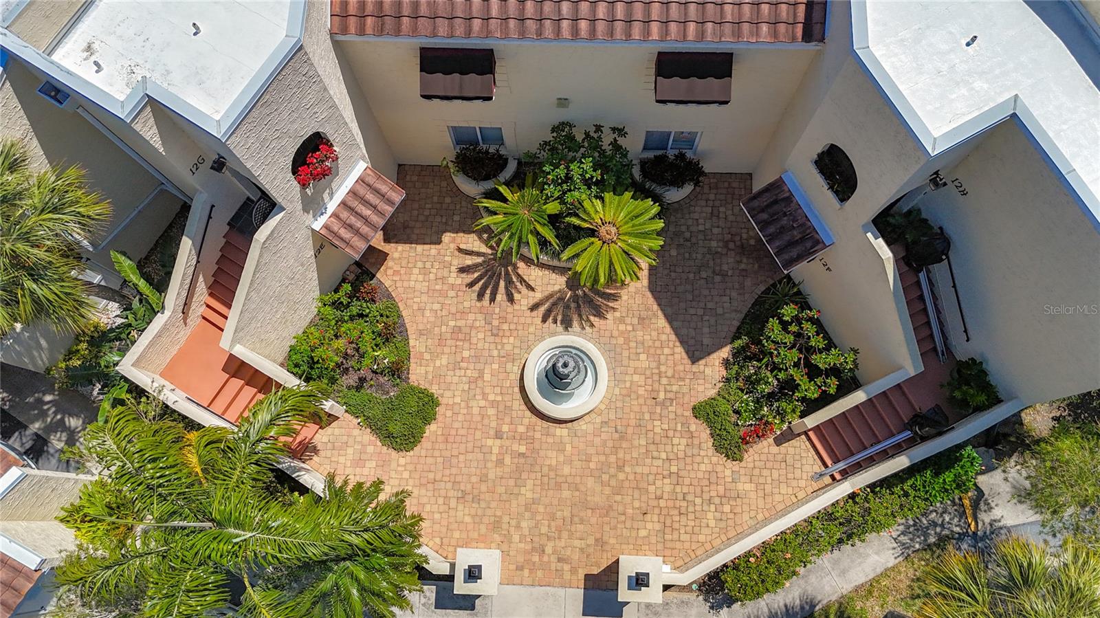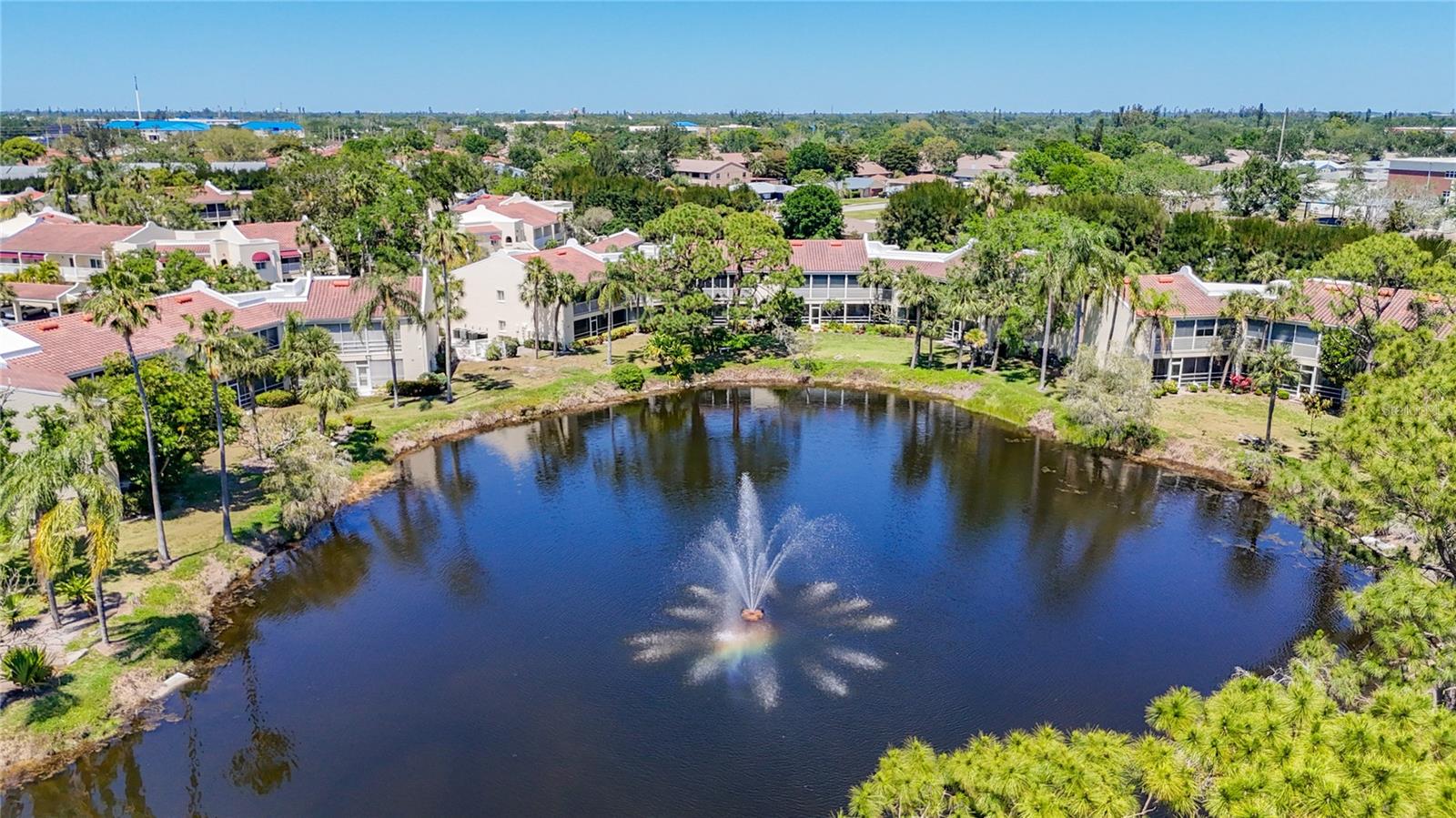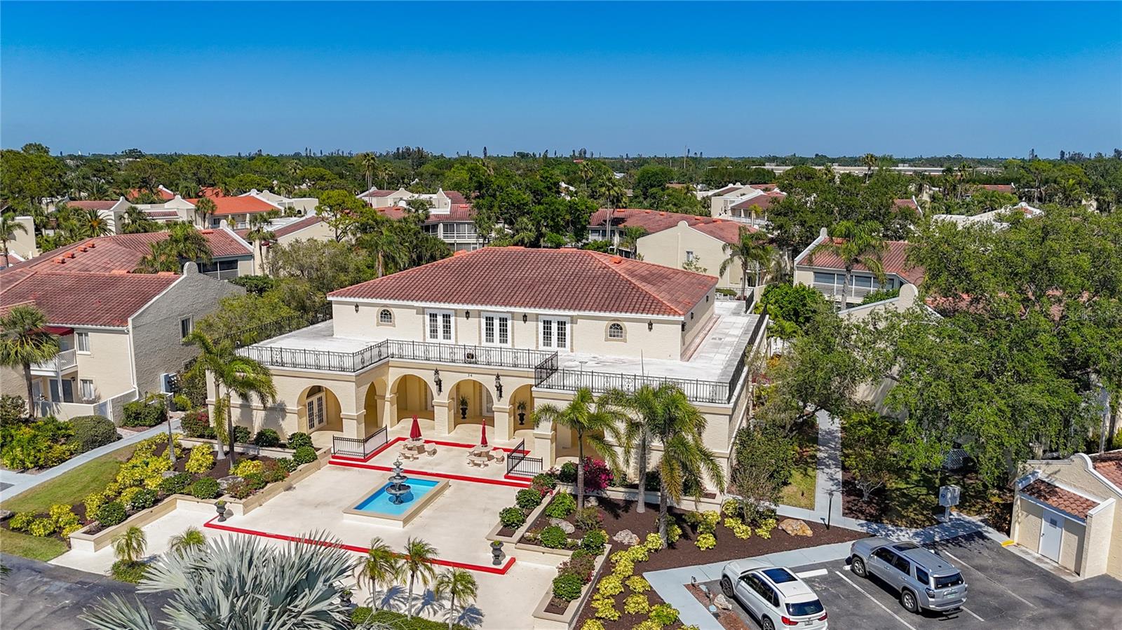 GROUND FLOOR, TURNKEY FURNISHED Spanish Mediterranean Gem with Stunning Courtyard Entry and POND VIEWS. Enter through a grand shared courtyard adorned with a water fountain, terra cotta brick pavers, and lush tropical landscaping--shared with only three other residences for an impressive sense of privacy and community. Experience the security and peace of mind that comes with living in a gated community--plus the added protection of a wrought iron gate before you even reach your front door. Double entry doors open to a spacious interior featuring LUXURY VINYL PLANK flooring and elegant CROWN MOLDING THROUGHOUT, including all three bathrooms. Newly painted, the condo also boasts a newer water heater and appliances replaced within the past five years. Enjoy peaceful pond and fountain views from nearly every angle, especially from the expansive glass and screen-enclosed Florida room. This versatile space is perfect for entertaining with a built-in grill, wine cooler, and sink. Sliding doors from the living room, dining area, and primary bedroom seamlessly connect the indoor and outdoor living spaces. The kitchen is a chef's delight with an island counter, stone tile backsplash, barstool seating and a pass-through to the breakfast bar and dining area. The adjacent dining room features stylish white built-in cabinetry for extra storage. Enjoy abundant opportunities to embrace the outdoors with the primary suite bathrooms opening to a screened, brick-paved lanai and courtyard on one side, and sliding door access to the Florida room on the other. Inside, you'll find two spacious walk-in closets and the convenience of two separate bathrooms--one featuring a charming claw-foot tub and vanity, the other with a walk-in shower. The guest bedroom also enjoys private outdoor access through sliding glass doors that lead to its own covered lanai and courtyard. A nearby guest bathroom includes a shower for added comfort. The Florida room also includes a washer and dryer tucked away in a closet with a utility sink and added shelving. Vizcaya is an active and beautifully maintained gated community featuring an Olympic-sized heated pool and spa, a clubhouse, kitchen, card room, and meeting areas. On-site management adds to the convenience. Ideally situated near IMG Academy, Sarasota-Bradenton International Airport, State College of Florida, shopping, restaurants, Bradenton Beach, and Anna Maria Island. Being Sold As-Is. Furnishings can be removed if Buyer prefers.