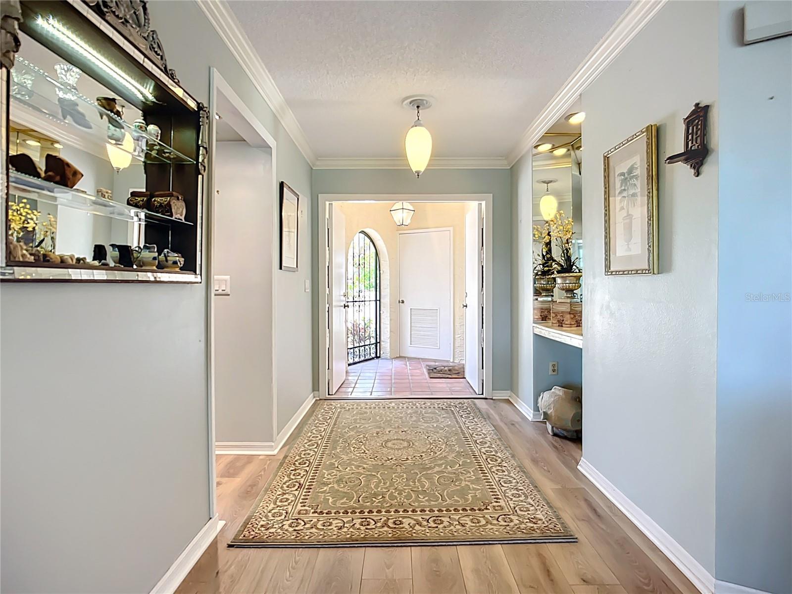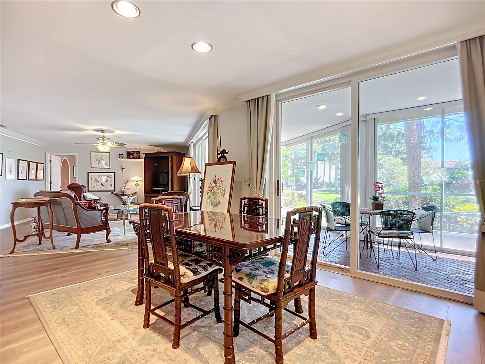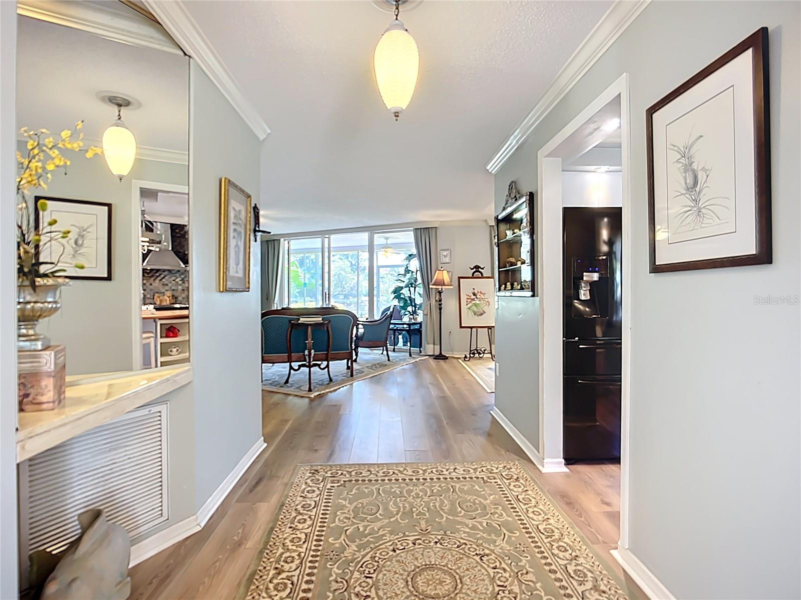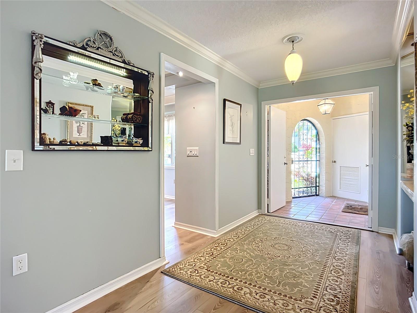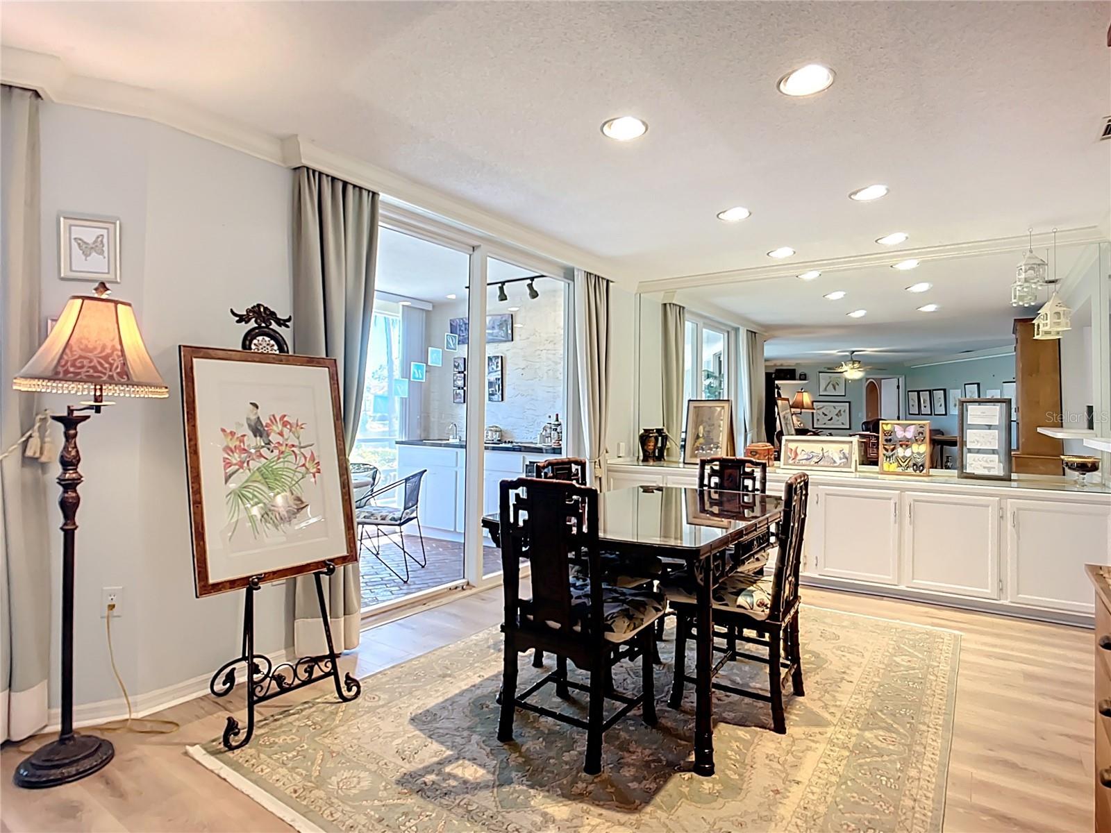 GROUND FLOOR, TURNKEY FURNISHED Spanish Mediterranean Gem with Stunning Courtyard Entry and POND VIEWS. Enter through a grand shared courtyard adorned with a water fountain, terra cotta brick pavers, and lush tropical landscaping--shared with only three other residences for an impressive sense of privacy and community. Experience the security and peace of mind that comes with living in a gated community--plus the added protection of a wrought iron gate before you even reach your front door. Double entry doors open to a spacious interior featuring LUXURY VINYL PLANK flooring and elegant CROWN MOLDING THROUGHOUT, including all three bathrooms. Newly painted, the condo also boasts a newer water heater and appliances replaced within the past five years. Enjoy peaceful pond and fountain views from nearly every angle, especially from the expansive glass and screen-enclosed Florida room. This versatile space is perfect for entertaining with a built-in grill, wine cooler, and sink. Sliding doors from the living room, dining area, and primary bedroom seamlessly connect the indoor and outdoor living spaces. The kitchen is a chef's delight with an island counter, stone tile backsplash, barstool seating and a pass-through to the breakfast bar and dining area. The adjacent dining room features stylish white built-in cabinetry for extra storage. Enjoy abundant opportunities to embrace the outdoors with the primary suite bathrooms opening to a screened, brick-paved lanai and courtyard on one side, and sliding door access to the Florida room on the other. Inside, you'll find two spacious walk-in closets and the convenience of two separate bathrooms--one featuring a charming claw-foot tub and vanity, the other with a walk-in shower. The guest bedroom also enjoys private outdoor access through sliding glass doors that lead to its own covered lanai and courtyard. A nearby guest bathroom includes a shower for added comfort. The Florida room also includes a washer and dryer tucked away in a closet with a utility sink and added shelving. Vizcaya is an active and beautifully maintained gated community featuring an Olympic-sized heated pool and spa, a clubhouse, kitchen, card room, and meeting areas. On-site management adds to the convenience. Ideally situated near IMG Academy, Sarasota-Bradenton International Airport, State College of Florida, shopping, restaurants, Bradenton Beach, and Anna Maria Island. Being Sold As-Is. Furnishings can be removed if Buyer prefers.