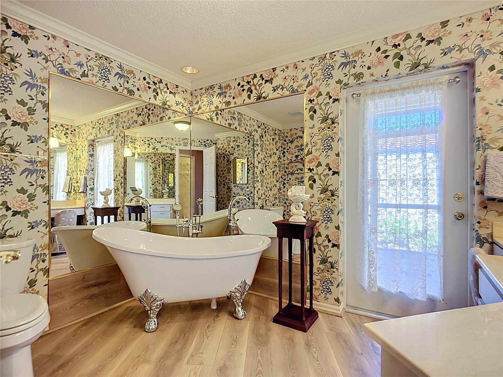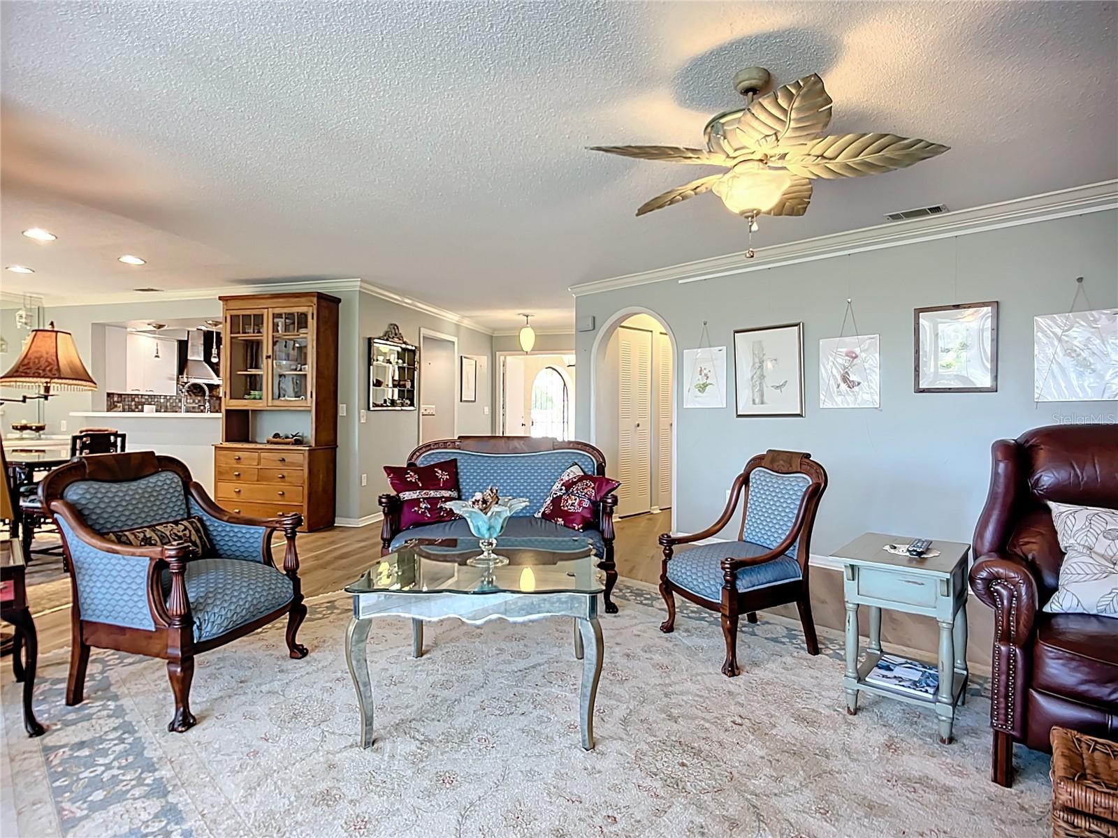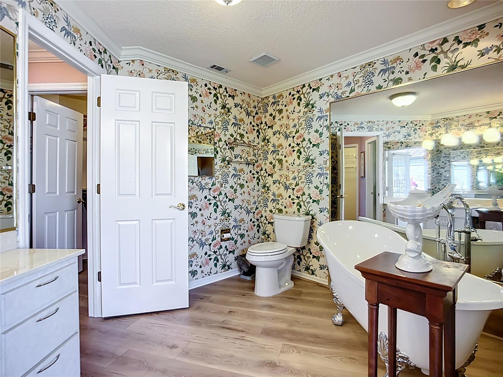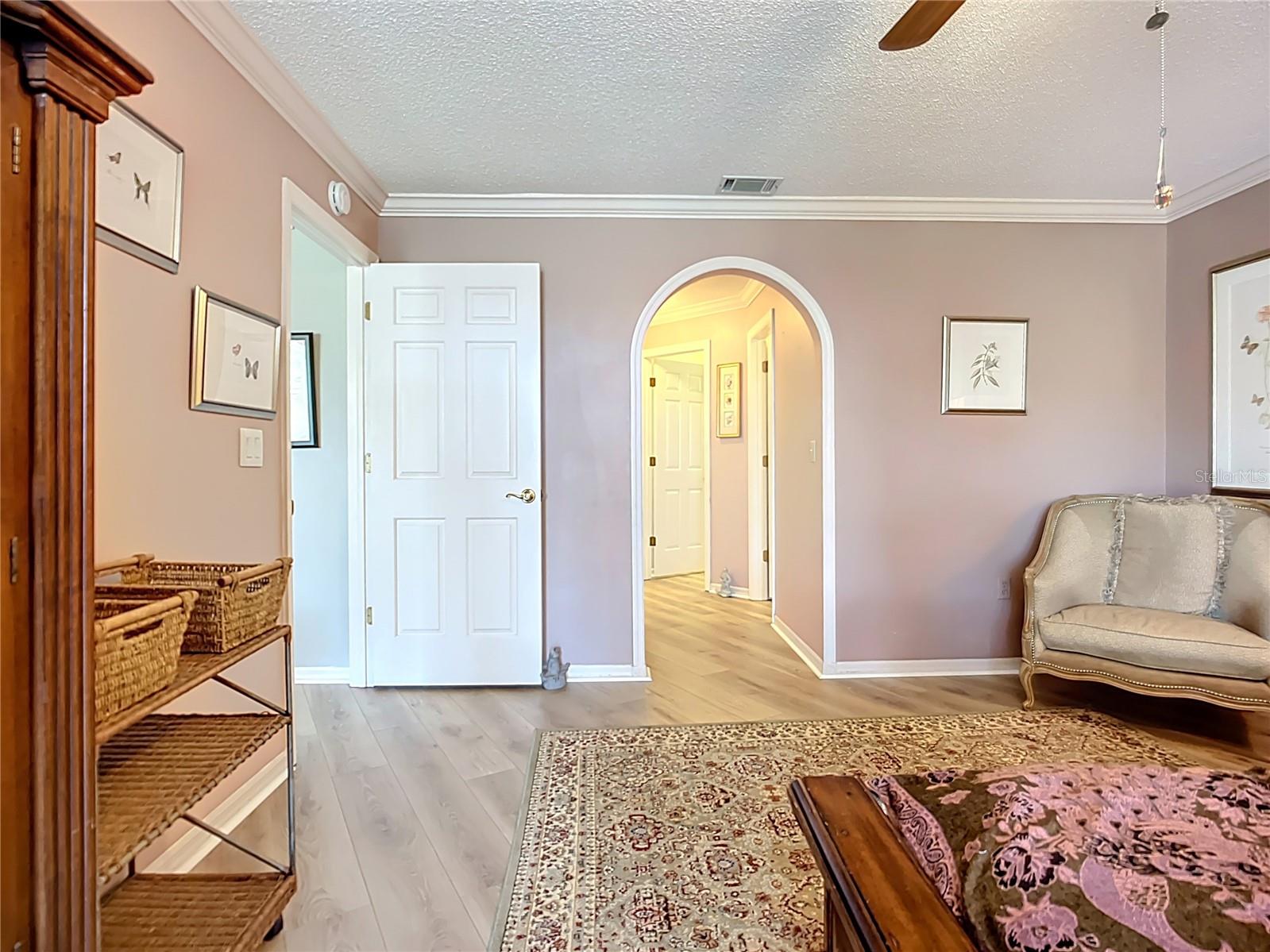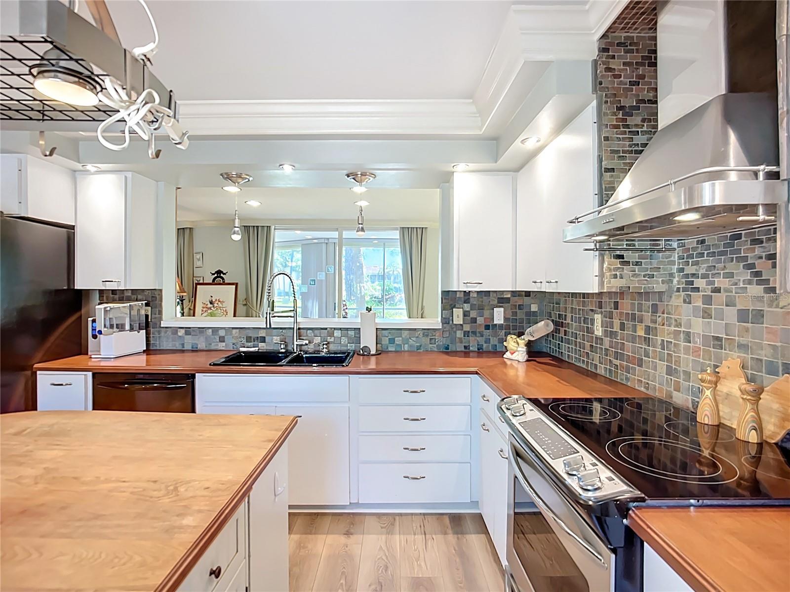 GROUND FLOOR, TURNKEY FURNISHED Spanish Mediterranean Gem with Stunning Courtyard Entry and POND VIEWS. Enter through a grand shared courtyard adorned with a water fountain, terra cotta brick pavers, and lush tropical landscaping--shared with only three other residences for an impressive sense of privacy and community. Experience the security and peace of mind that comes with living in a gated community--plus the added protection of a wrought iron gate before you even reach your front door. Double entry doors open to a spacious interior featuring LUXURY VINYL PLANK flooring and elegant CROWN MOLDING THROUGHOUT, including all three bathrooms. Newly painted, the condo also boasts a newer water heater and appliances replaced within the past five years. Enjoy peaceful pond and fountain views from nearly every angle, especially from the expansive glass and screen-enclosed Florida room. This versatile space is perfect for entertaining with a built-in grill, wine cooler, and sink. Sliding doors from the living room, dining area, and primary bedroom seamlessly connect the indoor and outdoor living spaces. The kitchen is a chef's delight with an island counter, stone tile backsplash, barstool seating and a pass-through to the breakfast bar and dining area. The adjacent dining room features stylish white built-in cabinetry for extra storage. Enjoy abundant opportunities to embrace the outdoors with the primary suite bathrooms opening to a screened, brick-paved lanai and courtyard on one side, and sliding door access to the Florida room on the other. Inside, you'll find two spacious walk-in closets and the convenience of two separate bathrooms--one featuring a charming claw-foot tub and vanity, the other with a walk-in shower. The guest bedroom also enjoys private outdoor access through sliding glass doors that lead to its own covered lanai and courtyard. A nearby guest bathroom includes a shower for added comfort. The Florida room also includes a washer and dryer tucked away in a closet with a utility sink and added shelving. Vizcaya is an active and beautifully maintained gated community featuring an Olympic-sized heated pool and spa, a clubhouse, kitchen, card room, and meeting areas. On-site management adds to the convenience. Ideally situated near IMG Academy, Sarasota-Bradenton International Airport, State College of Florida, shopping, restaurants, Bradenton Beach, and Anna Maria Island. Being Sold As-Is. Furnishings can be removed if Buyer prefers.