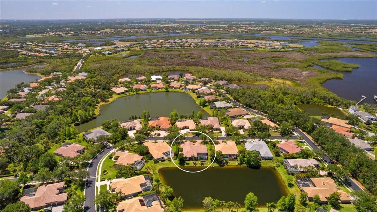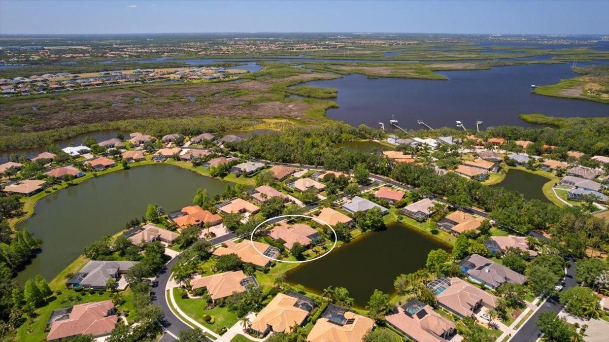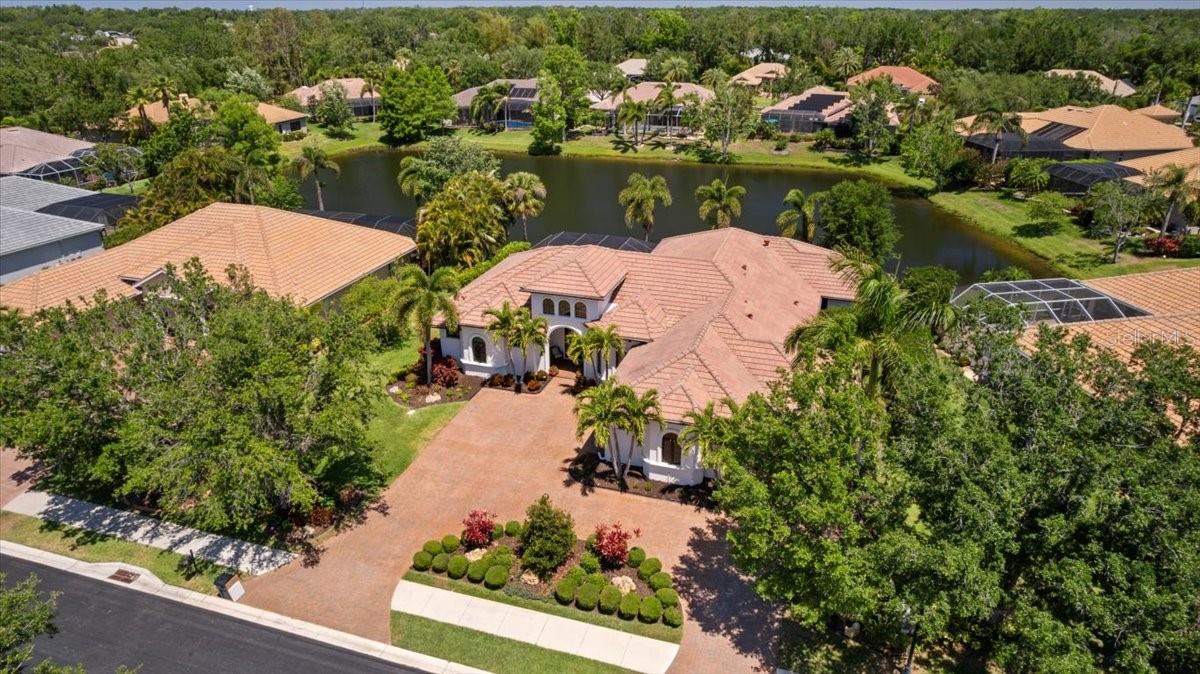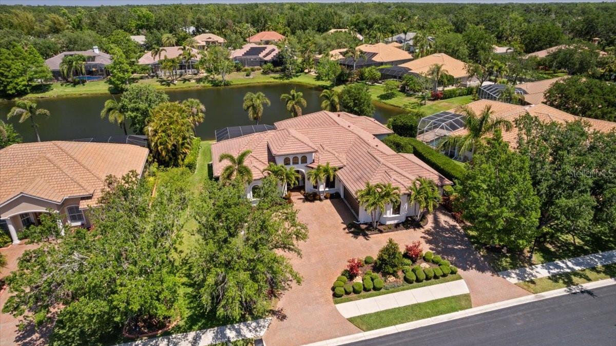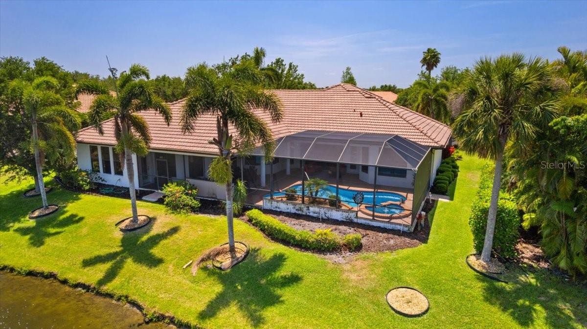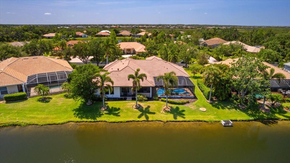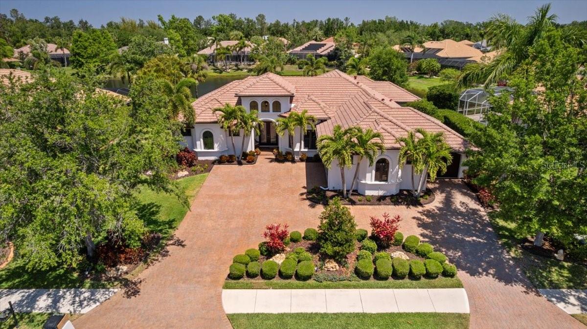 Tucked away on a private interior street off the main thoroughfare, sets this house up to be your private enclave! Located near THE ISLANDS ON THE MANATEE and mirroring the style and feel of the Island's Spanish Colonial homes, this home provides all the feels without the pricetag, flood zone and extra HOA fees! As you enter the front door, you will be drawn to the EXPANSIVE LAKE VIEW that is maximized throughout the home. The large lanai encompasses two covered entertaining areas, your competely resurfaced and retiled pool & spa (2025), and waterside summer kitchen. This 3,396 sq ft, FOUR BEDROOM (all with walk-in closets), FOUR BATHROOM floorplan blends function and livability with just the right mix of casual and formal spaces. The kitchen and family room areas are highlighted by the panoramic views of the pool, spa and lake providing the perfect casual entertaining ambiance. The kitchen features all new stainless steel appliances with double ovens, induction cooktop and walk-in pantry. The primary bedroom is huge and features a large tray ceiling with ambiant lighting, two walk-in closets, a gorgeous ensuite bath with spa tub, dual sinks and private toilet room with a bidet. The right side of the house contains two bedrooms with an adjoining bathroom and a dry bar that serves the dining room and right wing of the home. There is a bonus room with a wet bar (that could easily be turned into a kitchenette with the addition of a microwave), full bath and private bedroom that could serve as a MOTHER-IN-LAW suite located just beyond the family room. The THREE-CAR garage is oversized with over 900 sq ft of space. The exterior of the home is beautifully landscaped, has dusk to dawn lighting and crisp curbing. Notable upgrades include: IMPACT WINDOWS (9 windows) AND A HURRICANE SCREEN PACKAGE on rest of windows, NEW ROOF ($86,000) being installed May 2025), new energy-saving variable-speed pool pump and a 250-gallon in ground propane tank that supplies the pool heater and outdoor grill. RW is an established community with winding, tree-lined streets with tall oaks and mature landscaping. Walkers, bikers and neighbors walking their dogs set the scene for an active and social community. The Club offers golf, tennis, social activities, pickle ball, pool and more. The community can dine at the club without a membership. Various golf memberships available. Fitness pass to all amenities (except golf) available for $100 ind./$150 month family. Boat and RV storage in community. For the nature lovers, there are hiking trails and abundant wildlife. There are two 24-hour manned gates. There is a COMMUNITY BOAT RAMP that is open to the entire community and provides direct access to the Manatee River. RW is PERFECTLY LOCATED! Strategically positioned between St. Pete and Sarasota provides easy access to 2 airports (45 min.) and several hospitals to the north and south. The newly constructed Ft Hammer Park located on the beautiful Manatee River is just minutes south of the front gate and features a boat ramp, fishing pier plus picnic pavilion. Lakewood Ranch and Sarasota are near-by where fine dining and shopping are within easy reach. The very popular Ellenton Outlet Mall offers designer brands at discount prices and is only 10 min away. A new shopping complex is open offering Lowes, HomeGoods, and nail spa well as several other stores and restaurants. No trucks in driveway overnight in RW. SF to be verified by Buyer/Agents. Fireplace is decorative.