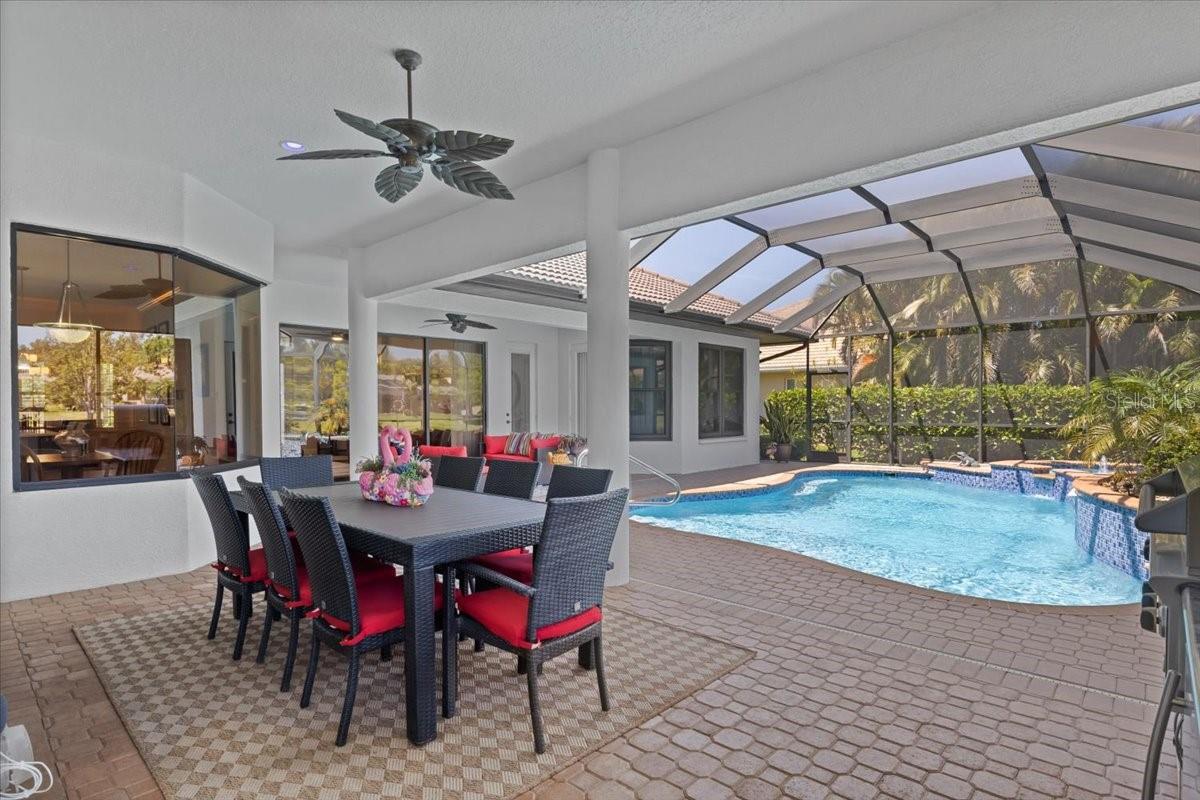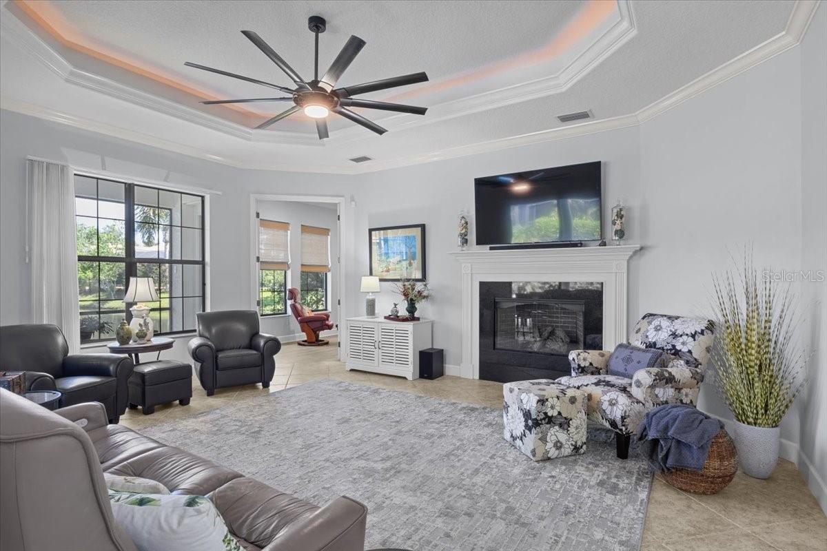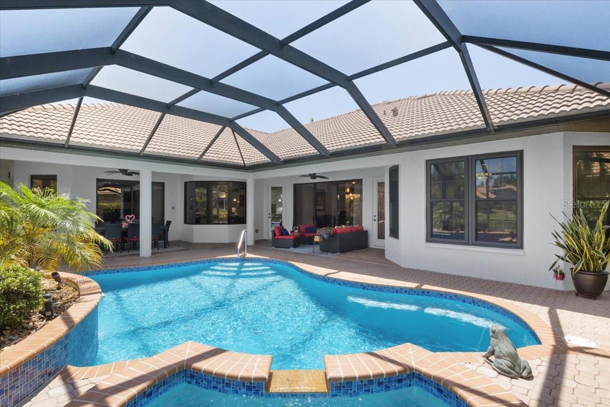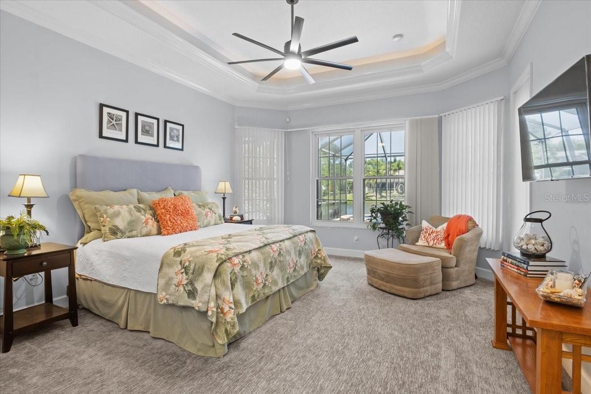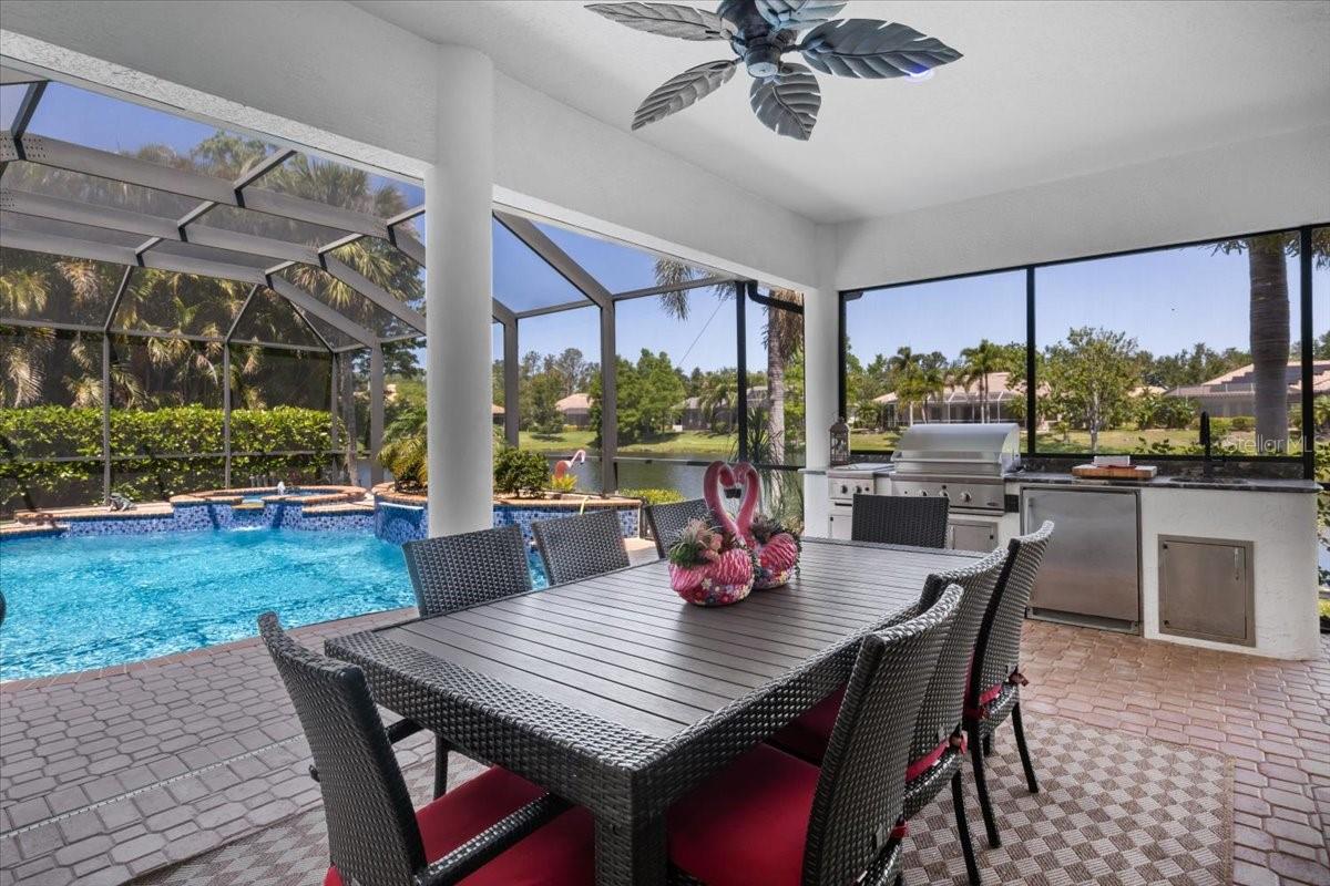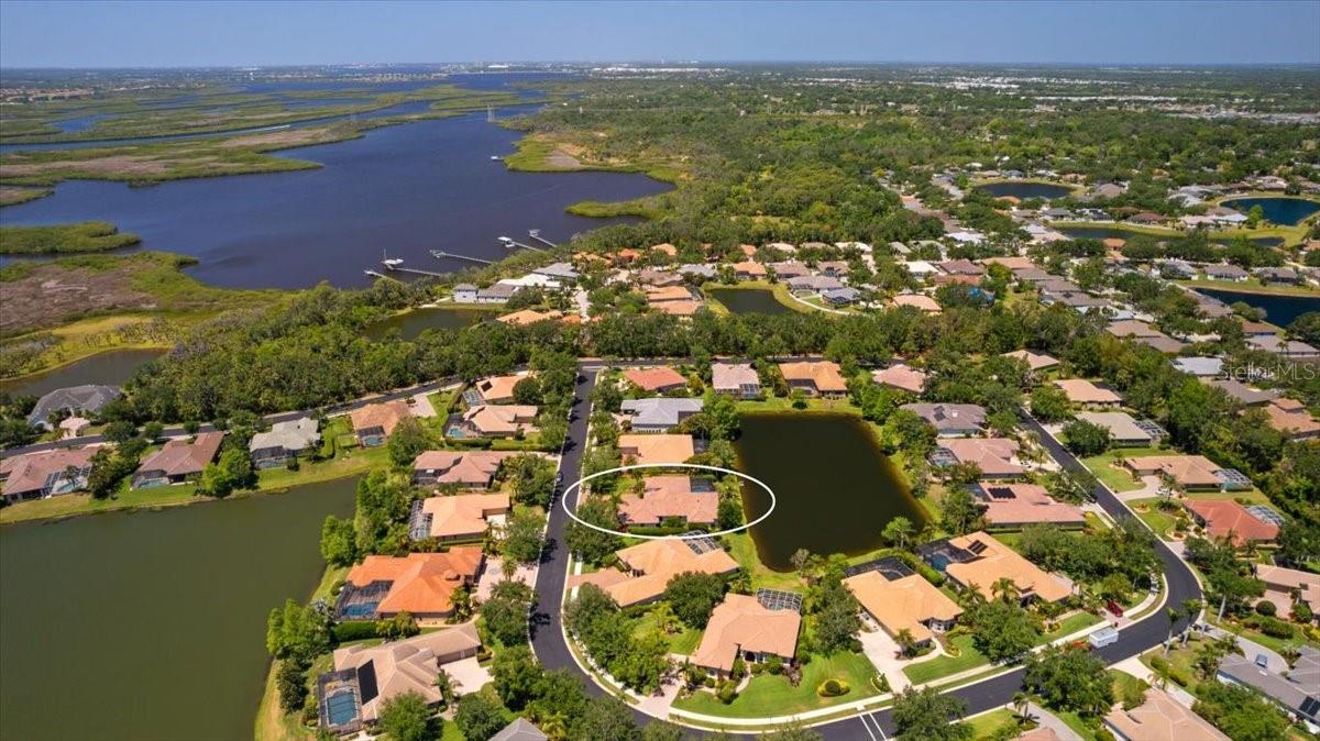 Tucked away on a private interior street off the main thoroughfare, sets this house up to be your private enclave! Located near THE ISLANDS ON THE MANATEE and mirroring the style and feel of the Island's Spanish Colonial homes, this home provides all the feels without the pricetag, flood zone and extra HOA fees! As you enter the front door, you will be drawn to the EXPANSIVE LAKE VIEW that is maximized throughout the home. The large lanai encompasses two covered entertaining areas, your competely resurfaced and retiled pool & spa (2025), and waterside summer kitchen. This 3,396 sq ft, FOUR BEDROOM (all with walk-in closets), FOUR BATHROOM floorplan blends function and livability with just the right mix of casual and formal spaces. The kitchen and family room areas are highlighted by the panoramic views of the pool, spa and lake providing the perfect casual entertaining ambiance. The kitchen features all new stainless steel appliances with double ovens, induction cooktop and walk-in pantry. The primary bedroom is huge and features a large tray ceiling with ambiant lighting, two walk-in closets, a gorgeous ensuite bath with spa tub, dual sinks and private toilet room with a bidet. The right side of the house contains two bedrooms with an adjoining bathroom and a dry bar that serves the dining room and right wing of the home. There is a bonus room with a wet bar (that could easily be turned into a kitchenette with the addition of a microwave), full bath and private bedroom that could serve as a MOTHER-IN-LAW suite located just beyond the family room. The THREE-CAR garage is oversized with over 900 sq ft of space. The exterior of the home is beautifully landscaped, has dusk to dawn lighting and crisp curbing. Notable upgrades include: IMPACT WINDOWS (9 windows) AND A HURRICANE SCREEN PACKAGE on rest of windows, NEW ROOF ($86,000) being installed May 2025), new energy-saving variable-speed pool pump and a 250-gallon in ground propane tank that supplies the pool heater and outdoor grill. RW is an established community with winding, tree-lined streets with tall oaks and mature landscaping. Walkers, bikers and neighbors walking their dogs set the scene for an active and social community. The Club offers golf, tennis, social activities, pickle ball, pool and more. The community can dine at the club without a membership. Various golf memberships available. Fitness pass to all amenities (except golf) available for $100 ind./$150 month family. Boat and RV storage in community. For the nature lovers, there are hiking trails and abundant wildlife. There are two 24-hour manned gates. There is a COMMUNITY BOAT RAMP that is open to the entire community and provides direct access to the Manatee River. RW is PERFECTLY LOCATED! Strategically positioned between St. Pete and Sarasota provides easy access to 2 airports (45 min.) and several hospitals to the north and south. The newly constructed Ft Hammer Park located on the beautiful Manatee River is just minutes south of the front gate and features a boat ramp, fishing pier plus picnic pavilion. Lakewood Ranch and Sarasota are near-by where fine dining and shopping are within easy reach. The very popular Ellenton Outlet Mall offers designer brands at discount prices and is only 10 min away. A new shopping complex is open offering Lowes, HomeGoods, and nail spa well as several other stores and restaurants. No trucks in driveway overnight in RW. SF to be verified by Buyer/Agents. Fireplace is decorative.