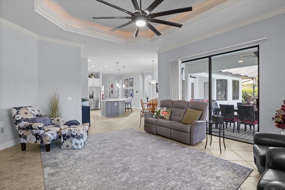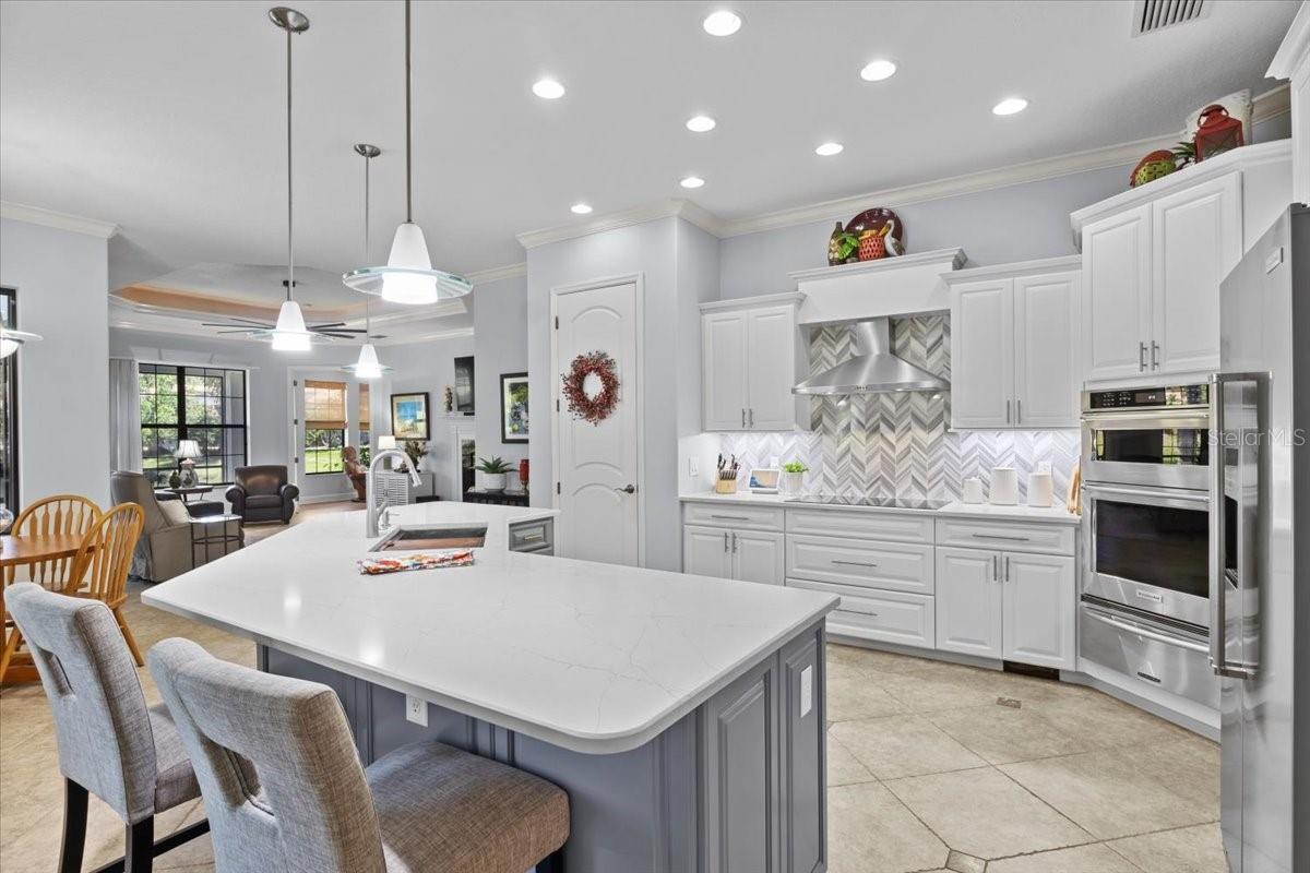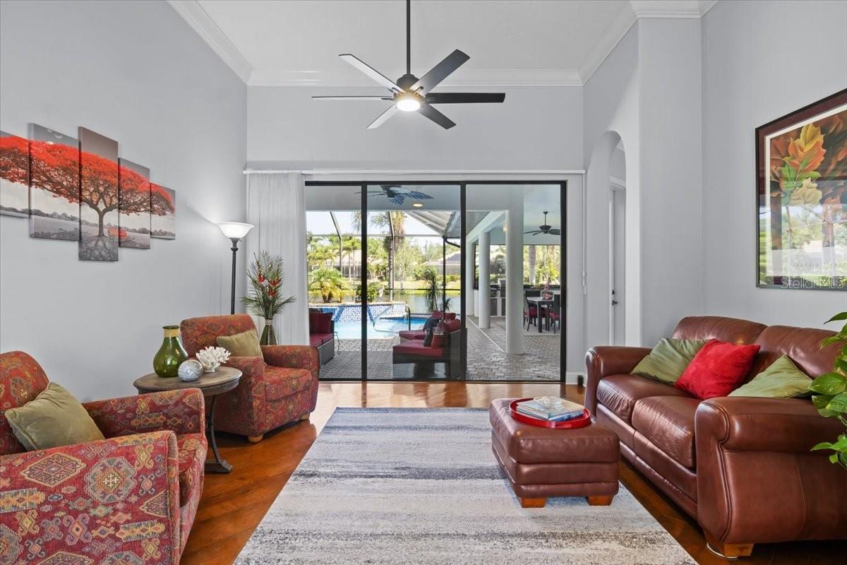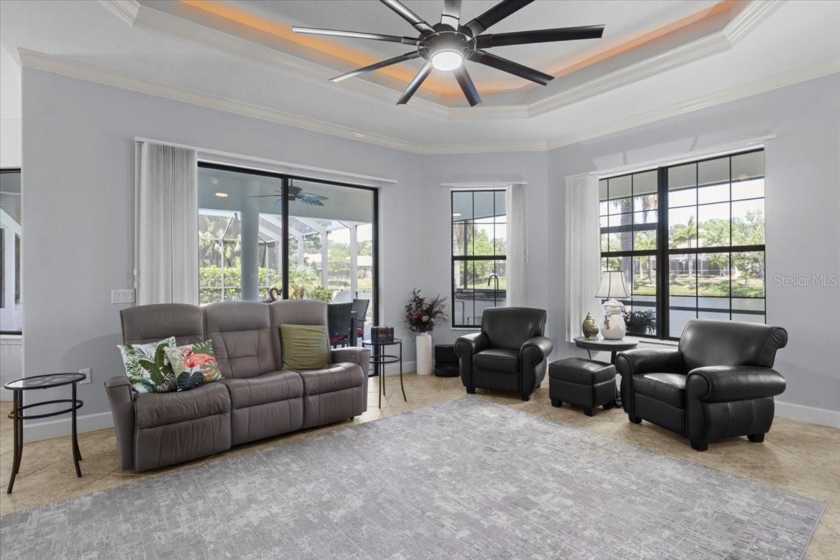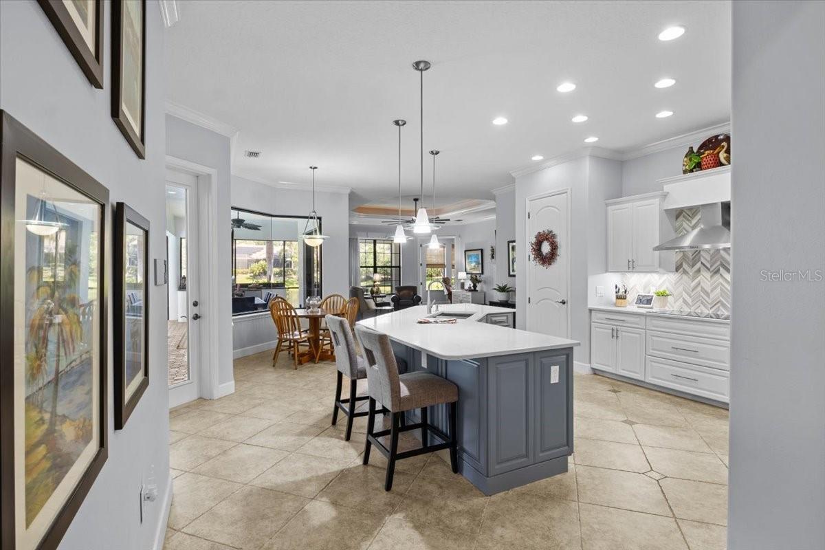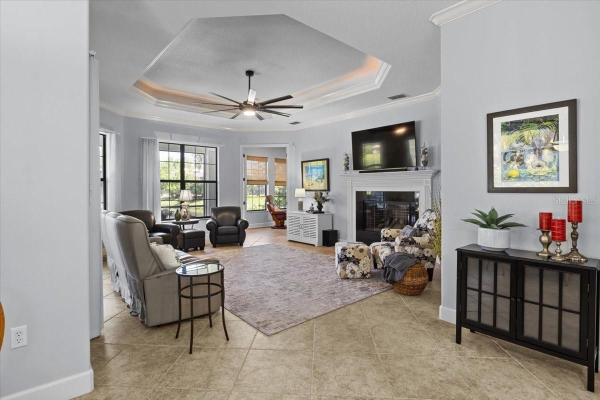 Tucked away on a private interior street off the main thoroughfare, sets this house up to be your private enclave! Located near THE ISLANDS ON THE MANATEE and mirroring the style and feel of the Island's Spanish Colonial homes, this home provides all the feels without the pricetag, flood zone and extra HOA fees! As you enter the front door, you will be drawn to the EXPANSIVE LAKE VIEW that is maximized throughout the home. The large lanai encompasses two covered entertaining areas, your competely resurfaced and retiled pool & spa (2025), and waterside summer kitchen. This 3,396 sq ft, FOUR BEDROOM (all with walk-in closets), FOUR BATHROOM floorplan blends function and livability with just the right mix of casual and formal spaces. The kitchen and family room areas are highlighted by the panoramic views of the pool, spa and lake providing the perfect casual entertaining ambiance. The kitchen features all new stainless steel appliances with double ovens, induction cooktop and walk-in pantry. The primary bedroom is huge and features a large tray ceiling with ambiant lighting, two walk-in closets, a gorgeous ensuite bath with spa tub, dual sinks and private toilet room with a bidet. The right side of the house contains two bedrooms with an adjoining bathroom and a dry bar that serves the dining room and right wing of the home. There is a bonus room with a wet bar (that could easily be turned into a kitchenette with the addition of a microwave), full bath and private bedroom that could serve as a MOTHER-IN-LAW suite located just beyond the family room. The THREE-CAR garage is oversized with over 900 sq ft of space. The exterior of the home is beautifully landscaped, has dusk to dawn lighting and crisp curbing. Notable upgrades include: IMPACT WINDOWS (9 windows) AND A HURRICANE SCREEN PACKAGE on rest of windows, NEW ROOF ($86,000) being installed May 2025), new energy-saving variable-speed pool pump and a 250-gallon in ground propane tank that supplies the pool heater and outdoor grill. RW is an established community with winding, tree-lined streets with tall oaks and mature landscaping. Walkers, bikers and neighbors walking their dogs set the scene for an active and social community. The Club offers golf, tennis, social activities, pickle ball, pool and more. The community can dine at the club without a membership. Various golf memberships available. Fitness pass to all amenities (except golf) available for $100 ind./$150 month family. Boat and RV storage in community. For the nature lovers, there are hiking trails and abundant wildlife. There are two 24-hour manned gates. There is a COMMUNITY BOAT RAMP that is open to the entire community and provides direct access to the Manatee River. RW is PERFECTLY LOCATED! Strategically positioned between St. Pete and Sarasota provides easy access to 2 airports (45 min.) and several hospitals to the north and south. The newly constructed Ft Hammer Park located on the beautiful Manatee River is just minutes south of the front gate and features a boat ramp, fishing pier plus picnic pavilion. Lakewood Ranch and Sarasota are near-by where fine dining and shopping are within easy reach. The very popular Ellenton Outlet Mall offers designer brands at discount prices and is only 10 min away. A new shopping complex is open offering Lowes, HomeGoods, and nail spa well as several other stores and restaurants. No trucks in driveway overnight in RW. SF to be verified by Buyer/Agents. Fireplace is decorative.