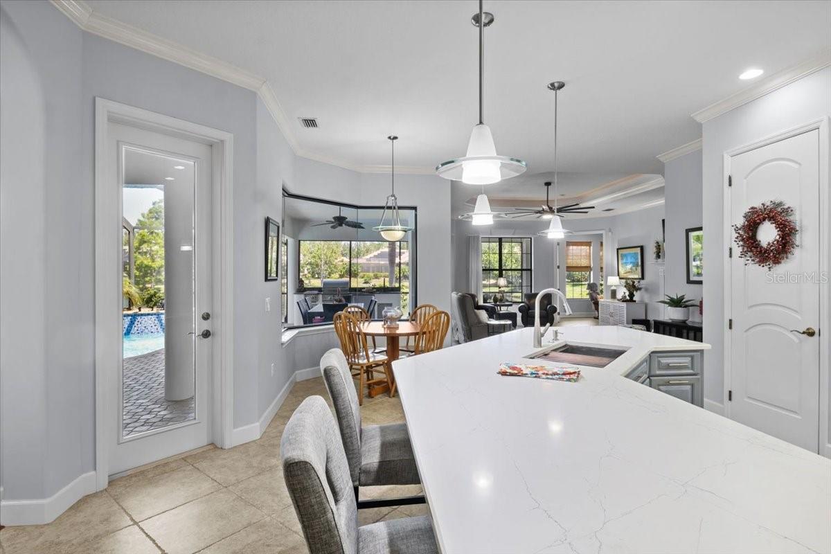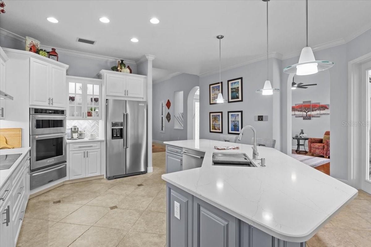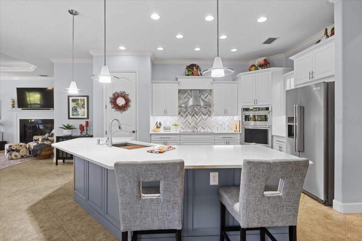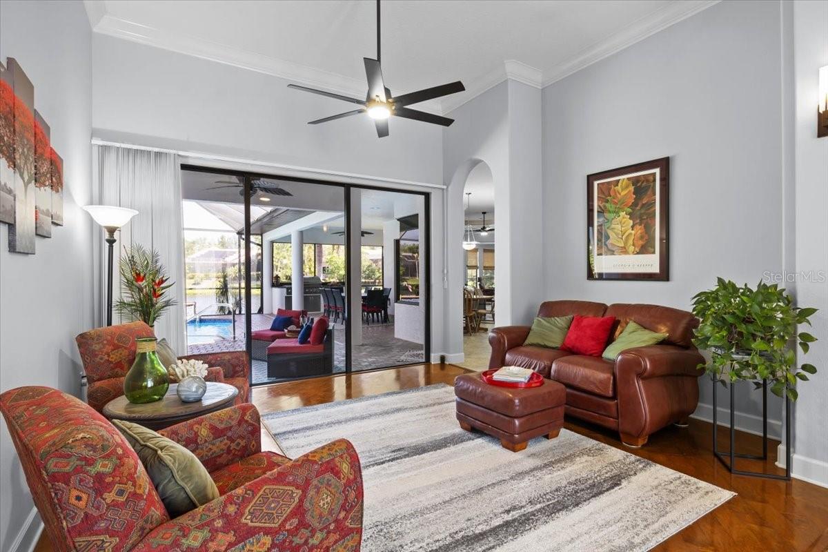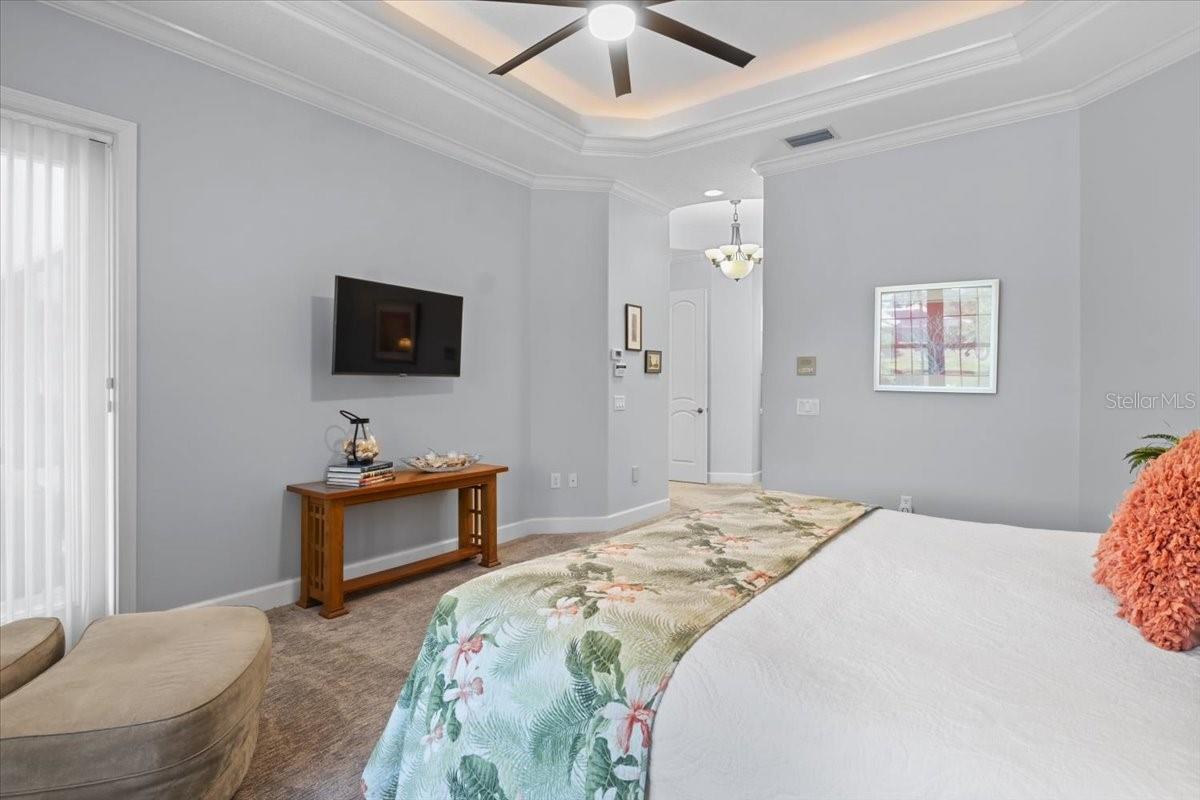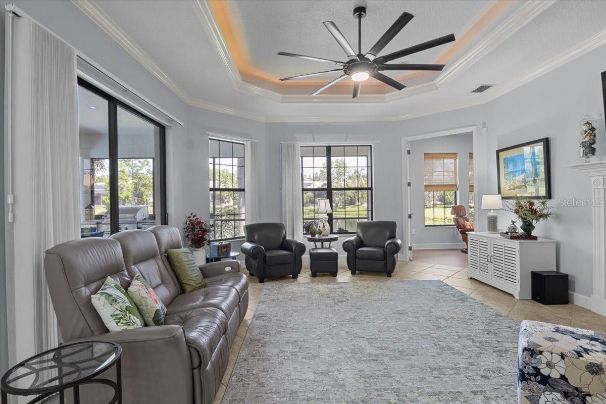 Tucked away on a private interior street off the main thoroughfare, sets this house up to be your private enclave! Located near THE ISLANDS ON THE MANATEE and mirroring the style and feel of the Island's Spanish Colonial homes, this home provides all the feels without the pricetag, flood zone and extra HOA fees! As you enter the front door, you will be drawn to the EXPANSIVE LAKE VIEW that is maximized throughout the home. The large lanai encompasses two covered entertaining areas, your competely resurfaced and retiled pool & spa (2025), and waterside summer kitchen. This 3,396 sq ft, FOUR BEDROOM (all with walk-in closets), FOUR BATHROOM floorplan blends function and livability with just the right mix of casual and formal spaces. The kitchen and family room areas are highlighted by the panoramic views of the pool, spa and lake providing the perfect casual entertaining ambiance. The kitchen features all new stainless steel appliances with double ovens, induction cooktop and walk-in pantry. The primary bedroom is huge and features a large tray ceiling with ambiant lighting, two walk-in closets, a gorgeous ensuite bath with spa tub, dual sinks and private toilet room with a bidet. The right side of the house contains two bedrooms with an adjoining bathroom and a dry bar that serves the dining room and right wing of the home. There is a bonus room with a wet bar (that could easily be turned into a kitchenette with the addition of a microwave), full bath and private bedroom that could serve as a MOTHER-IN-LAW suite located just beyond the family room. The THREE-CAR garage is oversized with over 900 sq ft of space. The exterior of the home is beautifully landscaped, has dusk to dawn lighting and crisp curbing. Notable upgrades include: IMPACT WINDOWS (9 windows) AND A HURRICANE SCREEN PACKAGE on rest of windows, NEW ROOF ($86,000) being installed May 2025), new energy-saving variable-speed pool pump and a 250-gallon in ground propane tank that supplies the pool heater and outdoor grill. RW is an established community with winding, tree-lined streets with tall oaks and mature landscaping. Walkers, bikers and neighbors walking their dogs set the scene for an active and social community. The Club offers golf, tennis, social activities, pickle ball, pool and more. The community can dine at the club without a membership. Various golf memberships available. Fitness pass to all amenities (except golf) available for $100 ind./$150 month family. Boat and RV storage in community. For the nature lovers, there are hiking trails and abundant wildlife. There are two 24-hour manned gates. There is a COMMUNITY BOAT RAMP that is open to the entire community and provides direct access to the Manatee River. RW is PERFECTLY LOCATED! Strategically positioned between St. Pete and Sarasota provides easy access to 2 airports (45 min.) and several hospitals to the north and south. The newly constructed Ft Hammer Park located on the beautiful Manatee River is just minutes south of the front gate and features a boat ramp, fishing pier plus picnic pavilion. Lakewood Ranch and Sarasota are near-by where fine dining and shopping are within easy reach. The very popular Ellenton Outlet Mall offers designer brands at discount prices and is only 10 min away. A new shopping complex is open offering Lowes, HomeGoods, and nail spa well as several other stores and restaurants. No trucks in driveway overnight in RW. SF to be verified by Buyer/Agents. Fireplace is decorative.