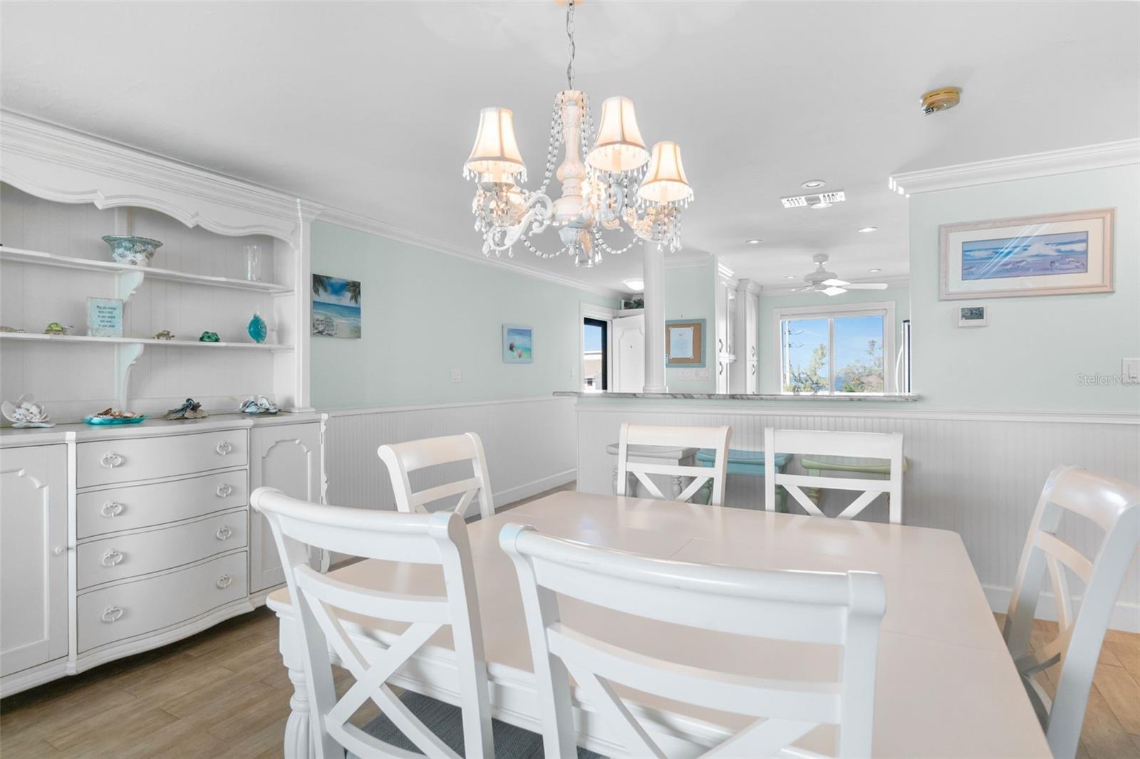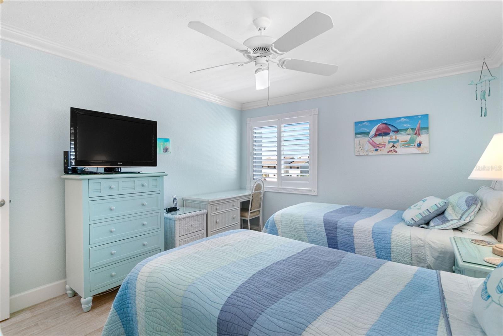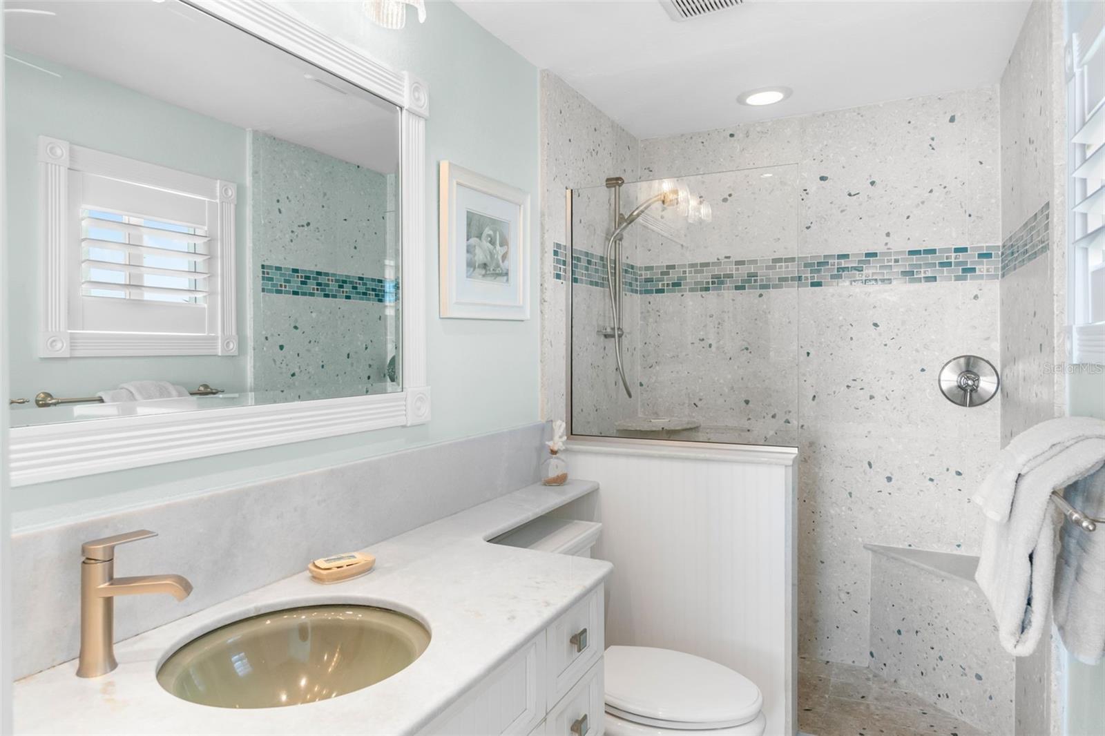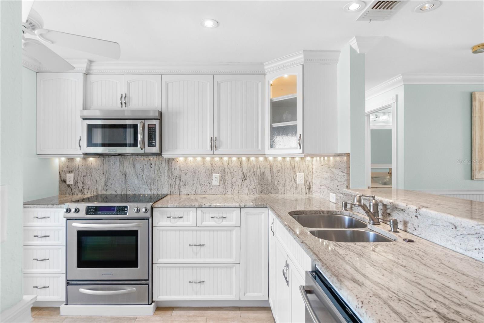 Embrace waterfront living in this end-unitresidence in SunriseCove, an updated, turnkey-furnished 2-bed/2-bath condo offering 1,228 sq ft of coastal style, just one shared wall, tile flooring and crown molding throughout, abundant closets, and a coveted in-unit washer-dryer. The granite kitchen features high-end stainless appliances, two pantries, and generous cabinetry, while impact-rated windows, plantation-shuttered in both bedrooms, capture spectacular sunrise panoramas over Little Sarasota Bay from the living area and screened lanai and serene sunset Gulf views from the kitchen and guest suite. Extra end-unit windows flood the primary suite and guest room with light; newer systems include an HVAC (2022) and water heater (2021). Community highlights: two heated pools (one Olympic length), lighted tennis/pickleball courts, a freshly renovated clubhouse, fitness and game rooms, barbecue area, kayak launch and optional boat docks, all tended by an on-site crew Monday, Friday, with a funded assessment for new roofs, carports, and dock upgrades under way. On-site management supports 30-day rentals for effortless income potential, while Turtle Beach, three restaurants, and the free Siesta Key Breeze trolley are just steps from your door, delivering the complete island lifestyle and an investment opportunity in one.