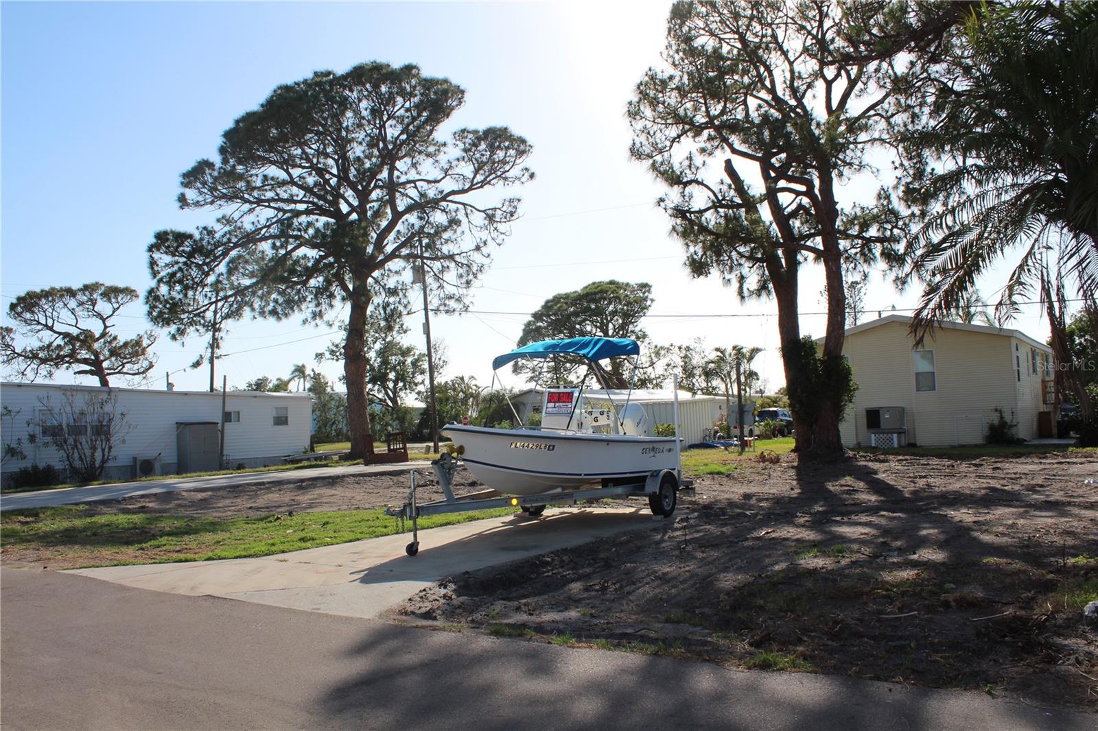 This cleared lot is ready for you to build your dream home just a block from the majestic Sarasota Bay. Paradise Bay is a 55+ community where neighbors are family! The frontage of this lot faces east, your mornings will be greeted by enjoying a peaceful sunrise to start your day! Your backyard will mesmerize you with one beautiful sunset after another, night after night. Once your home is completed, your view from the south side of your home will be the stunning bay. Perfect place to incorporate this area as your primary bedroom to enjoy the sites & sounds of living near the water. This is a very active community where golf carts are the main mode of transportation throughout the park. Take a tour of all the onsite amenities including a club house with many planned activities, shuffleboard, tennis & bocci ball. Launch your kayak or boat right from the community ramps, just a minute from your driveway. Rental boat slips are also available. Gather with your neighbors at one of the many seating areas along the water with an unobstructed views of the Longboat Key Bridge. The boat on the lot is a 2001 Seafox 17ft CC with a New Magic Tilt aluminum trailer, 70HP 4Stoke Johnson Bimini top. Available for separate purchase.