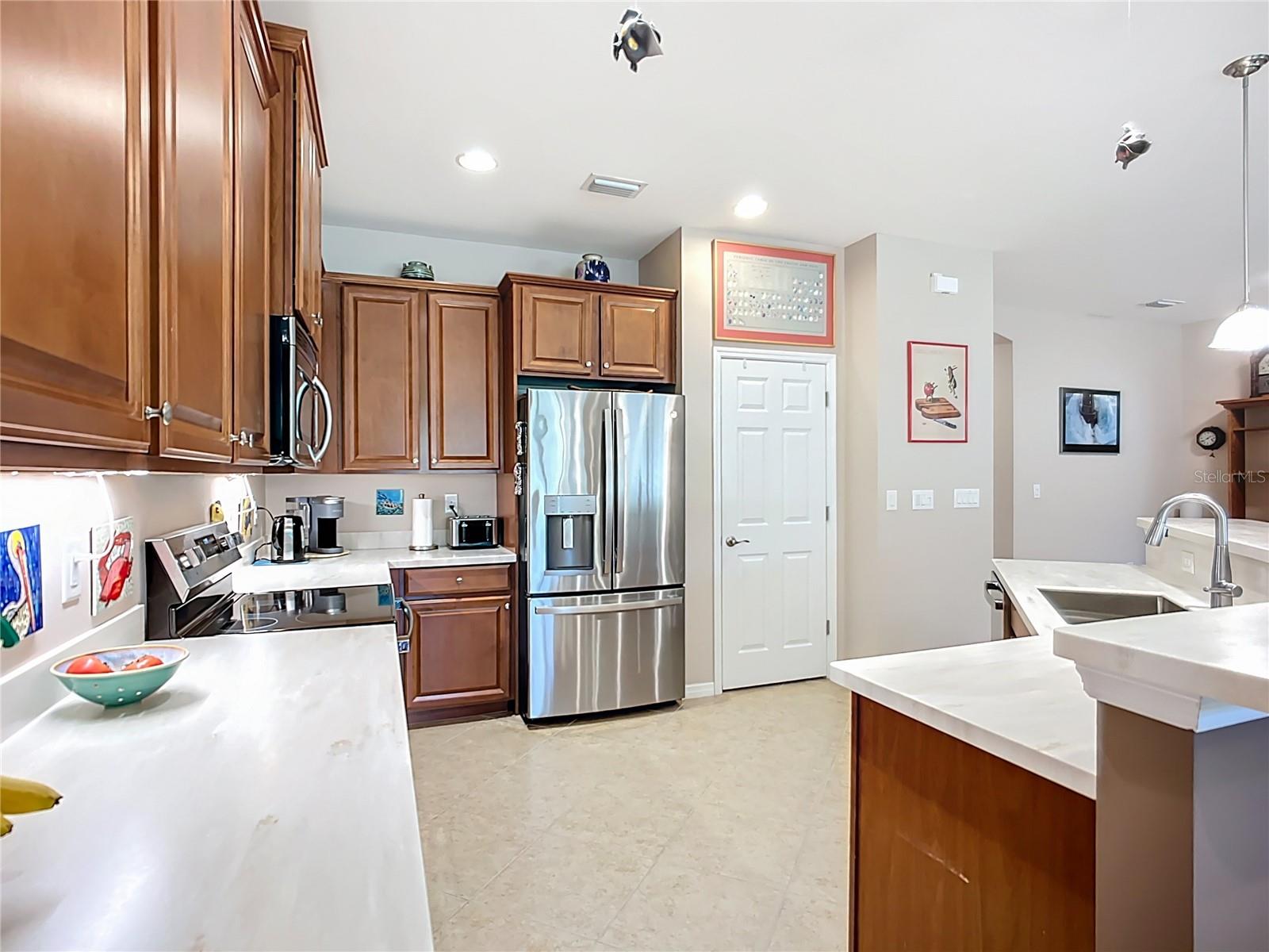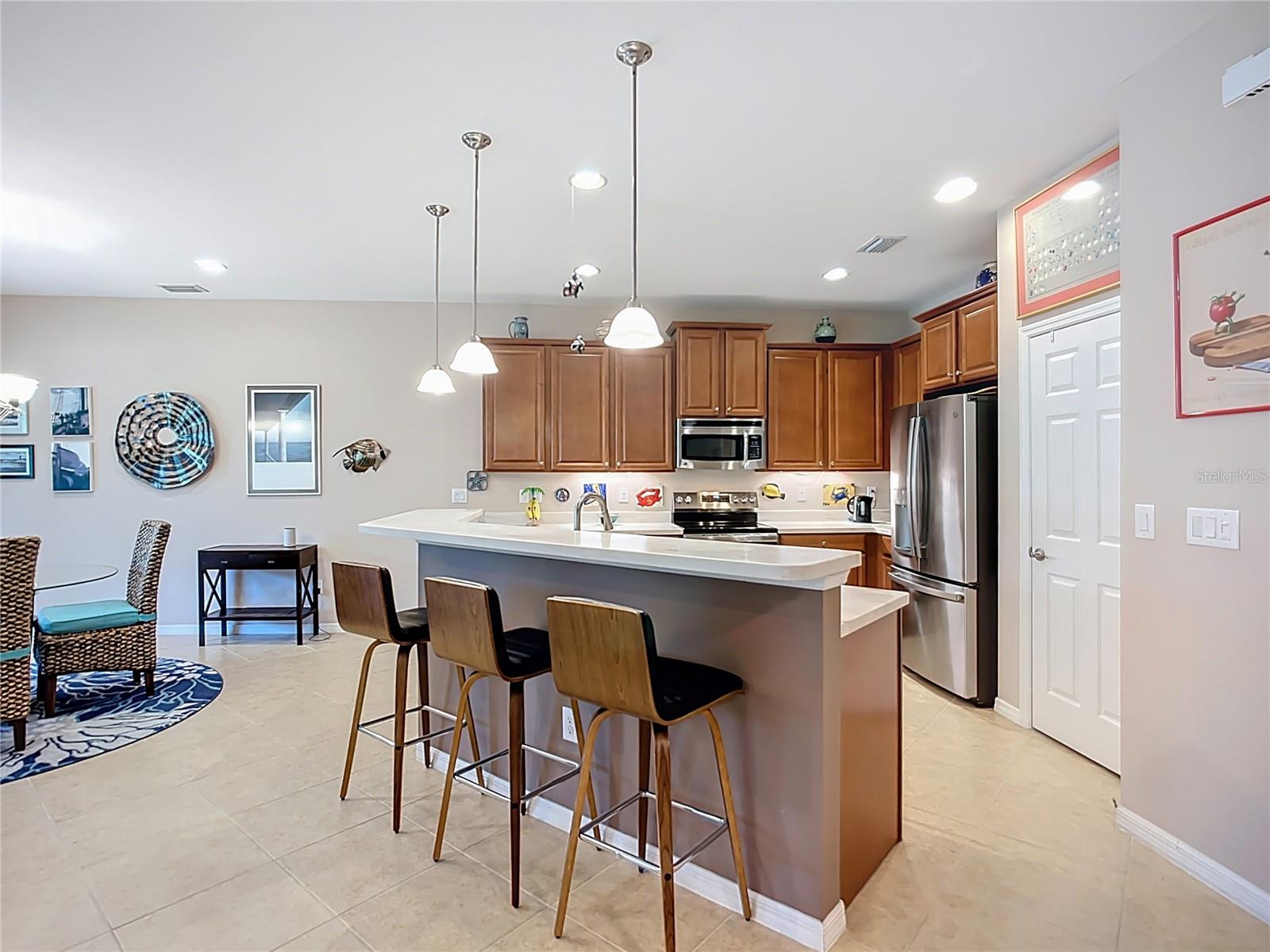 Welcome to Talon Bay, a friendly community close to Wellen Park with no CDD fees! This move-in-ready D.R. Horton "Pembrook" model is a must-see. The home features stylish upgrades, including 18"x18" diagonal tiles in the main living areas, 42" kitchen cabinets with crown molding, Corian countertops, and stainless steel appliances. A Delta touch faucet adds convenience, while recessed lighting in the living room, upgraded bathroom tiles, and plank ceramic tile in the bedrooms elevate the space. The indoor laundry room includes a utility tub for added practicality. The AC is well-maintained with a service contract, and the home benefits from preventative pest control and a roof cleaning contract to keep the barrel tile roof looking fresh. The exterior was recently repainted, the front entry is newly screened, and the garage boasts a fresh epoxy floor and new paint in 2025. City water, sewer, and irrigation ensure easy maintenance and a lush lawn. Ask about the assumable 2.625% VA loan. Backing up to a peaceful wooded area, this home offers quiet evenings and is just steps from Talon Bay's fantastic amenities, including a spacious clubhouse, large heated pool, covered grilling area, tennis courts, and scenic sidewalks. Located only a few miles from Downtown Wellen Park and CoolToday Park. A short drive to Venice Beach, Manasota Key, top golf courses, dining, and shopping, this home strikes the perfect balance of relaxation and convenience.Talon Bay spans 101 acres with small lakes, nature trails, and a canoe launch for exploring Myakkahatchee Creek, surrounded by beautiful Everglades-like scenery and wildlife. This is a home and lifestyle you'll love!
