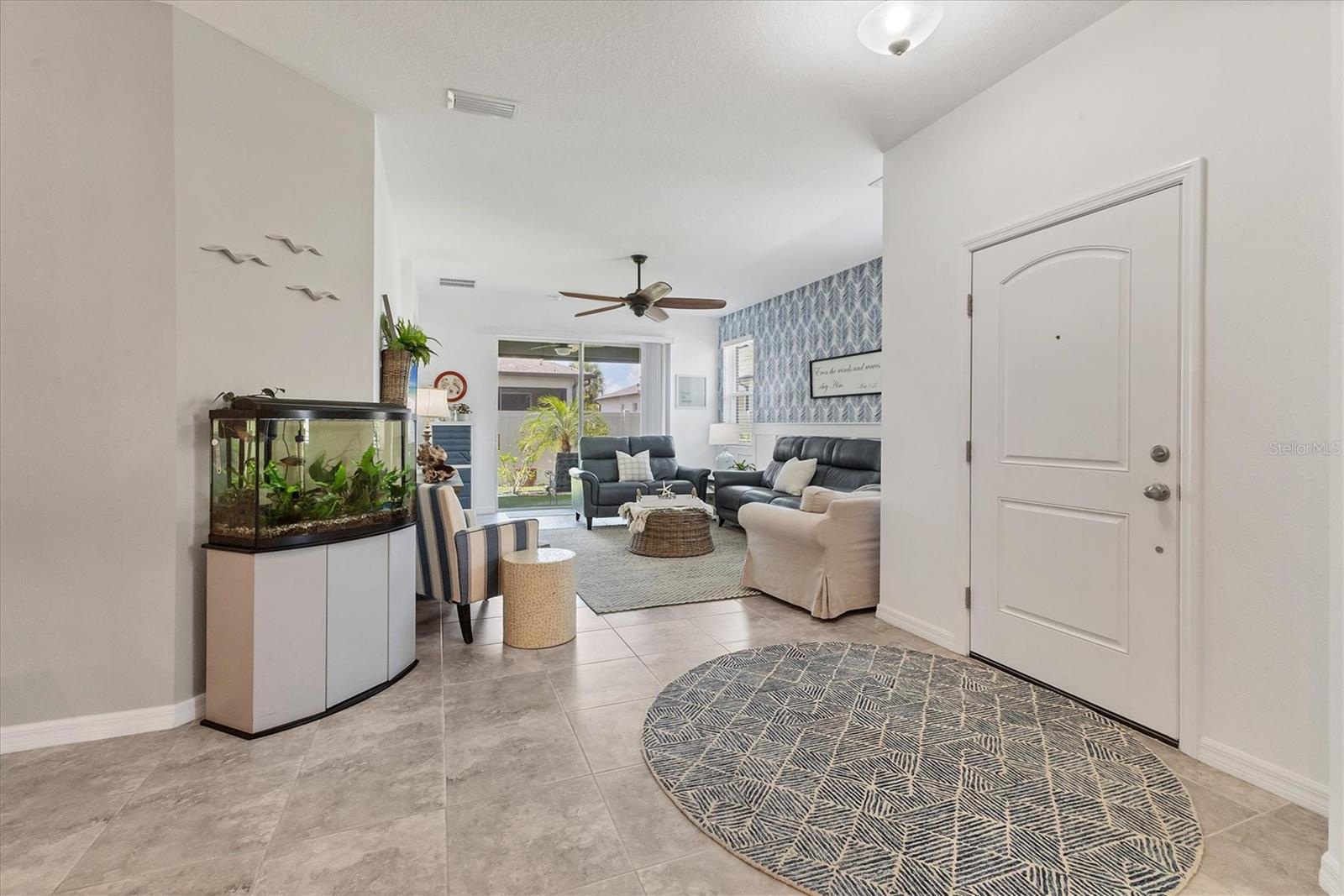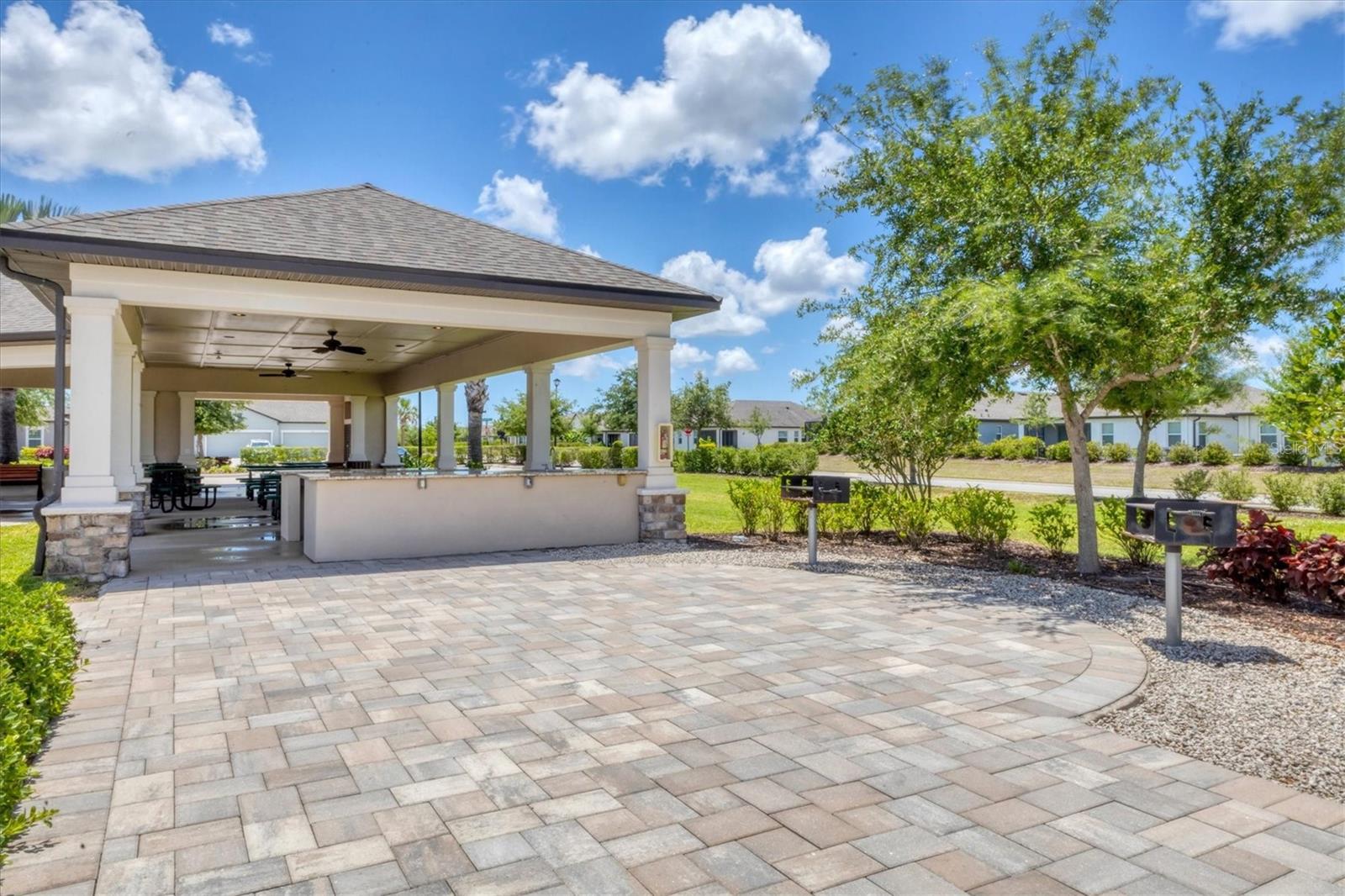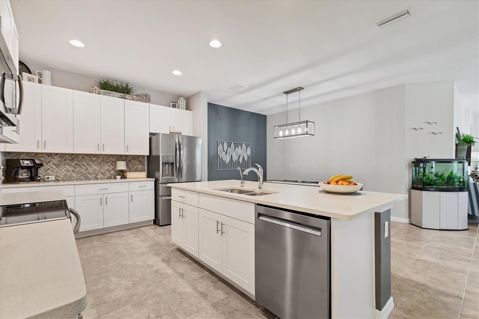 Coastal Charm 3BR-2BTH Villa Move In Ready for You!Well-kept and full of coastal charm, this 3-bedroom, 2-bath villa with an attached 2-car garage offers a light-filled open floor plan with tile flooring throughout and a decorative accent wall that adds warmth and personality. The kitchen features quartz countertops, a tile backsplash, stainless steel appliances, a large island with seating, a new dishwasher (2024), and a reverse osmosis (RO) drinking water system. The primary bedroom includes an ensuite bath with dual sinks, quartz countertops, a spacious walk-in closet, and a large tiled shower. Enjoy peaceful mornings or relaxing evenings on the screened-in lanai. The garage floor has also been polished to a permanent shine.Additional upgrades include a UV light air purification system (2025) for improved air quality and added insulation above the garage (2022) for energy efficiency. Kevlar hurricane shutters are included. Located in a quiet, low-fee HOA community with no CDD. Residents enjoy access to a pavilion with grill, playground, open field, and walking paths. Hop on your bike to explore Waterside Place at Lakewood Ranch, or take a quick 10-minute drive to UTC for great food, shopping, and fun. And when you're ready to unwind, Sarasota's gorgeous beaches are just 30 minutes away.