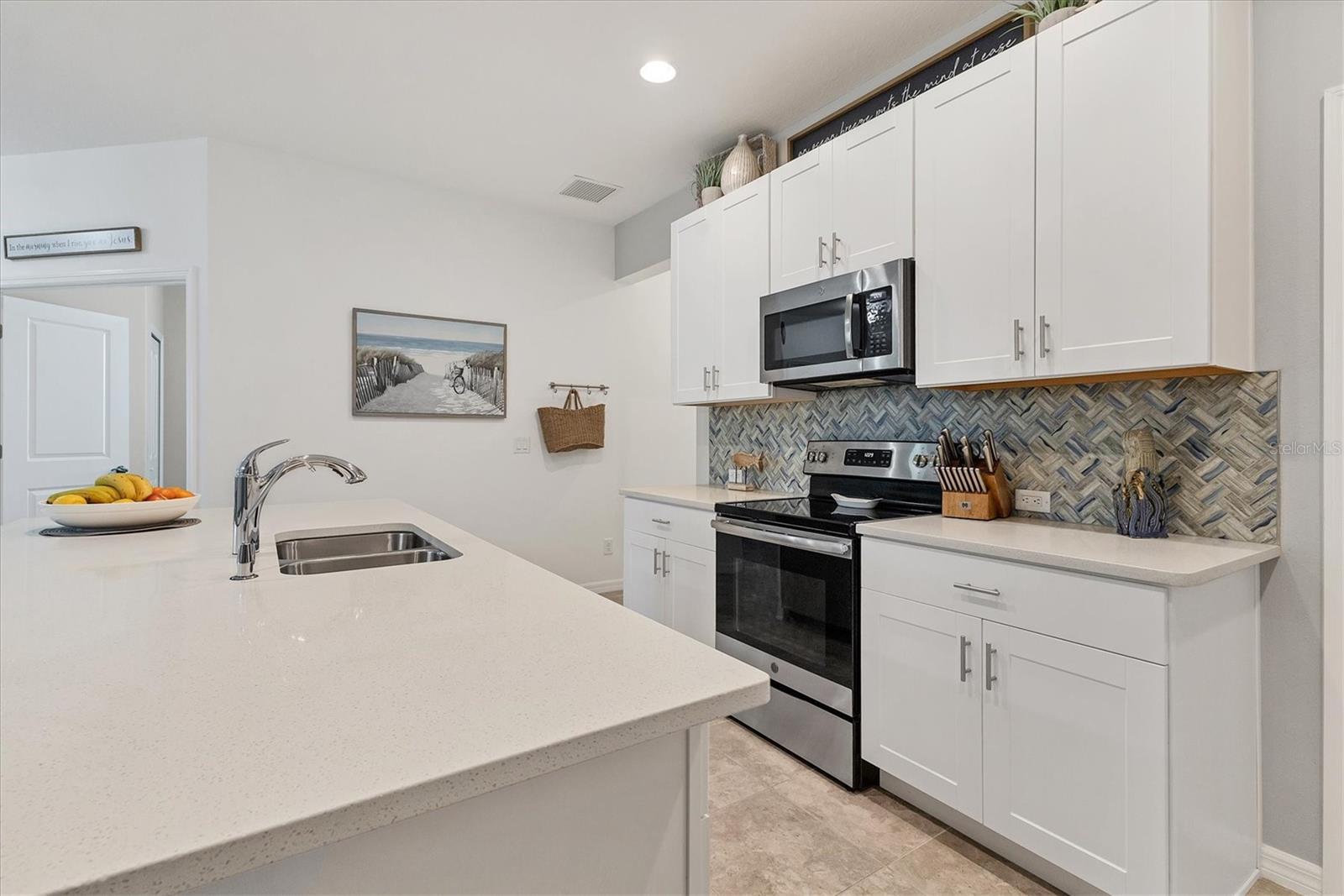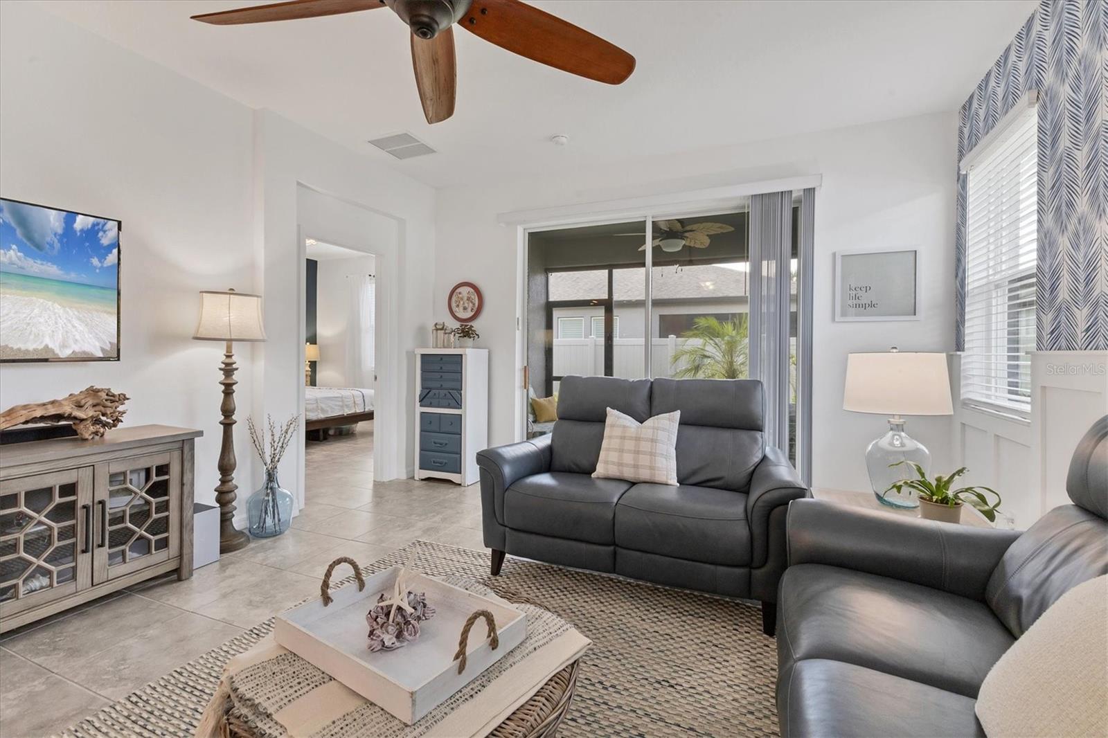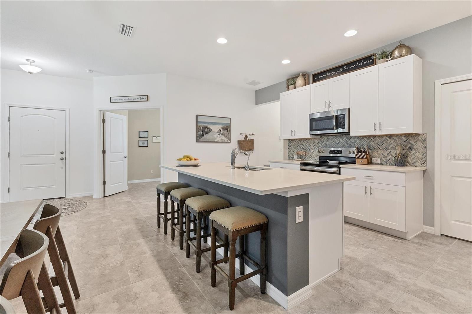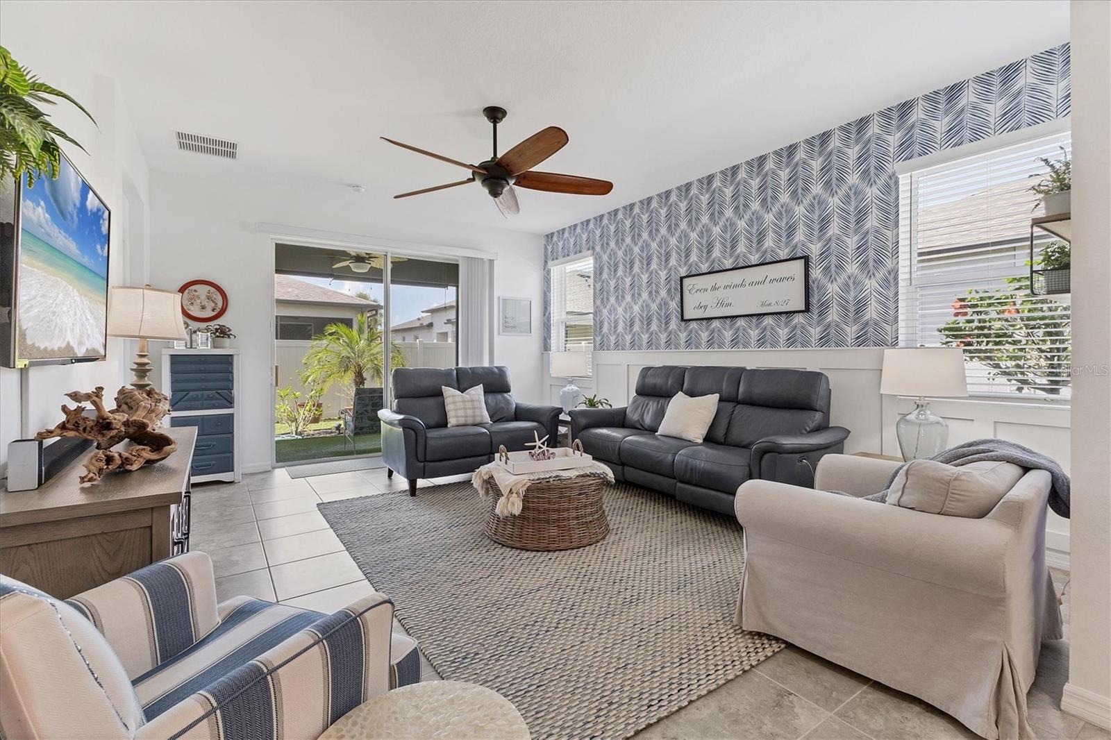 Coastal Charm 3BR-2BTH Villa Move In Ready for You!Well-kept and full of coastal charm, this 3-bedroom, 2-bath villa with an attached 2-car garage offers a light-filled open floor plan with tile flooring throughout and a decorative accent wall that adds warmth and personality. The kitchen features quartz countertops, a tile backsplash, stainless steel appliances, a large island with seating, a new dishwasher (2024), and a reverse osmosis (RO) drinking water system. The primary bedroom includes an ensuite bath with dual sinks, quartz countertops, a spacious walk-in closet, and a large tiled shower. Enjoy peaceful mornings or relaxing evenings on the screened-in lanai. The garage floor has also been polished to a permanent shine.Additional upgrades include a UV light air purification system (2025) for improved air quality and added insulation above the garage (2022) for energy efficiency. Kevlar hurricane shutters are included. Located in a quiet, low-fee HOA community with no CDD. Residents enjoy access to a pavilion with grill, playground, open field, and walking paths. Hop on your bike to explore Waterside Place at Lakewood Ranch, or take a quick 10-minute drive to UTC for great food, shopping, and fun. And when you're ready to unwind, Sarasota's gorgeous beaches are just 30 minutes away.