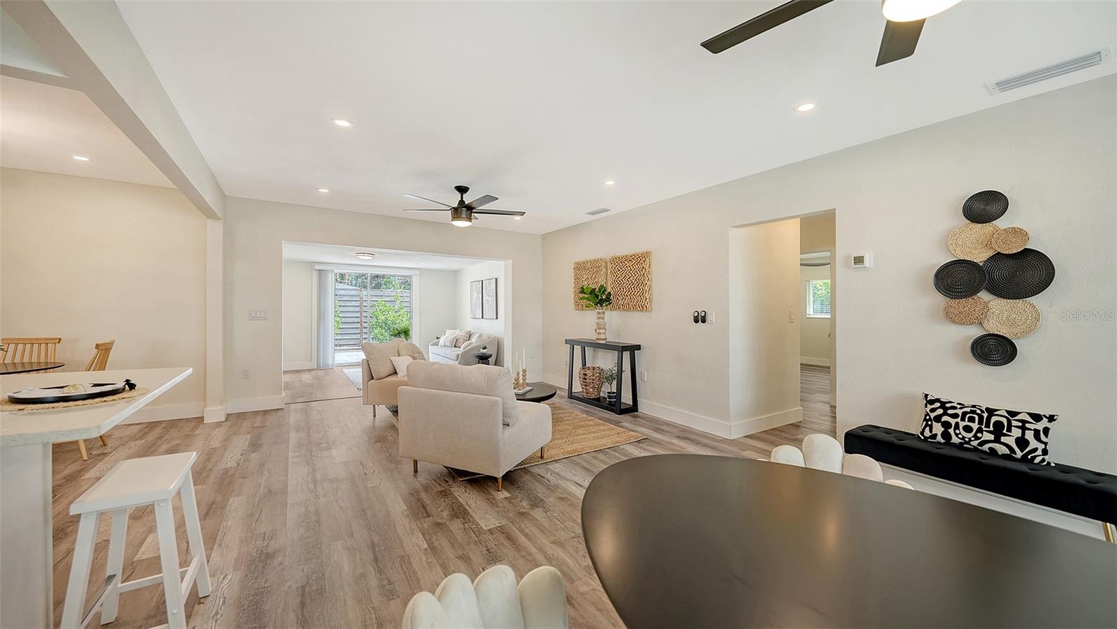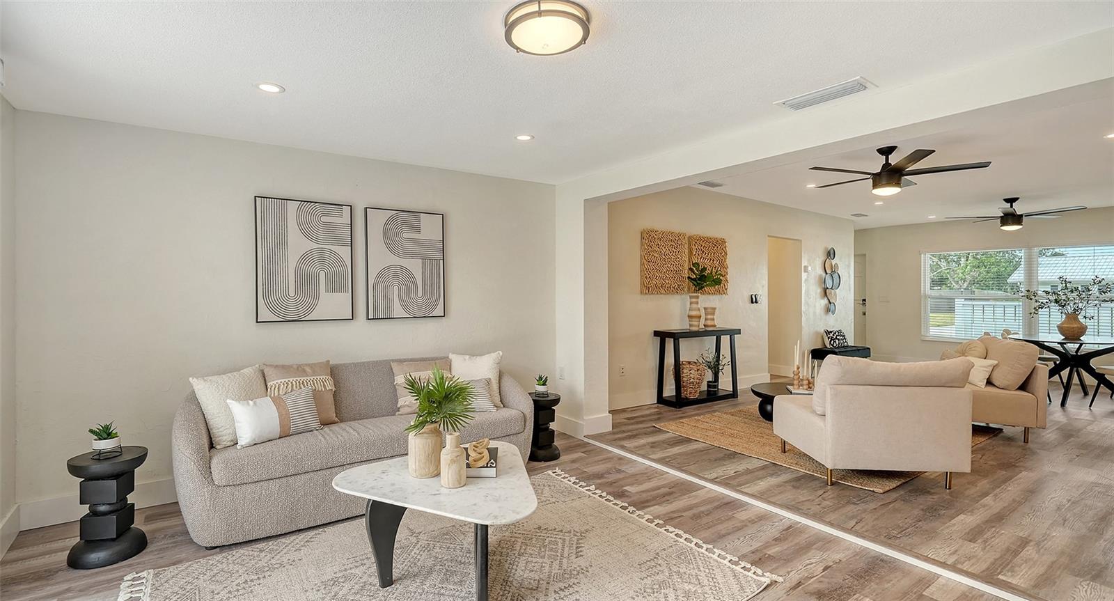 Welcome to 2825 Pinecrest, a stylishly reimagined 4-bedroom, 2-bathroom home located in one of Sarasota's most established neighborhoods. Thoughtfully renovated from top to bottom, this Southgate gem blends modern comfort with timeless Florida charm.Inside, you'll find an open-concept living space flooded with natural light, featuring luxury vinyl plank flooring, recessed lighting, and hurricane-rated windows throughout. The sleek kitchen offers an oversized pantry and flows seamlessly into both the dining area and living spaces. The primary suite is generously sized with a walk-in closet and an updated en-suite bathroom. Three additional bedrooms offer versatility for guests, work-from-home needs, or growing families. Nearly every major system has been upgraded, including a new roof, new electrical and plumbing, new AC and water heater, and a new garage door--making this a true turn-key opportunity. Step outside into a fully fenced backyard with room for a pool, shaded lounging areas, or weekend gatherings. There's also a large, detached shed for extra storage or hobby space. Best of all, you're just minutes from top-rated schools, downtown Sarasota, and world-famous Siesta Key Beach. Optional membership to the South Gate Community Center and pool adds to the neighborhood's appeal.