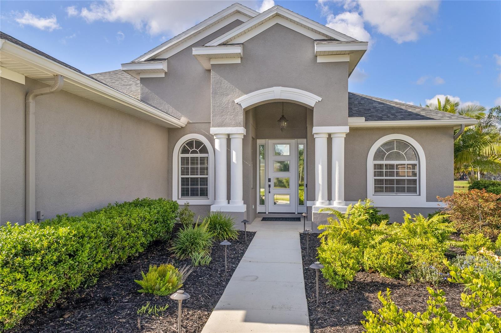 Exterior: Lighting, Sidewalk, Sliding Doors