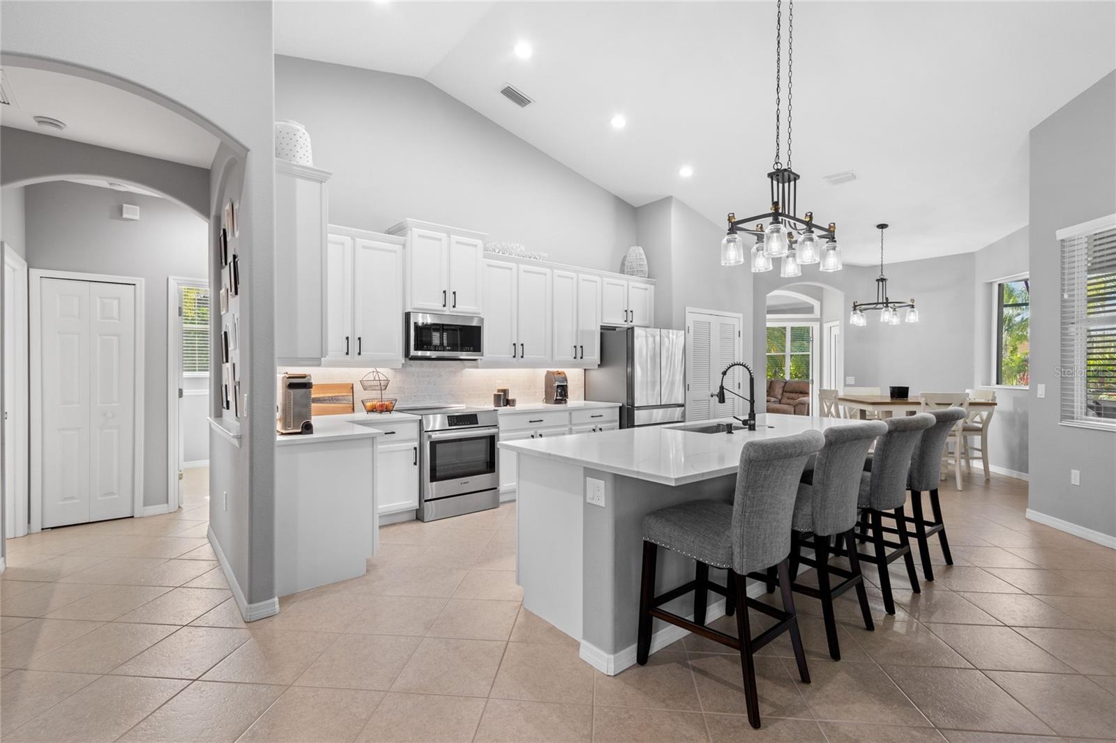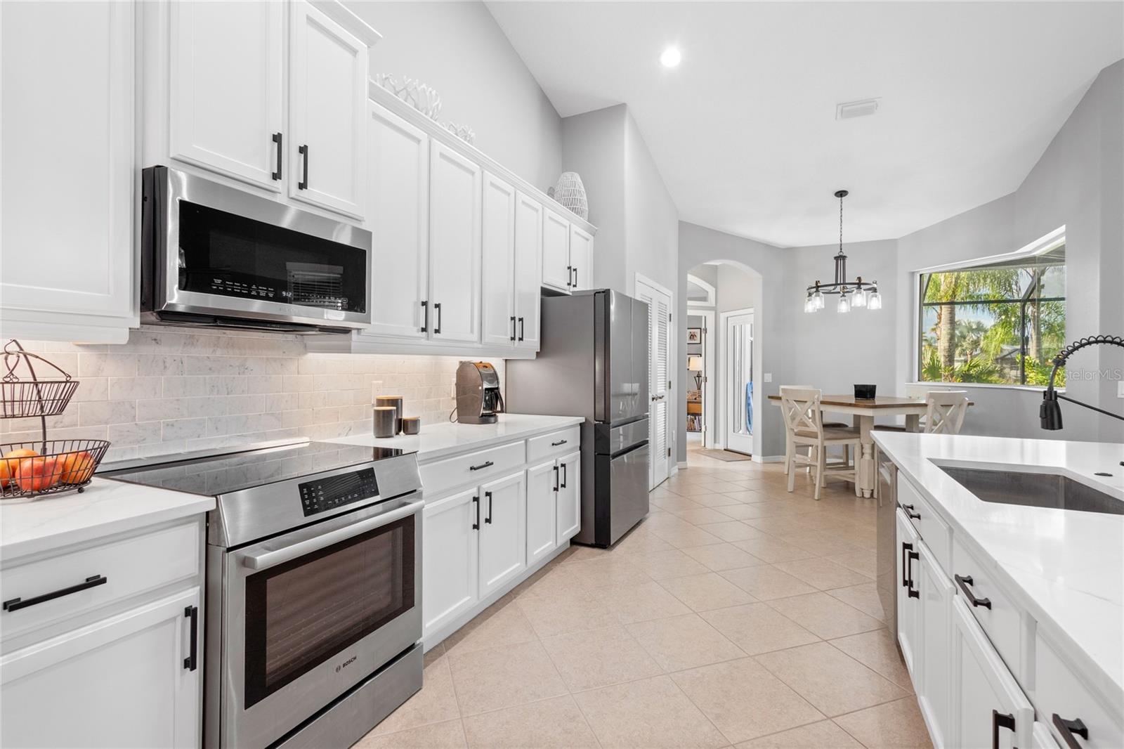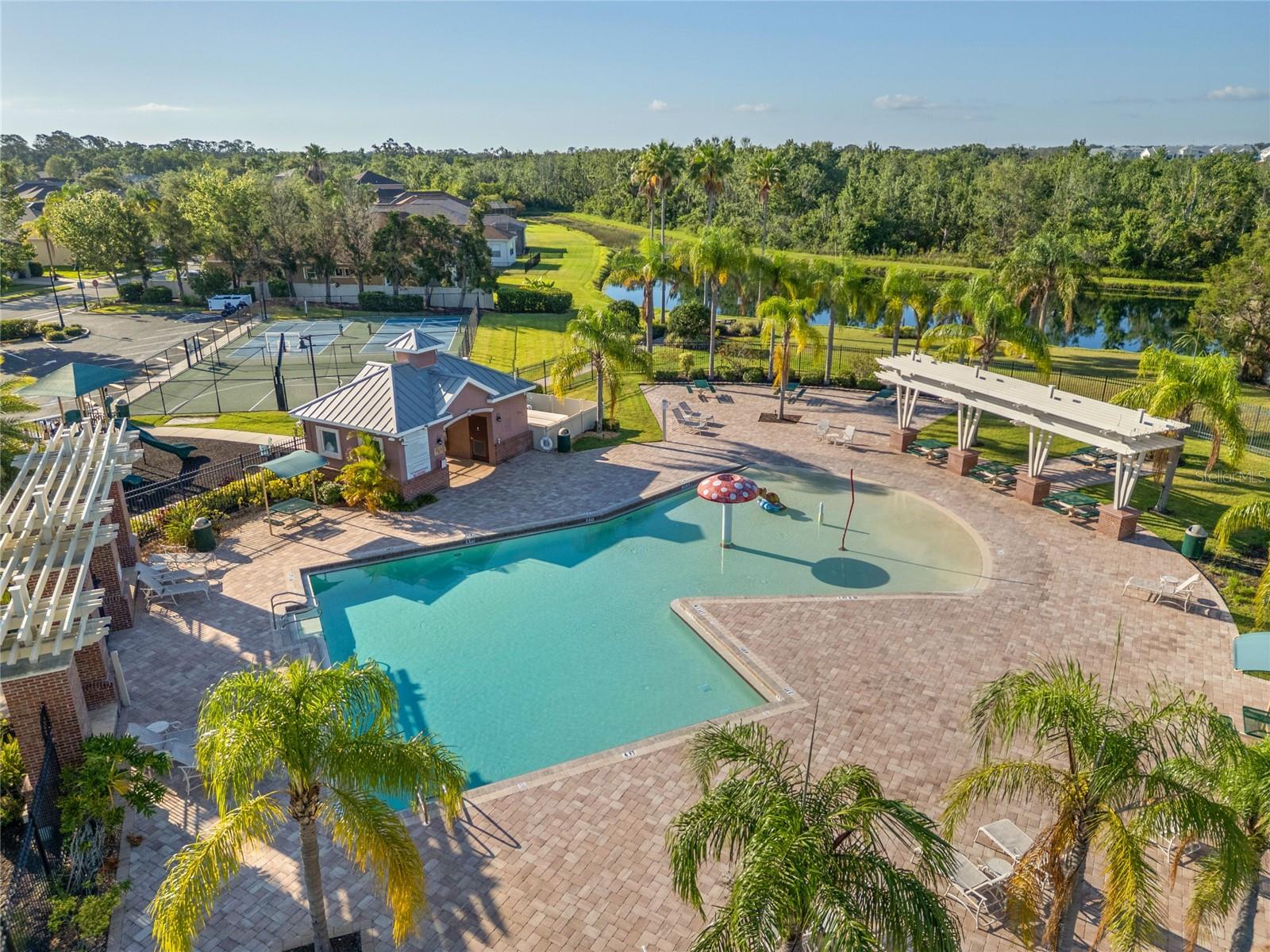 You will fall in love from the moment you walk through the beautiful new impact rated front door and enter into this stunning home that consists of 3 bedrooms, 3 bathrooms, plus a den, with a 3 car garage. This home is light and bright with an open floor plan. See yourself entertaining friends and family in this gorgeous great room that features high ceilings, fabulous kitchen with upgrades consisting of new quartz Cambria counter tops, white cabinetry, large island, new appliances: Bosch induction oven, Bosch dishwasher, microwave, new faucet, and a large pantry, breakfast area, all overlooking views of the pool. Attention to detail is seen everywhere in this home from the freshly painted interior, to the new LED lighting, Minka Air Fans with remotes, and built-in entertainment speakers. Enjoy waking up in this amazing master ensuite with views of the pool. Featuring two walk in closets, large walk-in shower, soaking tub, quartz Cambria counter tops with two sinks, and new toilet. You will have peace of mind knowing that there is a NEW ROOF 2023, HVAC 2021, pool cage repainted, rescreened and new SS hardware 2023, pool equipment 2024, exterior freshly painted 2024, impact rated pool door 2023, and exquisite landscape lighting 2023. All of this and located in the community of Lexington which boasts a Community Pool, Playground, Basketball and Pickleball courts, Low HOA & Very Low CDD fees. Conveniently located to top-rated schools, shopping, restaurants, I-75, beaches, St. Petersburg, and so much more.
