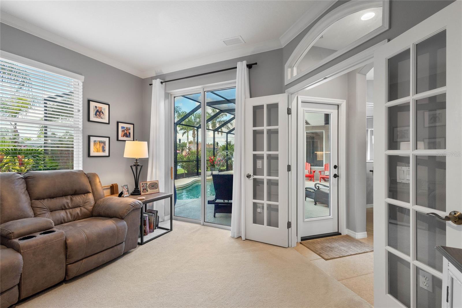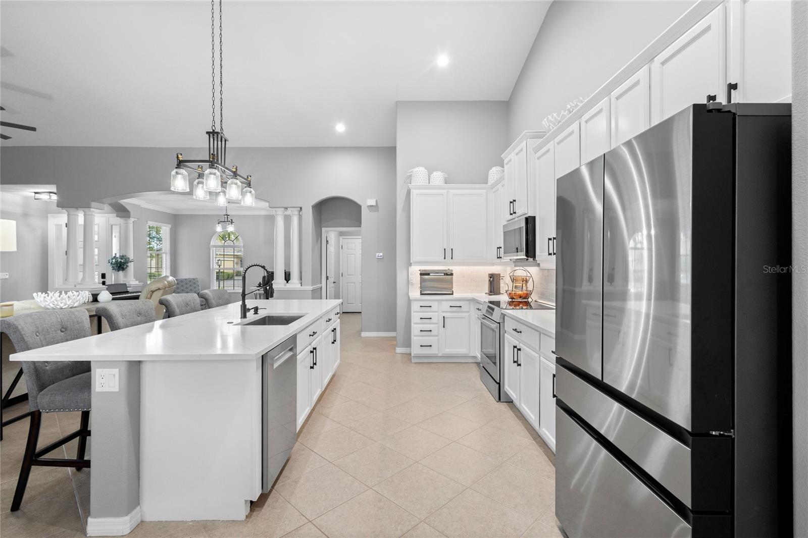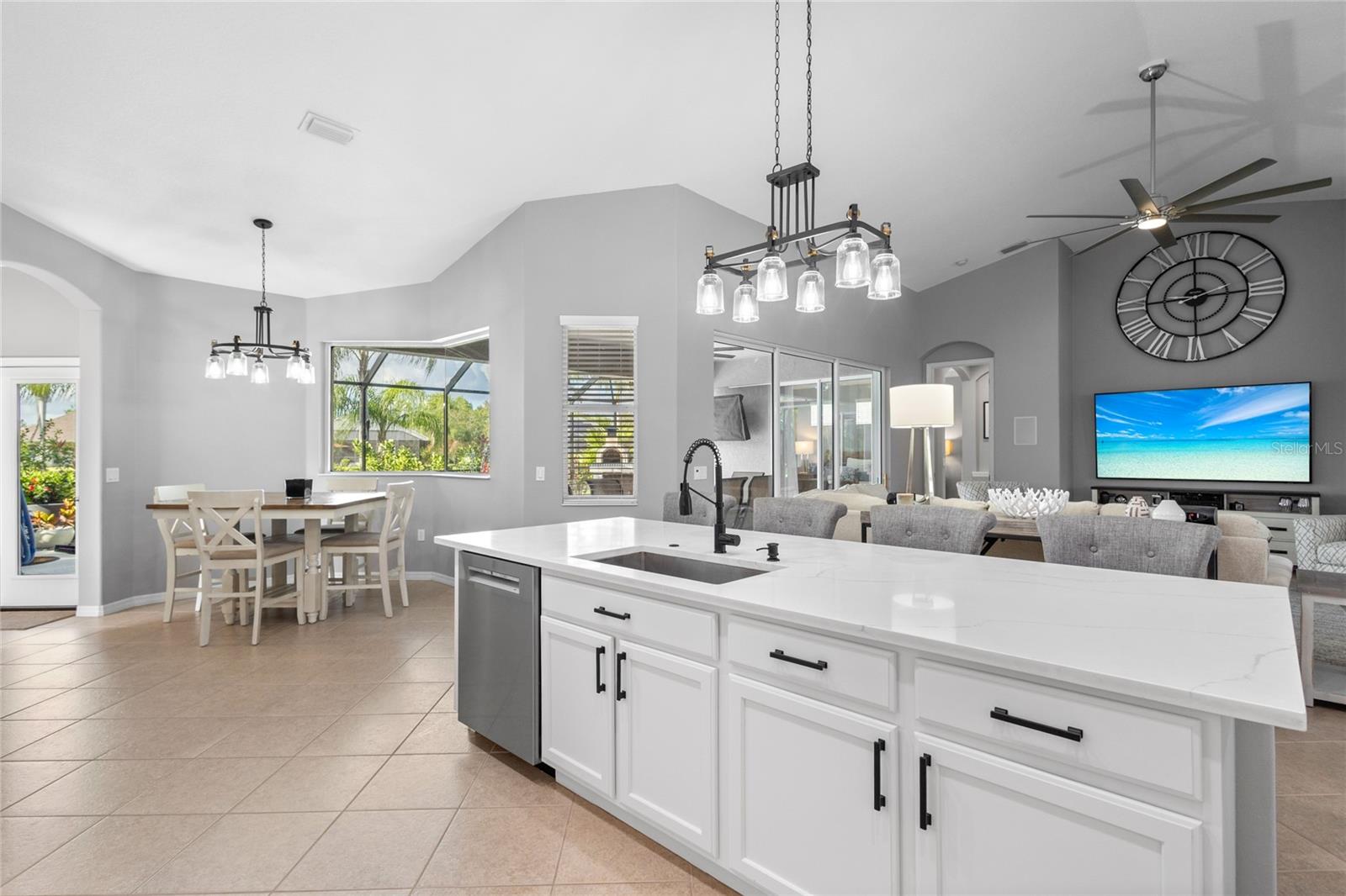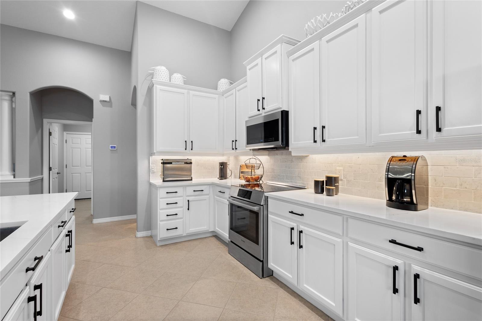 You will fall in love from the moment you walk through the beautiful new impact rated front door and enter into this stunning home that consists of 3 bedrooms, 3 bathrooms, plus a den, with a 3 car garage. This home is light and bright with an open floor plan. See yourself entertaining friends and family in this gorgeous great room that features high ceilings, fabulous kitchen with upgrades consisting of new quartz Cambria counter tops, white cabinetry, large island, new appliances: Bosch induction oven, Bosch dishwasher, microwave, new faucet, and a large pantry, breakfast area, all overlooking views of the pool. Attention to detail is seen everywhere in this home from the freshly painted interior, to the new LED lighting, Minka Air Fans with remotes, and built-in entertainment speakers. Enjoy waking up in this amazing master ensuite with views of the pool. Featuring two walk in closets, large walk-in shower, soaking tub, quartz Cambria counter tops with two sinks, and new toilet. You will have peace of mind knowing that there is a NEW ROOF 2023, HVAC 2021, pool cage repainted, rescreened and new SS hardware 2023, pool equipment 2024, exterior freshly painted 2024, impact rated pool door 2023, and exquisite landscape lighting 2023. All of this and located in the community of Lexington which boasts a Community Pool, Playground, Basketball and Pickleball courts, Low HOA & Very Low CDD fees. Conveniently located to top-rated schools, shopping, restaurants, I-75, beaches, St. Petersburg, and so much more.