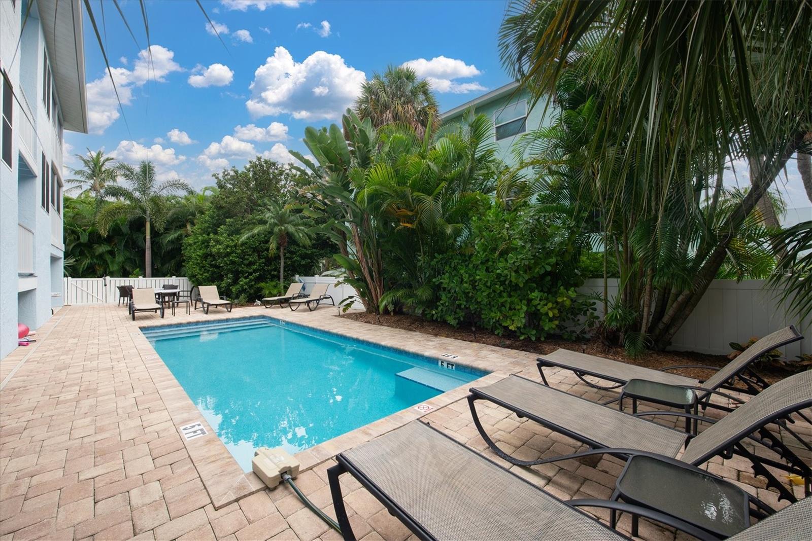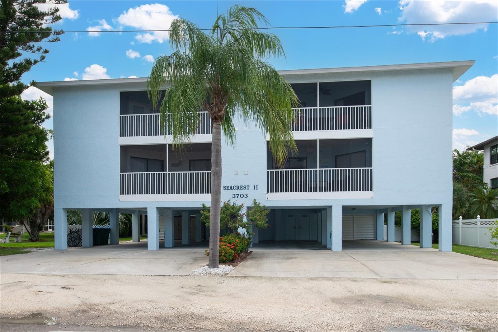 "SEADUCTION" is successful 2B/2B vacation rental in SEACREST ll just 600 ft. to Anna Maria Island beaches! GROSS income 2023 $93,369 2024 Bookings at $72,087 (Hurricane year) 2025 $84,383, and 2026 has $29,825 on the books. This one offers is ALL: *WEEKLY RENTALS*Dog and Cats Allowed* TURN-KEY FURNISHED. This condo is located on the 2nd level with partial water views and is in the heart of it all. *Features include* BUILDING ROOF NEW IN 2016* Fully equipped kitchen* 2021 - new paint and new furniture. 2023 - new AC unit, new oven, new couches, coffee table and patio furniture2024 - new electric panel and new dishwasher 2025 - new microwave* Washer and dryer in unit* One king, a Queen and pull out couch to sleep 6* Beach chairs, and umbrellas* Private storage closet for all your beach gear* Tandem covered parking for 2 and golf cart parking. One of the highlights of the Seacrest property is the heated pool. Since there are only four units in the complex, the pool has a "semi-private" feel, allowing you to relax and unwind in a tranquil atmosphere. All Hurricane assessments have been paid by the owners.