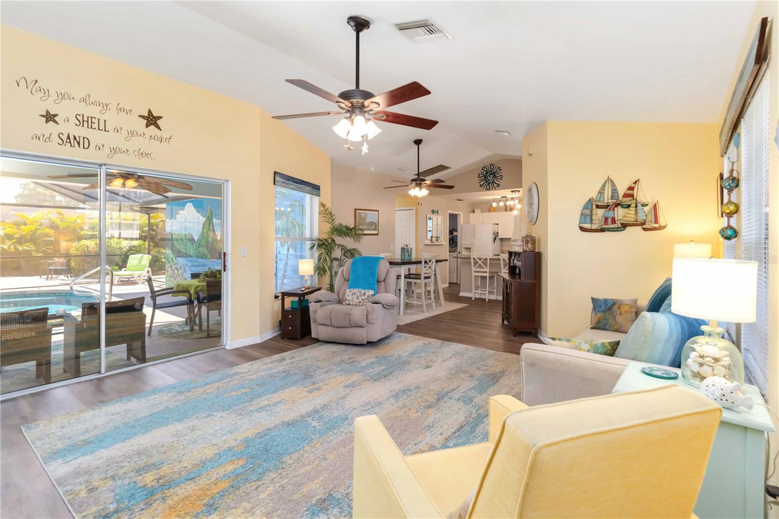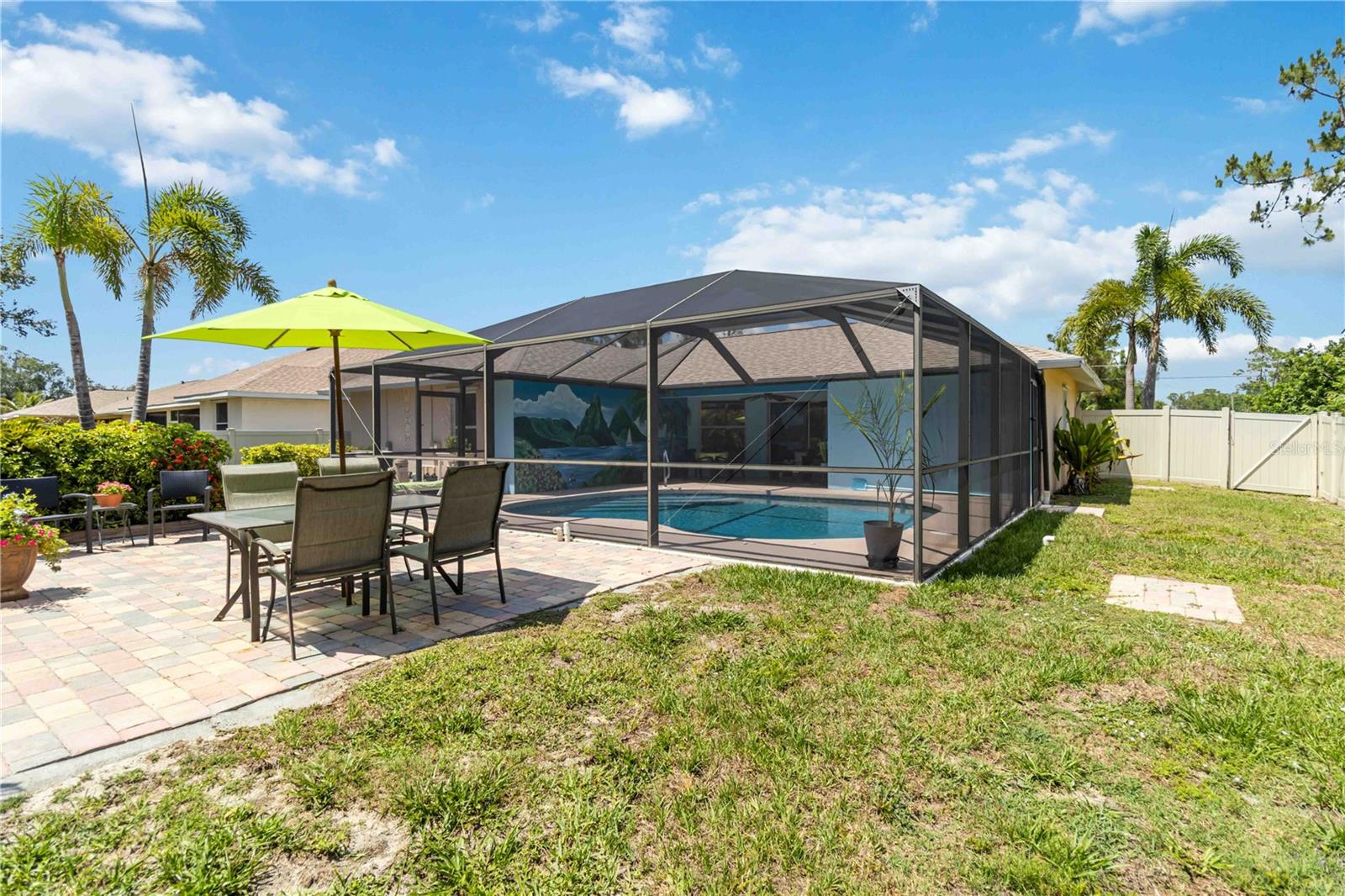 Welcome to Your Private Oasis with an assumable VA mortgage with a 2.625% rate is available for ALL qualified buyers (not only veterans)!This beautifully maintained 3-bedroom, 2-bath pool home is a rare gem that blends comfort, charm, and outdoor living in perfect harmony. Nestled on a serene lot with mature landscaping that provides both beauty and privacy, this residence offers a tranquil escape from the everyday hustle.Step inside to discover a spacious, thoughtfully designed layout ideal for both everyday living and entertaining. The open-concept living and dining areas are filled with natural light, complemented by tasteful finishes and a warm, inviting ambiance.The heart of the home is the expansive paver patio, perfect for hosting gatherings, relaxing by the pool, or enjoying a quiet morning coffee surrounded by lush greenery. The sparkling pool is a centerpiece of the backyard--a true retreat under the open sky.With three generous bedrooms and two full baths, including a well-appointed primary suite, this home checks all the boxes for comfort and functionality. Whether you're looking to settle in or invest, this is a property that delivers lasting value. Some of features this home has to offer include a new roof, new well & water system pumps, & the pool pump, all replaced in 2022. The septic was inspected and pumped in 2024 and the dishwasher was replaced in the same year. Furnishings available separately.Don't miss your chance to own this slice of paradise--schedule your private showing today!