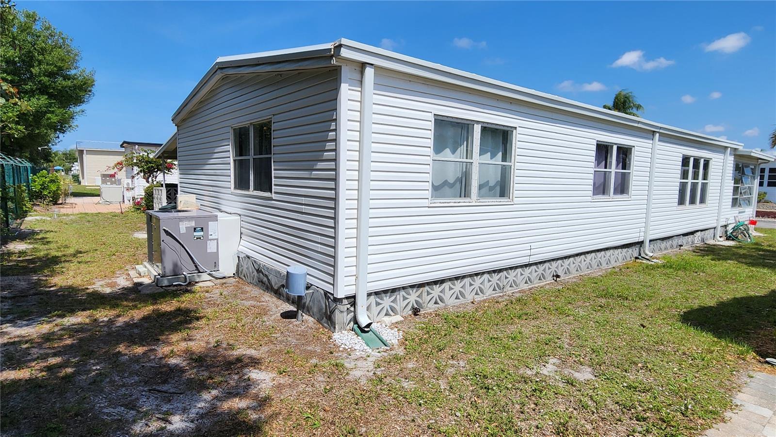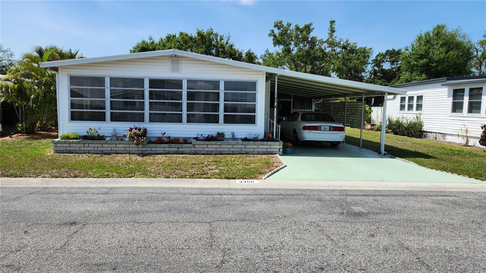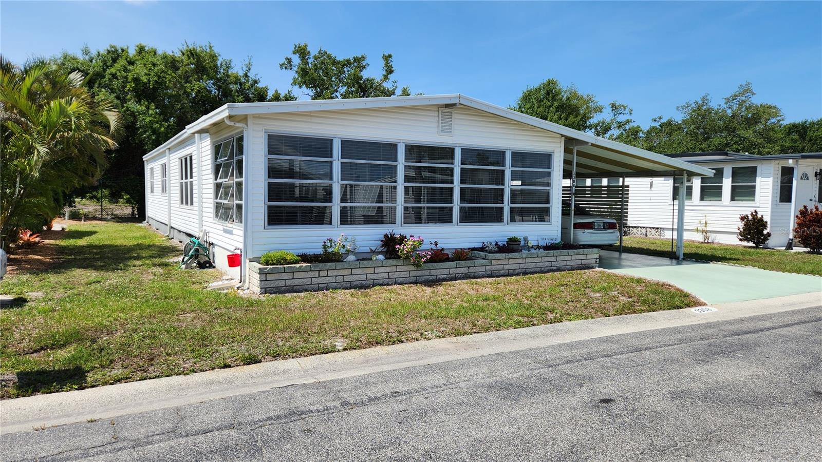 One or more photo(s) has been virtually staged. Perimeter Lot Perfection-In A Premier Location! FLEXIBLE & EAGER SELLER! This 2-bedroom, 2-bathroom home with 1,176 sq ft sits on a HIGHLY DESIRABLE PERIMETER LOT adjacent to Legacy Trail, offering privacy and a quiet setting within the vibrant, active community of Oakwood Manor, situated in the only resident-owned park within the Sarasota city limits! Turn-key furnished (with a few exclusions), the home features two convenient entry points--one through a front Florida room into the main living area, and another through the screened utility lanai directly into the kitchen. Inside, the open living and dining space is perfect for entertaining, with built-in cabinetry and a serving area featuring an updated laminate countertop. The living room opens through double sliding doors to the Florida room with wall to wall windows, adding an additional 220 square feet of versatile entertaining space. The oversized primary bedroom includes both a walk-in and wall closet, an ensuite bath with step-in shower and separate vanity, and room for a king-size bed (furnished with queen-size). The second bedroom includes a full-size bed and generous closet space. The hall bath includes a tub/shower combo and linen closet. Numerous recent updates provide peace of mind and comfort: new HVAC in 2021, HVAC ducts lifted in 2023, and a new 38-gallon water heater in 2023. Enjoy newer carpet in the main living area, tile in the kitchen, shaker-style cabinet doors in the kitchen, reinforced kitchen cabinetry, and updated comfort-height toilets in both baths. Appliances include a 2018 Refrigerator, 2023 HotPoint dishwasher, 2020 GE built-in microwave, 2018 refrigerator/freezer, plus a 2024 GE washer and 2023 Amana dryer in the screened utility shed area. Other improvements include PVC sewer line to the street (2017), some subflooring and vapor barrier replacement (2021), and R-19 insulation behind vinyl siding (both installed in 2000). The metal roof passed insurance inspection in 2024, includes reinforced carport tie-downs and wrap-around gutters. Roof is AMS Weather-Lok with R-19 Insulation.Oakwood Manor is a 55+ vibrant, gated 90-acre community that offers a range of amenities to enhance your lifestyle, all for a low maintenance fee of $190/month. Maintenance fee includes landscaping, cable TV, community pool, plus more. The spacious clubhouse features a fitness room, library, pool table, event hall, fully equipped commercial kitchen, event stage, and dance floor. Outside, you'll find a large heated pool with a handicap ramp, a roomy kidney-shaped hot tub, ample tables and lounge chairs, shaded picnic areas, and updated shower facilities. Enjoy activities such as a community putt-putt course, shuffleboard, and more. The community is conveniently located next to the Legacy Trail and city-managed pickleball courts, just under 3 miles from downtown Sarasota and 6.5 miles from the sandy shores of Lido Key Beach. Centrally located in a PRIME location close to shopping centers and dining restaurants. Please note that Oakwood Manor does not permit pets or motorcycles. Don't miss your chance to enjoy comfortable living in one of the area's most sought-after communities!