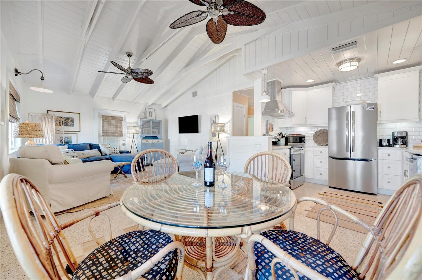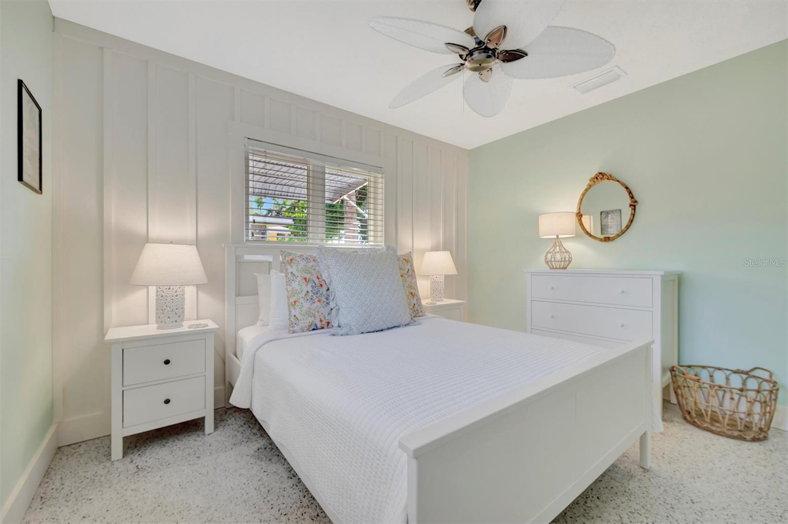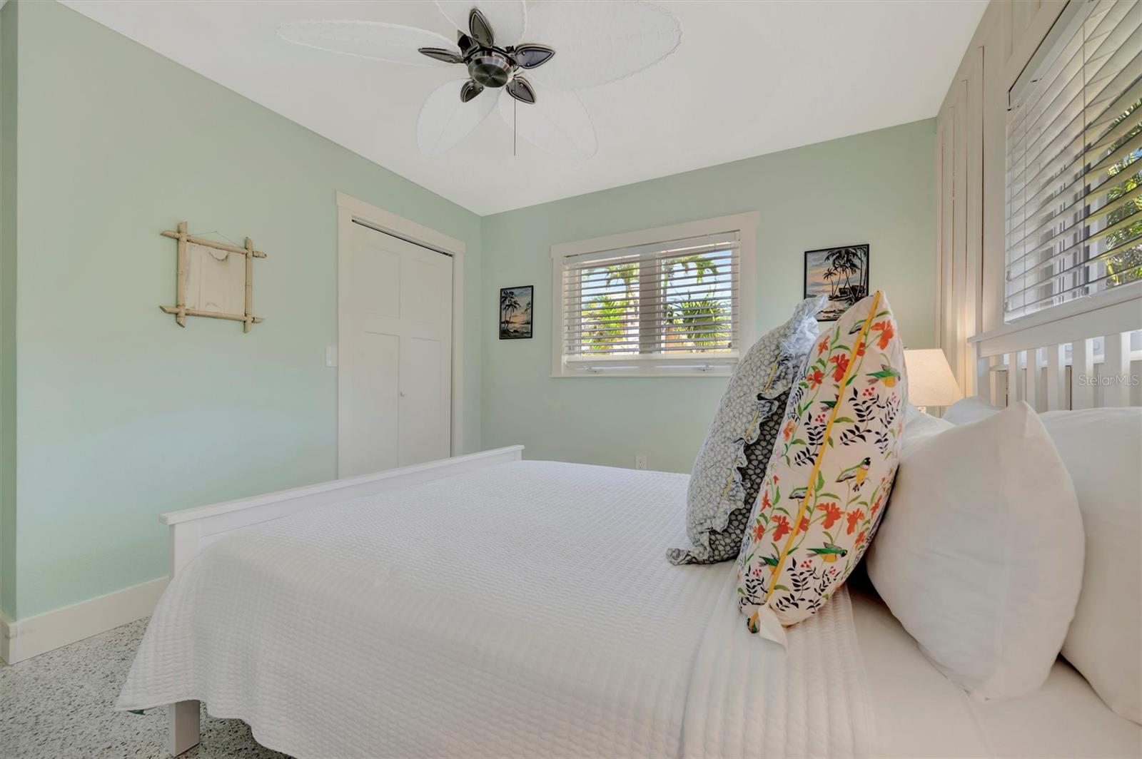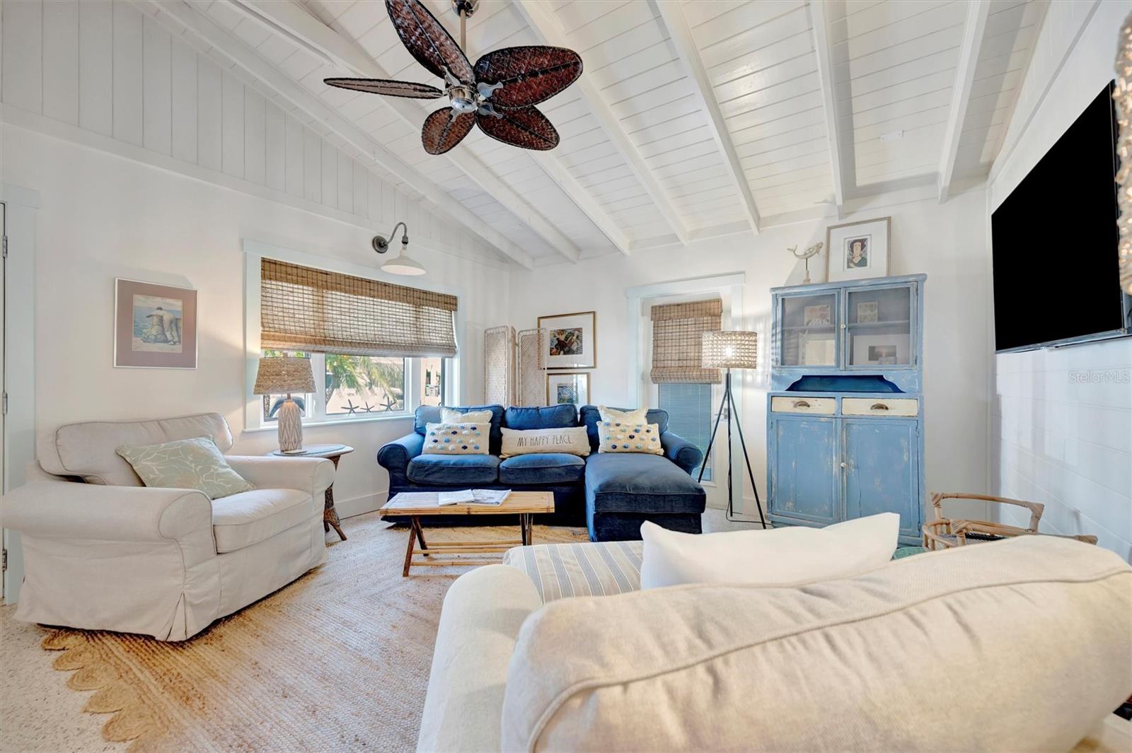 Welcome to Barefoot Gypsy -- a cozy Anna Maria Island cottage bursting with character and located directly across from Tampa Bay on the coveted north end of Anna Maria Island. Completely renovated after Hurricane Helene including NEW ROOF, NEW AC, all new cabinets, appliances, and furnishings, this charming coastal retreat combines timeless charm with modern upgrades. Updated with a professional re-design, the home features vaulted ceilings adorned with reclaimed wood planks from a historic Bean Point home. Gleaming original terrazzo floors flow throughout the cottage, adding authentic Florida charm. The kitchen is thoughtfully designed with quartz countertops, subway tile backsplash, custom built-ins, and brand-new stainless-steel appliances -- perfect for casual beachside entertaining. The home offers two queen-sized bedrooms...one with an en-suite bathroom, and a spacious hall bath complete with separate tub and shower. An additional third bedroom was added in 2017 and features two twin beds along with a full-size washer/dryer and closet area. With its eclectic, beachy flair, this turnkey-furnished home (with some exclusions) is currently part of a successful rental program. There's even room for a pool! Just bring your flip-flops and start living the island dream.