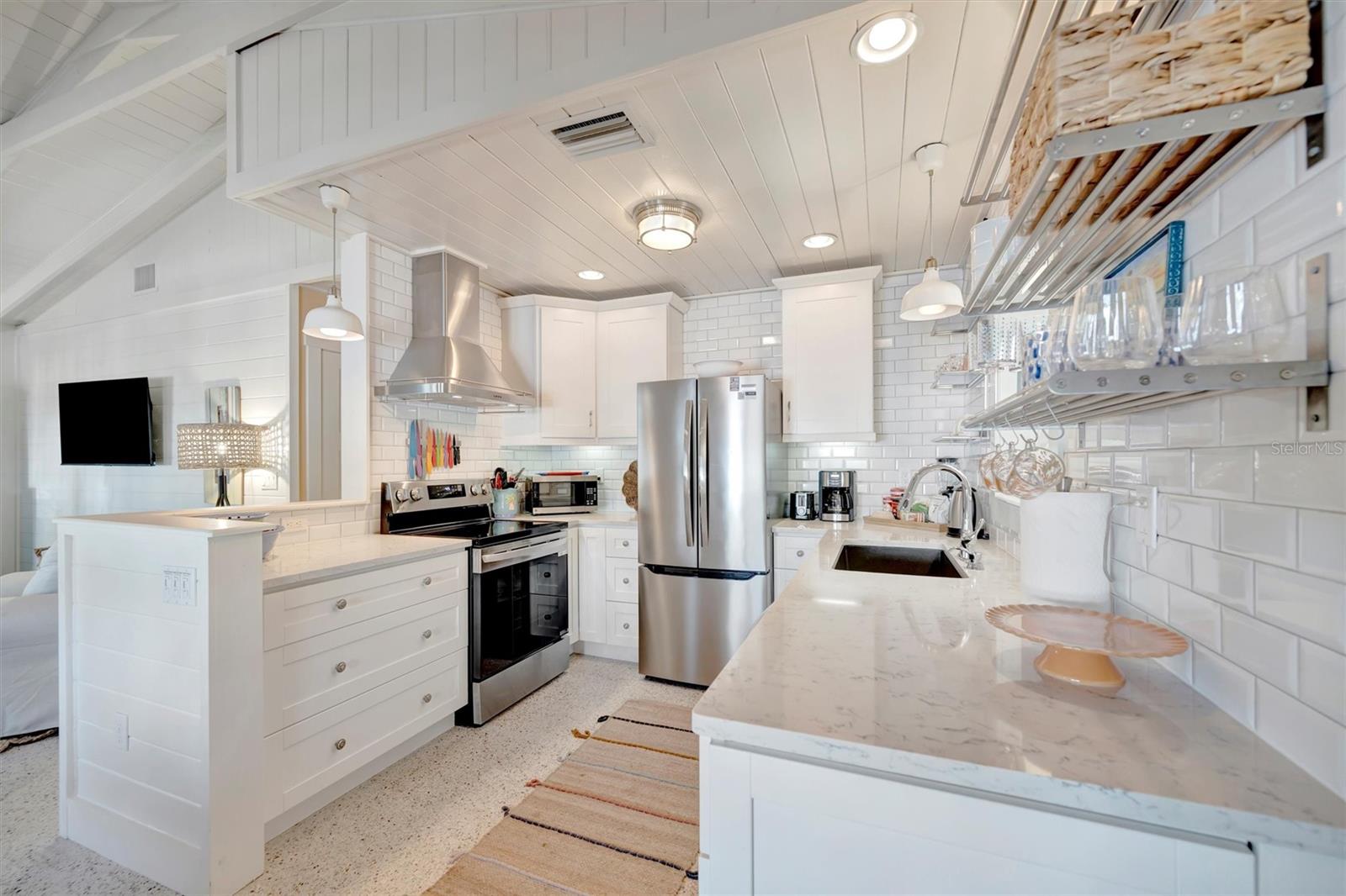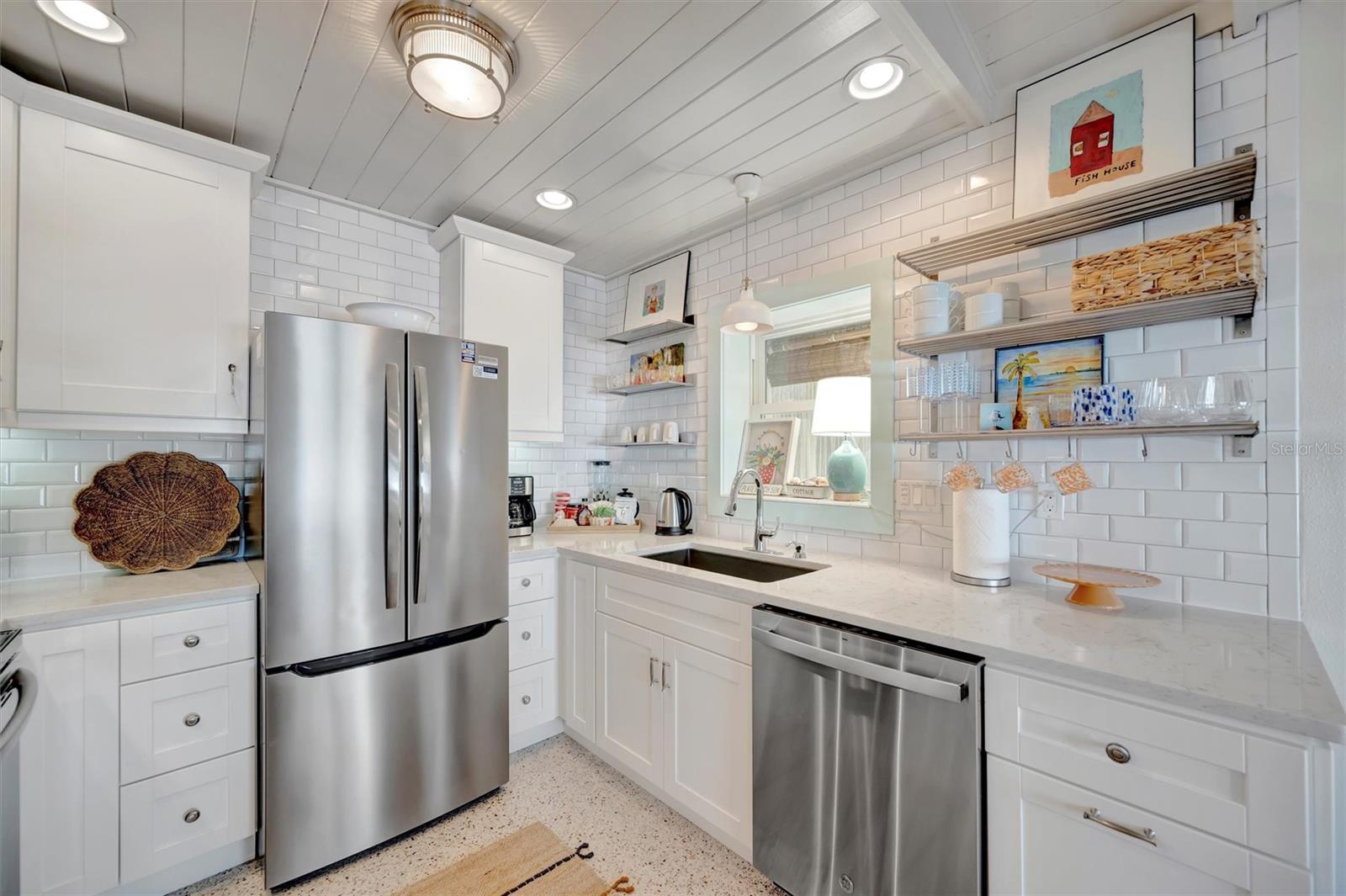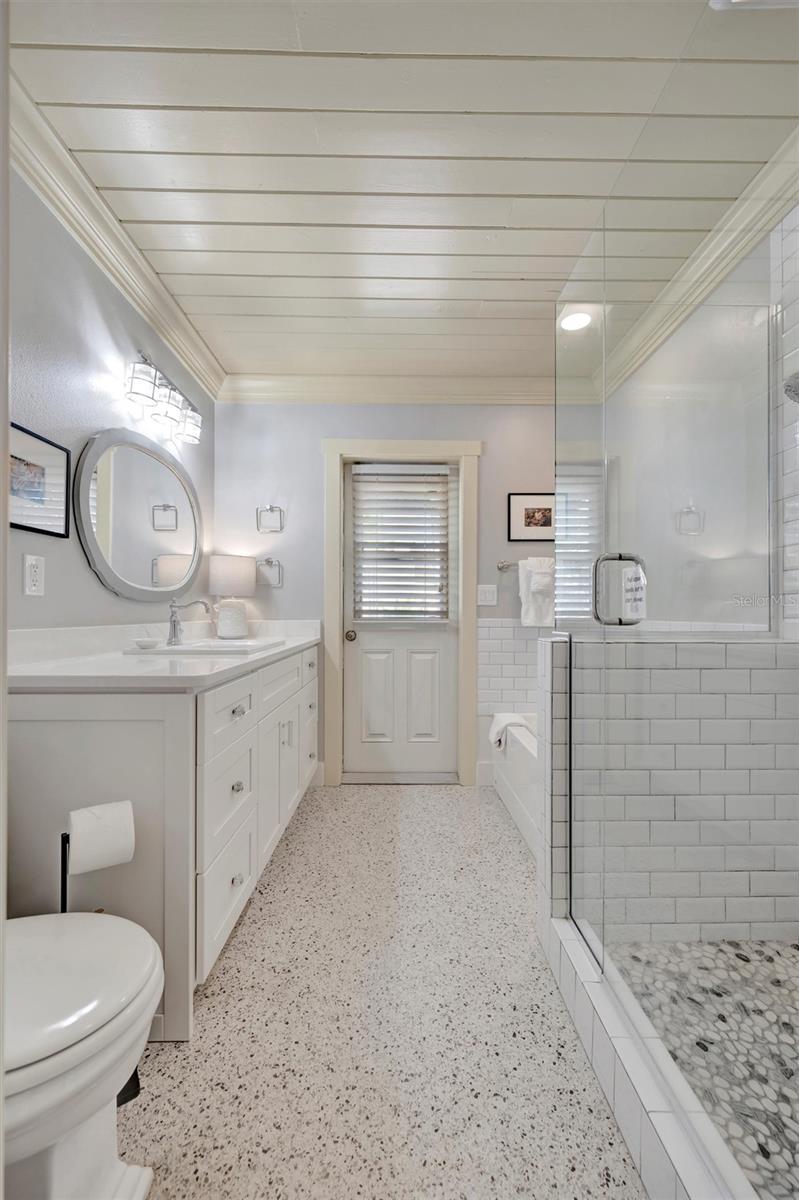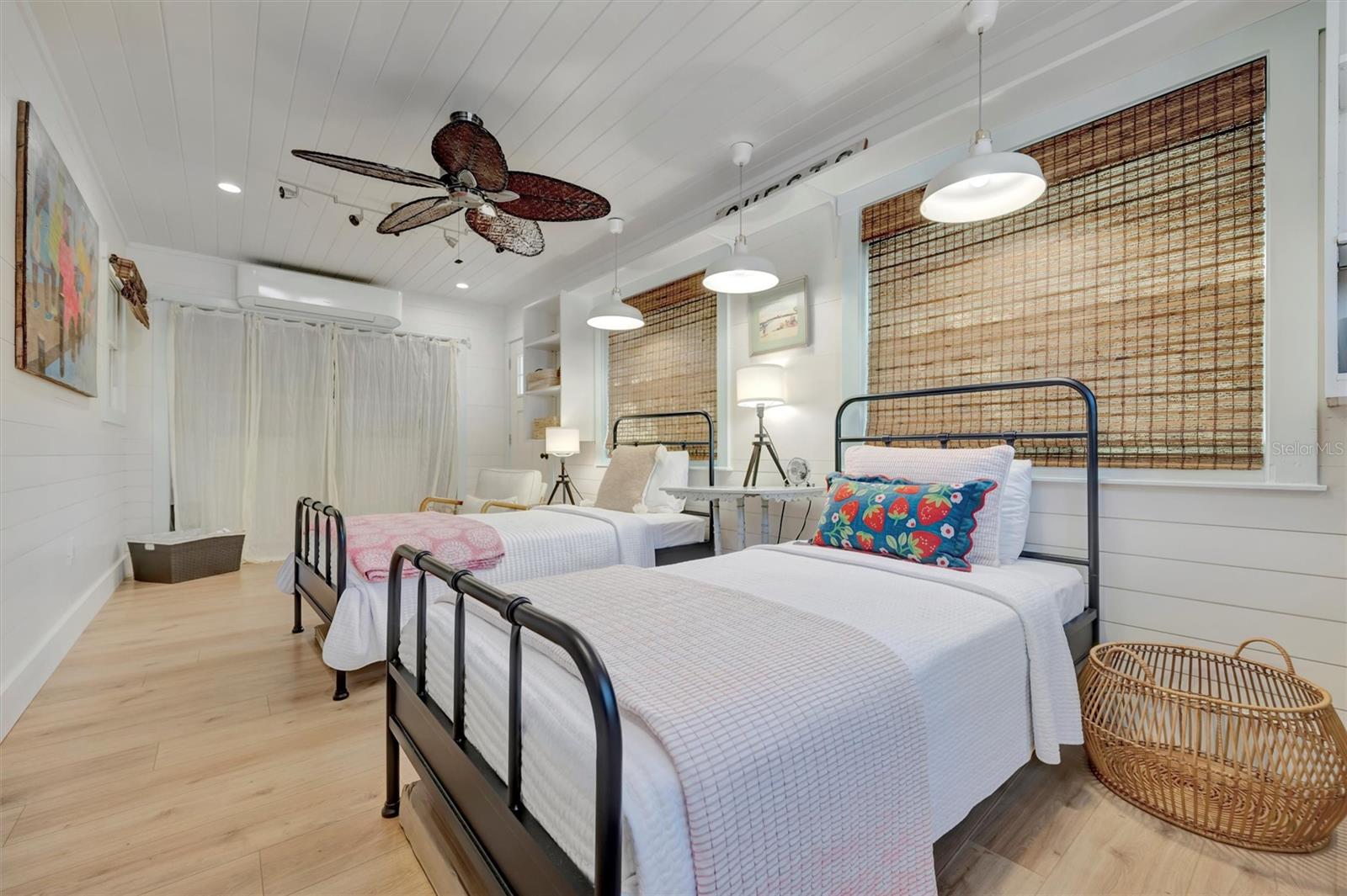 Welcome to Barefoot Gypsy -- a cozy Anna Maria Island cottage bursting with character and located directly across from Tampa Bay on the coveted north end of Anna Maria Island. Completely renovated after Hurricane Helene including NEW ROOF, NEW AC, all new cabinets, appliances, and furnishings, this charming coastal retreat combines timeless charm with modern upgrades. Updated with a professional re-design, the home features vaulted ceilings adorned with reclaimed wood planks from a historic Bean Point home. Gleaming original terrazzo floors flow throughout the cottage, adding authentic Florida charm. The kitchen is thoughtfully designed with quartz countertops, subway tile backsplash, custom built-ins, and brand-new stainless-steel appliances -- perfect for casual beachside entertaining. The home offers two queen-sized bedrooms...one with an en-suite bathroom, and a spacious hall bath complete with separate tub and shower. An additional third bedroom was added in 2017 and features two twin beds along with a full-size washer/dryer and closet area. With its eclectic, beachy flair, this turnkey-furnished home (with some exclusions) is currently part of a successful rental program. There's even room for a pool! Just bring your flip-flops and start living the island dream.