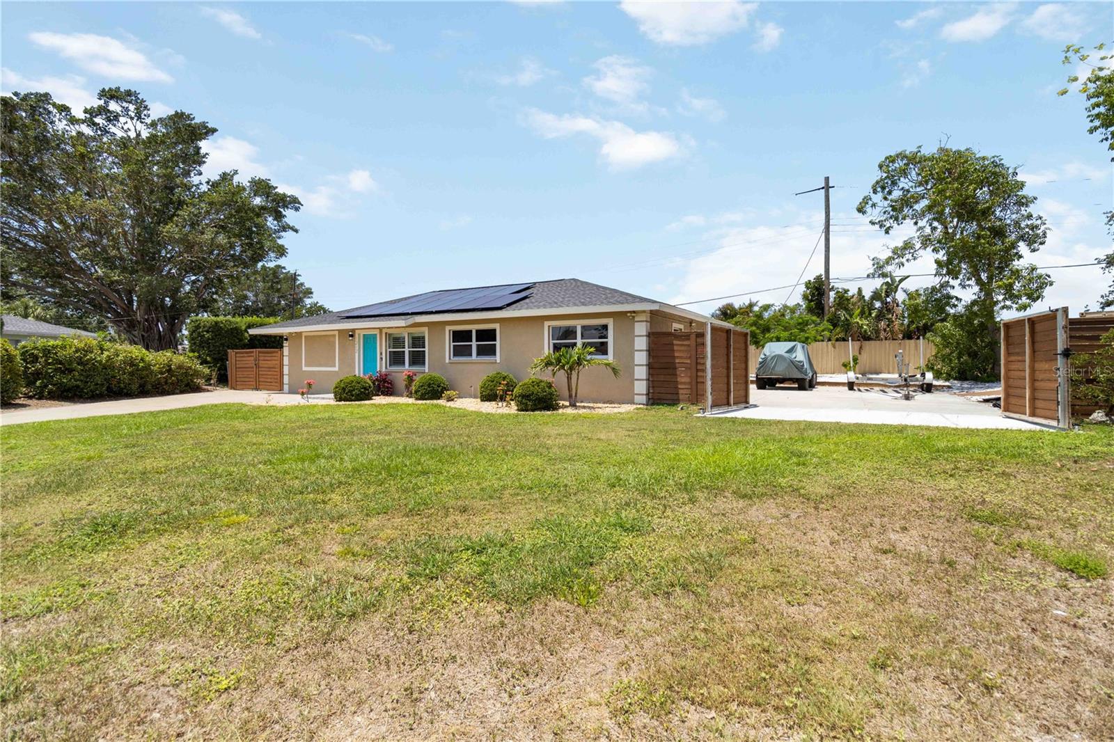 Welcome to your ideal home in the heart of Bradenton's Bayshore Gardens. This home was beautifully remodeled in 2023 and has 3-bedrooms, and 2-bathrooms. This residence blends modern style with everyday comfort. Step inside to a bright, open floor plan featuring fresh, contemporary finishes. The stunning kitchen, with its sleek updates, is perfect for preparing meals and gathering with loved ones. Take note of the induction cooktop and the Advantium 120 oven which has 4 cooking modes: speedcook, microwave, traditional oven, and warming oven.Outside, enjoy a lovely low-maintenance fenced backyard with large gates for easy boat or RV storage. The storage container offers extra space for storage or might be used as a workshop/hobby space. The covered patio is a wonderful space for entertaining in the spacious backyard or just to relax and read a book or listen to nature. Eco-friendly solar panels, a brand-new 2025 roof, and a 3-year-old HVAC system (with new ducts and insulation) ensure efficiency and peace of mind.Bayshore Gardens has NO HOA, but does have access to fantastic community amenities: a recreation center, playground, basketball court, boat ramp, marina, and pool - find more details here: https://www.bayshoregardens.org/ Just minutes from Bradenton's beaches, shopping, and dining.Schedule your showing today.