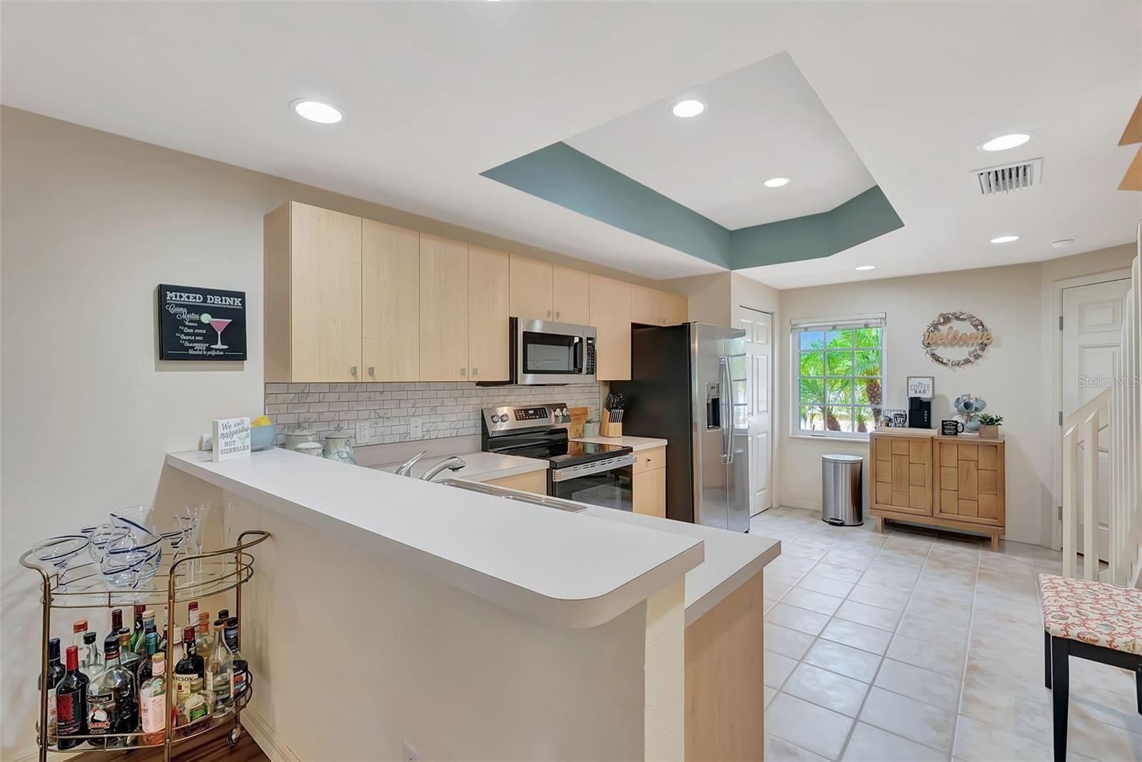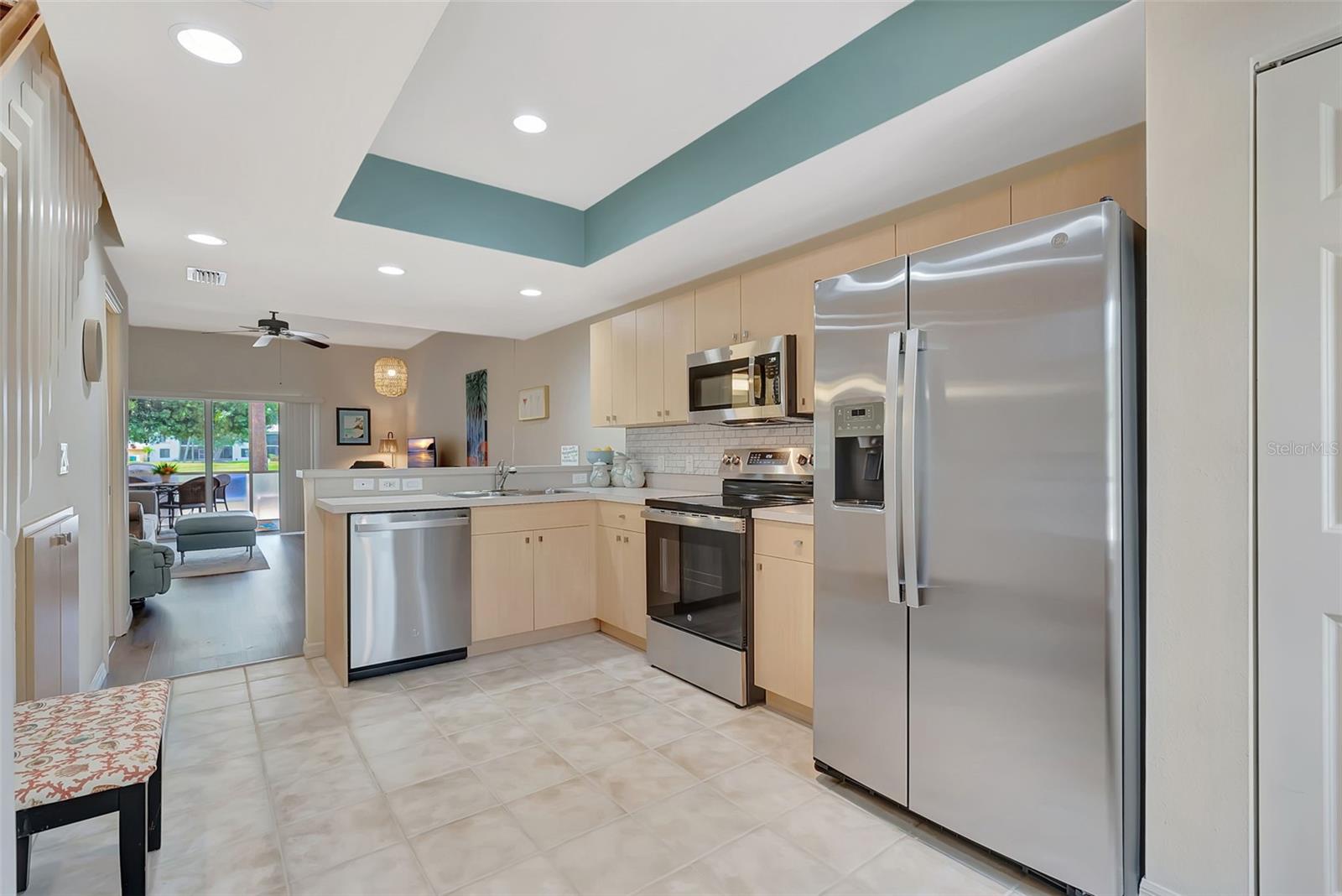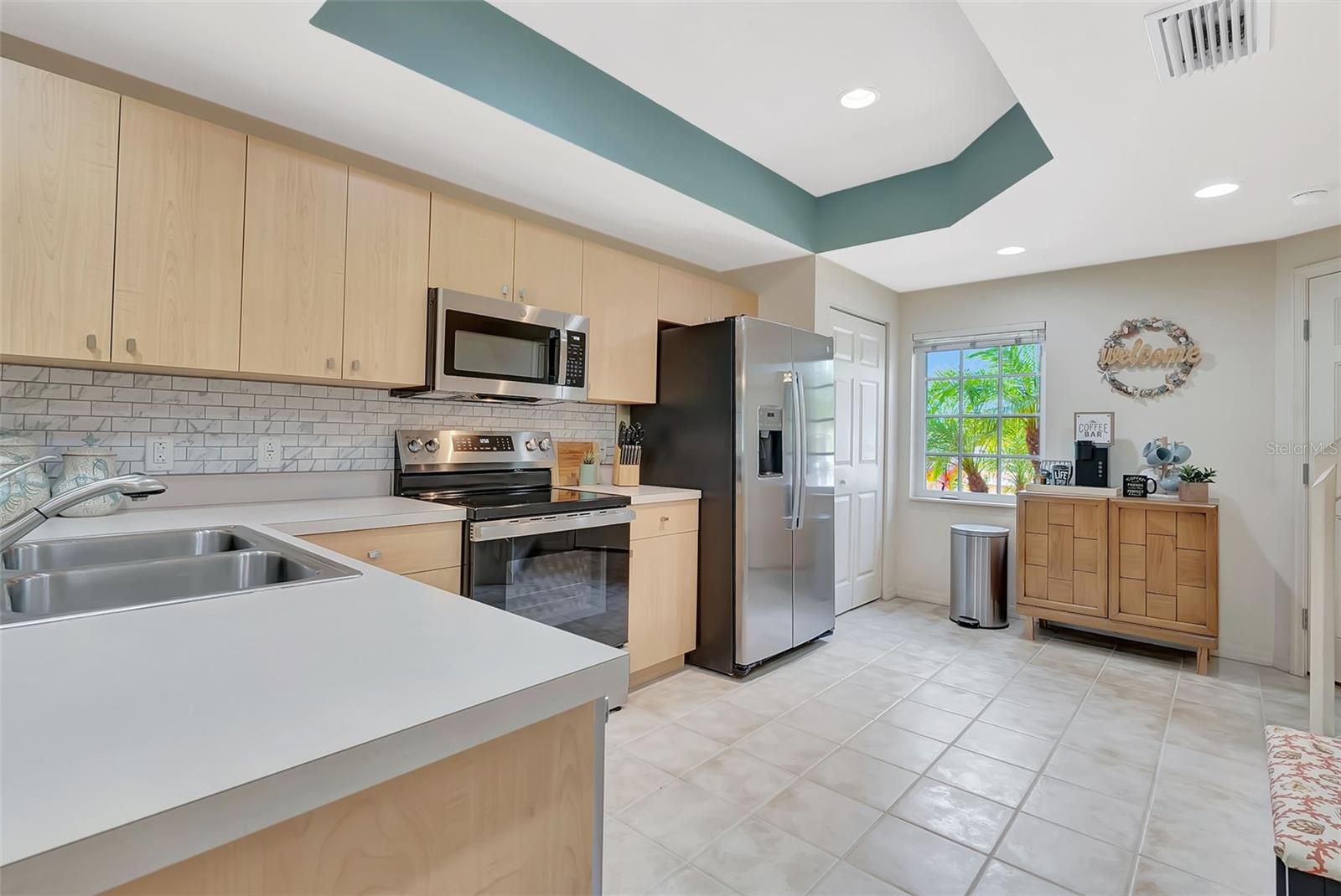 Welcome to your Florida escape in the heart of Deep Creek--a meticulously maintained 2-bedroom, 2.5-bath townhome that blends comfort, style, and an unbeatable view of the 13th hole of the Deep Creek Golf Course. Whether you're a golf lover, snowbird, or a first-time homebuyer, this two-story residence delivers both practical value and a peaceful retreat. Ideally located just steps from the community pool, this townhome showcases thoughtful upgrades for modern living. Enjoy a kitchen appointed with GE stainless steel, energy efficient appliances, a fresh, updated backsplash in soft, coastal-inspired hues, upgraded cabinet pulls offering a polished touch, generous countertop space for meal preparation, a closet pantry, and a breakfast bar that opens to the dining area--perfect for casual meals or entertaining. Stylish and durable vinyl plank flooring flows through the open-concept living and dining area, seamlessly connecting to a private screened lanai--perfect for sipping your morning coffee or unwinding in the evening, all while taking in peaceful fairway views and the gentle Florida breeze. A new cabinet vanity elevates the downstairs half bath, while under-stair storage offers a clever space-saving solution. An abundance of natural light flows through the spacious primary suite on the second level. Sliding glass doors open to a private balcony with golf course views. With dual closets and an en-suite bath showcasing a walk-in shower, the primary suite offers both comfort and functionality. The guest bedroom features a wall closet and private access to the second full bath through a pocket door, which includes a tub/shower combination and a single vanity. The laundry closet is thoughtfully positioned in the hallway for easy access. Situated outside of a flood zone, this townhome also features impact-resistant windows and sliding glass doors for added peace of mind. Enjoy low-maintenance living and one of the lowest HOA fees in the deed-restricted Deep Creek community. It is just under nine miles away from Fishermen's Village, and the historic downtown Punta Gorda district. Enjoy year-round access to boating, fishing, and world-class golf. Gulf Coast beaches await you less than an hour from your doorstep. Located minutes from dining, shopping, parks, and Spring Training facilities--living here places the best of Southwest Florida's lifestyle right at your doorstep. Air travel is both convenient and flexible with Punta Gorda (PGD), Sarasota (SRQ), and Fort Myers (RSW) airports located nearby. Step into your dream Florida lifestyle now! Ask about the beautifully curated furnishings--they are up for negotiation!
