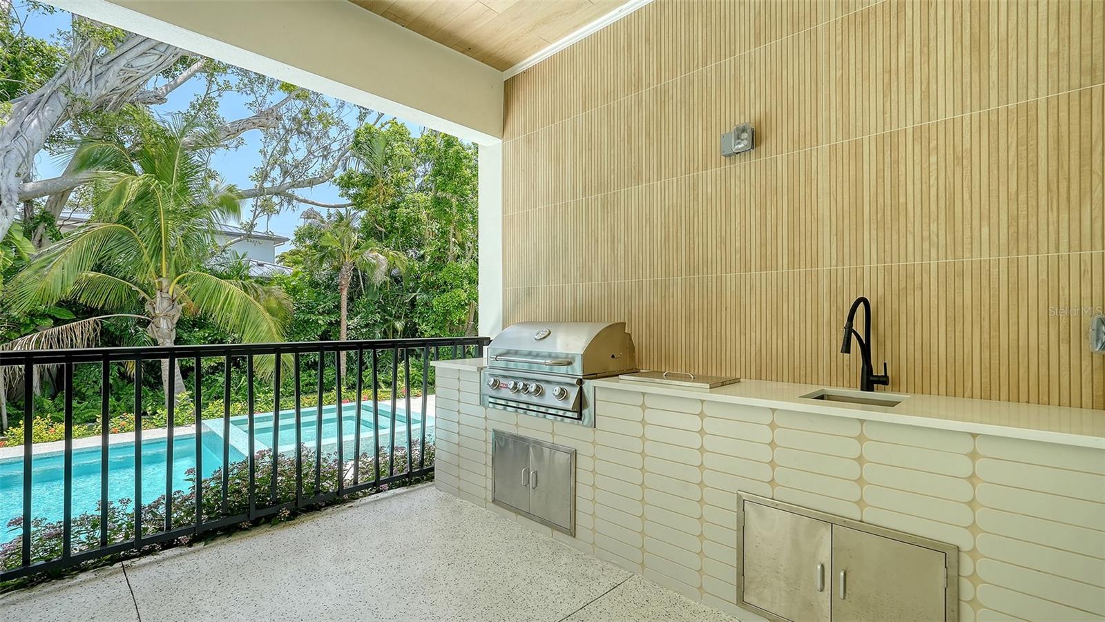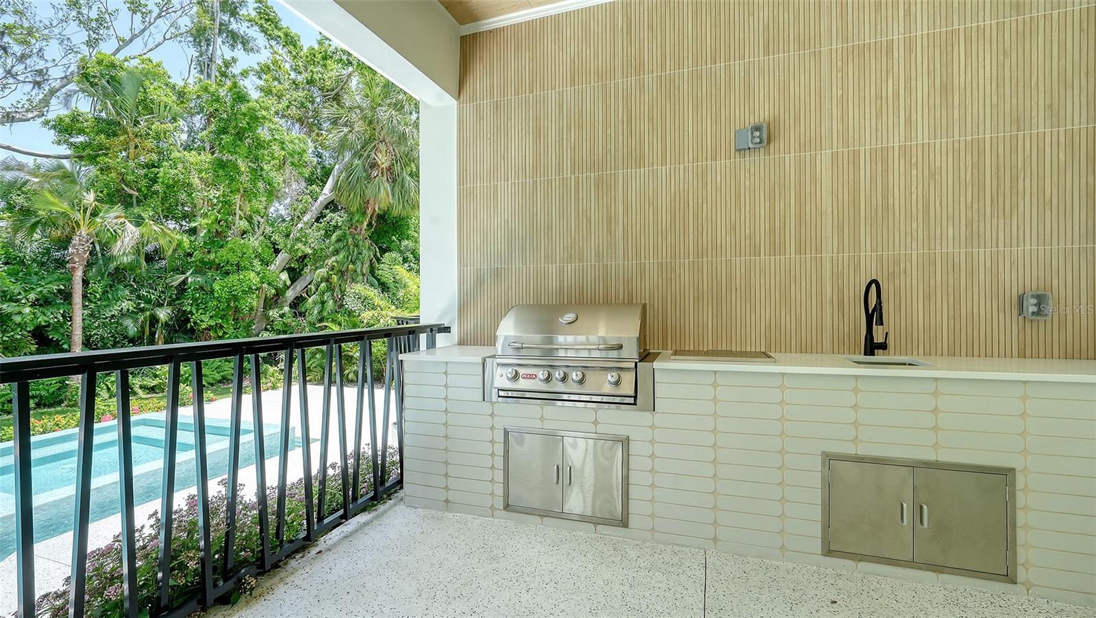 Exterior: Balcony, French Doors, Lighting, Outdoor Grill, Outdoor Kitchen, Private Mailbox, Sliding Doors