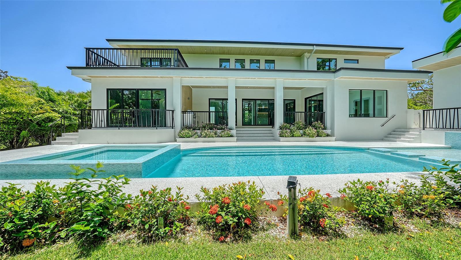 One or more photo(s) has been virtually staged. LOWEST PRICED NEW CONSTRUCTION WEST OF TRAIL HOSPITAL/SOUTHSIDE VILLAGE AREA! Truly a Coastal Classic Modern Masterpiece Located in One of the MOST Sought After Neighborhoods West of the Trail in Sarasota! This Gorgeous HARBOR ACRES Home is NOT your Typical Very Traditional Boring Florida Home! This Home was Built for the Discerning Buyer who Appreciates Modern Art and Design! Every Room is Unique and Designed with Attention to Detail and Gracefully Incorporates the Outside Indoors via Walls with Large Picture Windows. This Amazing Property Features: A MAIN HOUSE w/5 Bedrooms, 5.5 Baths, 2 Master Suites (Up & Down) both w/Zen-like 5-Piece Master Baths w/Whirlpool Soaking Tubs and Separate Showers; Fabulous Great Room w/Soaring Ceilings, Wall Fireplace and Sliders Looking Out to the Aqua Pool and Spa and Tropical Landscape; Extra Flex Room off Kitchen w/Built in Art Niche makes a Perfect Dining Room, Den/Office w/Built-ins, Fabulous Kitchen w/Separate Refrigerator, Freezer & Wine Refrigerator, Luxury Dacor Appliances, Quartz Counters, Designer Kitchen Cabinetry, Pantry, Eating Bar; Media Bonus Room w/Balcony, Laundry Room w/Storage, Open Glass Staircase to Upstairs, Elevator Shaft to All Floors, Porcelain Tile and Elegant Lighting Fixtures throughout, Bosch AC Units, 2 Balconies Upstairs, En-Suite Bedrooms, Powder Room w/Glass Art Sink, Impact Windows and Sliders w/Low E Glass, Oversized 2 Car Garage and an Oversized 1 Car Garage w/Electric Charging Stations, Smart Home w/Fully Integrated Wifi System, Covered Lanai w/Fully Equipped Out Door Kitchen and Fire Pit. A Detached CASITA GUEST HOUSE w/Separate Entrance, Full Bath, Kitchenette and One Bedroom overlooking the Pool Court Yard, Perfect for a Nanny, House Keeper, Teen, MIL or Pool Party Room. The Outdoor Features: Gorgeous 35 Foot Saltwater Pool w/Waterfall, Huge Sun Shelf and Hot Tub Spa; Lush Tropical Landscaping, Tiered Flower Planters, Low Maintenance Yard, Irrigation, Circular Driveway and Privacy Wall. Home was Built nearly 2 FT above the Flood Zone and does NOT Require Flood Insurance. This Never Before Been Lived in Home is Ready and Waiting for It's New Owner! Located just Minutes to Sarasota Memorial Hospital and Medical Center, Morton's Market, Downtown Sarasota, Shopping, Dining, St Armand's and the Best Beaches!