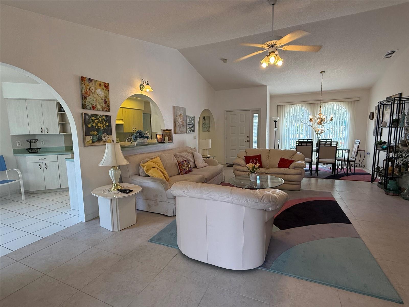 Pool home waiting for you! Featuring a tall central ceiling. Beautiful living room view overlooking pool/Lanai. Split bedroom floorplan with both bedrooms having their own bathroom. Two walk in closets in master with separate tub and shower. Breakfast nook in Kitchen and nice view of living room. Tile throughout whole house. Inside Laundry room with washer and dryer and pantry right beside the kitchen. Stainless steel appliances ! Great open floor plan you will appreciate. Spacious Lanai with enclosed screens. Two car garage with door entry into laundry room/ kitchen area. This is a well put together house . Newer roof. Sprinkler system . Great pool ! Come see it today and make it your Florida paradise !