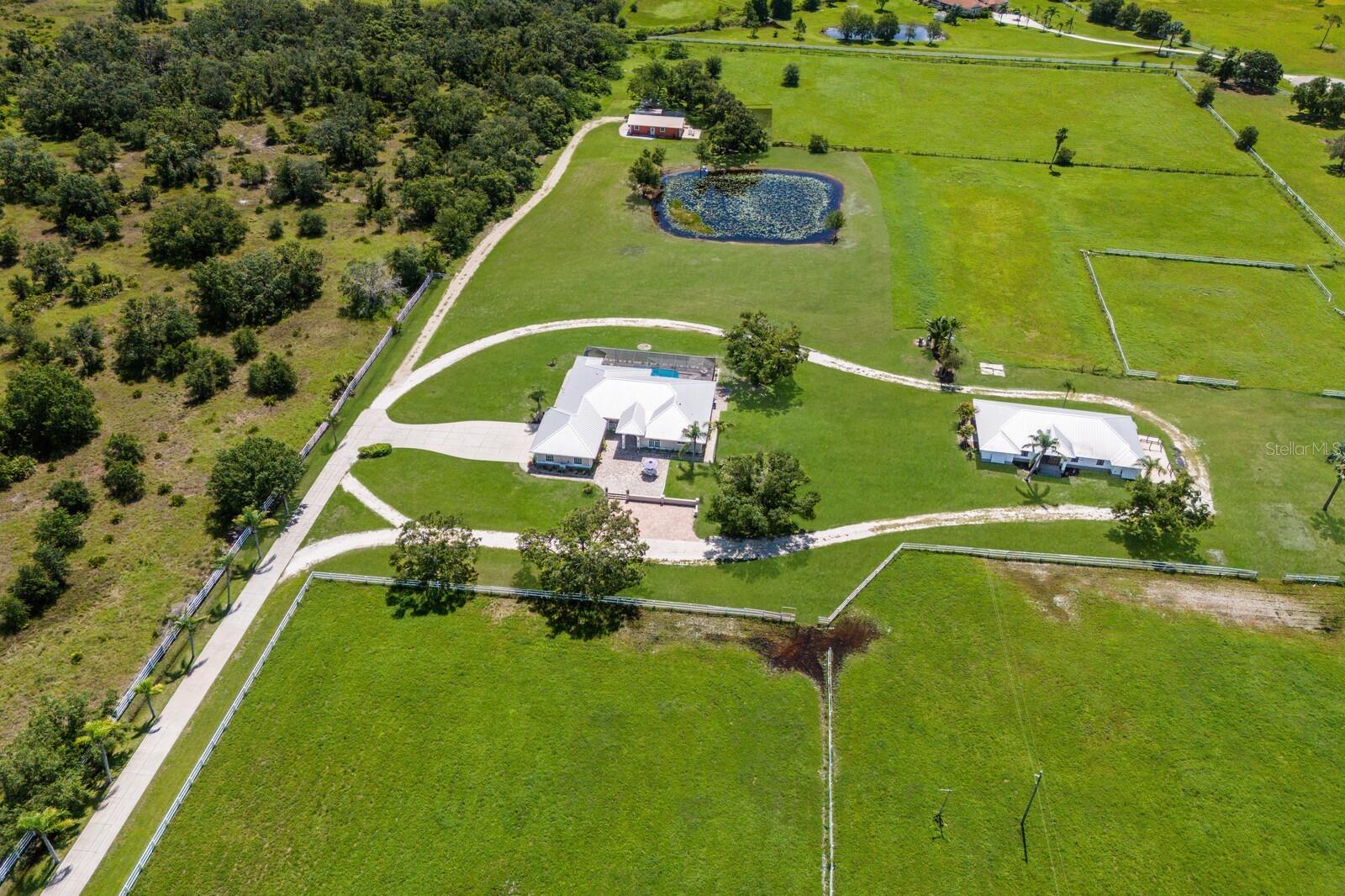 One or more photo(s) has been virtually staged. ALMOST 26 ACRES with NO RESTRICTIONS, NO HOA and NO CDD's in Sarasota County at an unheard of PRICE. This Luxury estate is truly the OPPORTUNITY OF A LIFETIME ~ unmatched land, location and lifestyle at an extraordinary value. LUXURY HOME + GUEST HOUSE + BARN. Bring your Motor Homes, Boats, Car Collections and Pets! There's plenty of room for all your toys here! Whether you're a seasoned horse enthusiast, love to host guests or find yourself longing for elegant country living, this extraordinary property is the ultimate blend of luxury, lifestyle and land in a setting that's simply magical! Imagine owning this property with a myriad of options for development/business, this ultimate equestrian estate is offered at a price that absolutely defies market expectations! Almost one million dollars has been poured into top-tier improvements, custom finishes, elevated design and maintenance for this property. Convenient to Wellington, Terra Nova, Fox Lea and Ocala, this modern, sprawling ranch offers an exceptional lifestyle for horse enthusiasts and those seeking space, privacy and relaxed living in one breathtaking package. Zoned agricultural, this property is a rare blend of elegance and enterprise. Perhaps you might consider a business opportunity to host wedding venues or other social events. Your custom 4000SF home harmoniously blends modern, upscale finishes and everyday livability with a curated blend of modern architecture. The home boasts four spacious bedrooms, three full baths, soaring ceilings and expansive glass that fill the home with natural light and sweeping views. The luxury living spaces include a standout gourmet kitchen that truly delivers for culinary enthusiasts, anchored by an oversized quartz island, custom-wood cabinetry, dual cooktops/wall ovens, and Sub-Zero refrigeration-ideal for elaborate entertaining. Your spa-inspired primary suite invites relaxation with a soaker tub, walk-in shower, split vanities with quartz counters and dual walk-in closets. The heart of the home opens seamlessly to an outdoor oasis featuring a show-stopping heated pool complete with a Bayu Swim Spa. The expansive lanai is framed by a panoramic clear-view screen where you can enjoy uninterrupted vistas of rolling acreage. Additional spaces include a large living/office area and a versatile library/game room opening to the lanai, providing added entertainment options for work or entertainment. Equestrians will be in awe of the eight-stall custom barn, designed with wide aisles, wash racks, tack room, and easy access to riding pastures make this a horse lover's paradise. Prior owners used this property for dressage training. The charming two-bedroom, one-bath Guest House offers a private retreat, ideal for multigenerational living or income-producing potential. The home includes a spacious, updated kitchen, private patio, laundry room and double carports. Enjoy peace of mind with these additional upgrades, such as metal roofs on the main home, barn and guest house. Outside of a flood zone and unaffected by recent storms, this private estate offers broad residential and possible commercial flexibility, all within minutes of Lakewood Ranch/Sarasota amenities. We challenge you to find a home ANYWHERE in Sarasota or Manatee county that even comes close to the privacy and value this home offers! Downtown Sarasota Arts & Cultural Attractions and Gulf Coast Beaches are just minutes away! Tour it, love it, own it today!