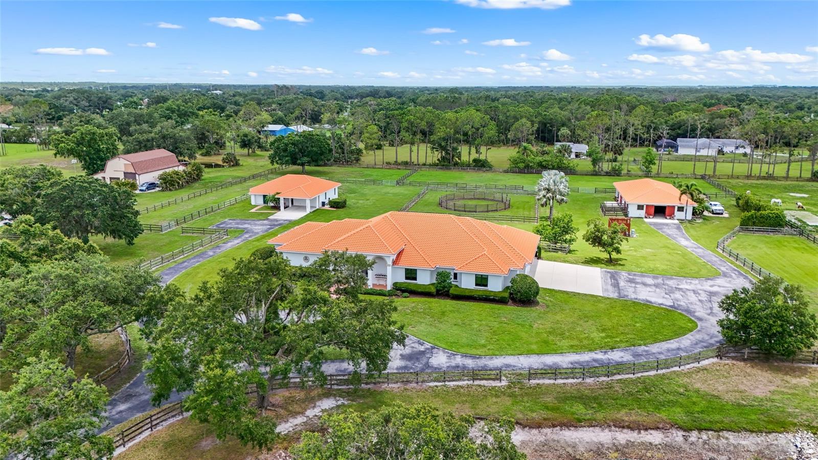Welcome to this exceptional equestrian gem meant for multigenerational living with 2 homes, a horse stable with 6 stalls, 5 fully fenced pastures, an air-conditioned tack room, and a custom round pen for training that equestrians will be thrilled with! This amazing estate is located in the gated Saddle Creek community, where equestrian living meets refined comfort. The main house includes 3-bedrooms and 2.5-bathrooms. This ranch style pool home offers over-the-top charm and functionality, with a pond on property, a private gate at the entrance, and 26 miles of community riding trails. The fully furnished guest house includes 3 bedrooms, a full kitchen, laundry room, and its own carport.The main home features tile flooring throughout the common areas and a spacious primary suite with a walk-in closet and private fenced-in courtyard. The primary bathroom is elegantly appointed with double vanities, stone countertops, soft-close cabinetry, and a stunning wraparound dual-entry shower. The great room and kitchen share an open layout beneath soaring 15-foot cathedral ceilings with rustic wood beams, creating an airy and inviting space.The gourmet kitchen boasts granite countertops, soft-close drawers and cabinets, a large prep island, and newer stainless steel KitchenAid appliances. The two additional bedrooms share a full bath, and the 4-car garage includes an EV charger. Additional upgrades include a new HVAC system and reverse osmosis water system. Step outside to your saltwater, heated pool with a covered, fenced-in lounging area--perfect for entertaining.This rare Saddle Creek gem offers the perfect blend of luxury, privacy, and equestrian lifestyle--all just minutes from town.