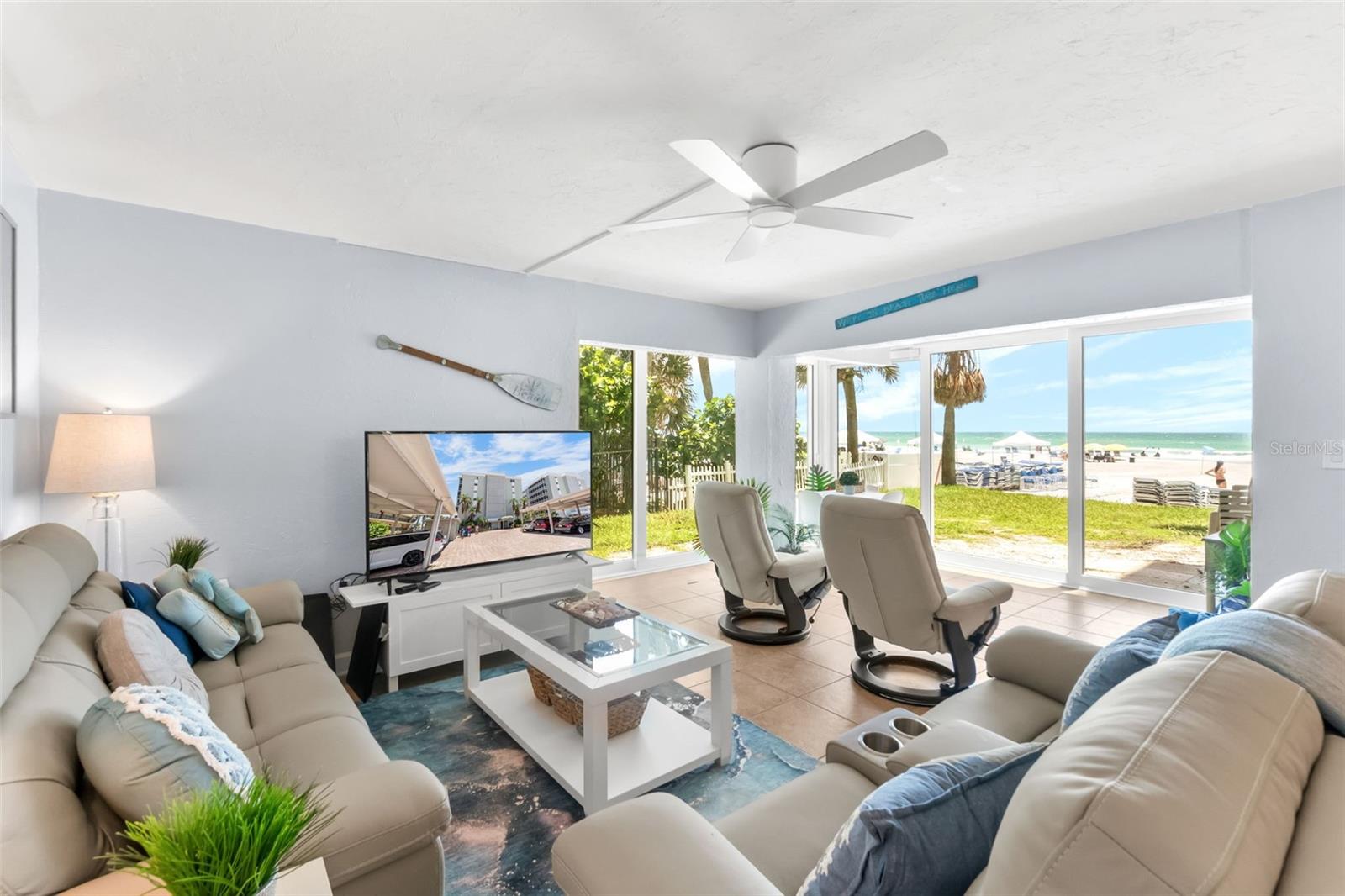Siesta Key Beachfront Gem - Just Like New! Welcome to your slice of paradise on world-famous Siesta Key Beach! This stunning 2 bedroom, 2 bath elevated first floor end unit offers the ultimate in coastal living with direct beach access and breathtaking Gulf views. Step into a fully remodeled interior, professionally remediated and redesigned from top to bottom--including stylish furnishings--so you can move right in or start renting immediately. Rentals in place for 2025 & 2026. Featuring impact rated windows and doors, this condo offers peace of mind and modern efficiency. The private lawn area leading straight to the sand is a rare and highly desirable feature--perfect for families, seniors, or anyone who loves easy access to the beach. Additional highlights include: 1 car covered parking, Short-term rentals allowed with excellent income history, even with personal owner usage. Rental bookings already secured through the end of 2025. Don't miss this rare opportunity to own a turn-key beachfront condo on Siesta Key with both strong investment potential and unbeatable lifestyle appeal. Paradise is calling--schedule your private showing today!